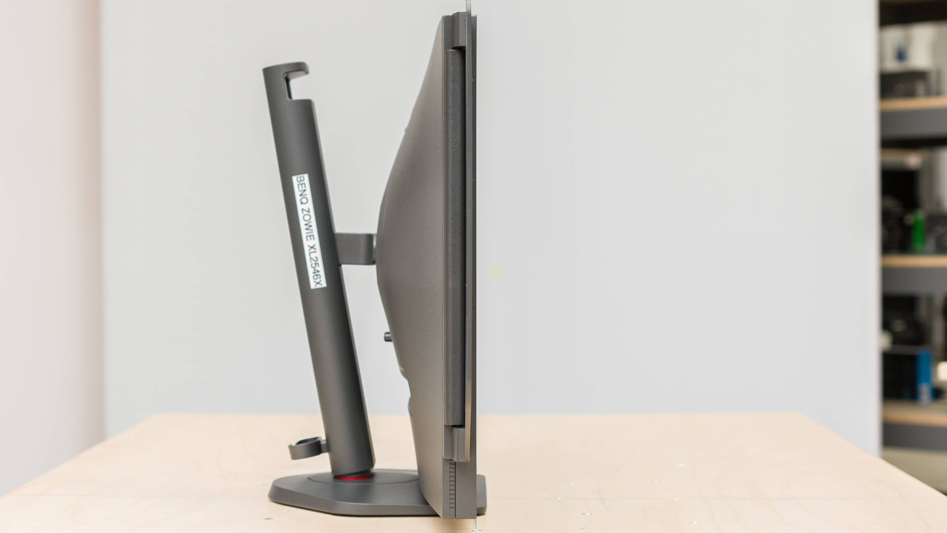 The BenQ ZOWIE XL2546X has impressive ergonomics, so you can easily adjust it to an ideal viewing position. The height adjustment even has a ruler, so you can quickly adjust it to the perfect height depending on your needs. Next to the ruler there's a loop for cable management.