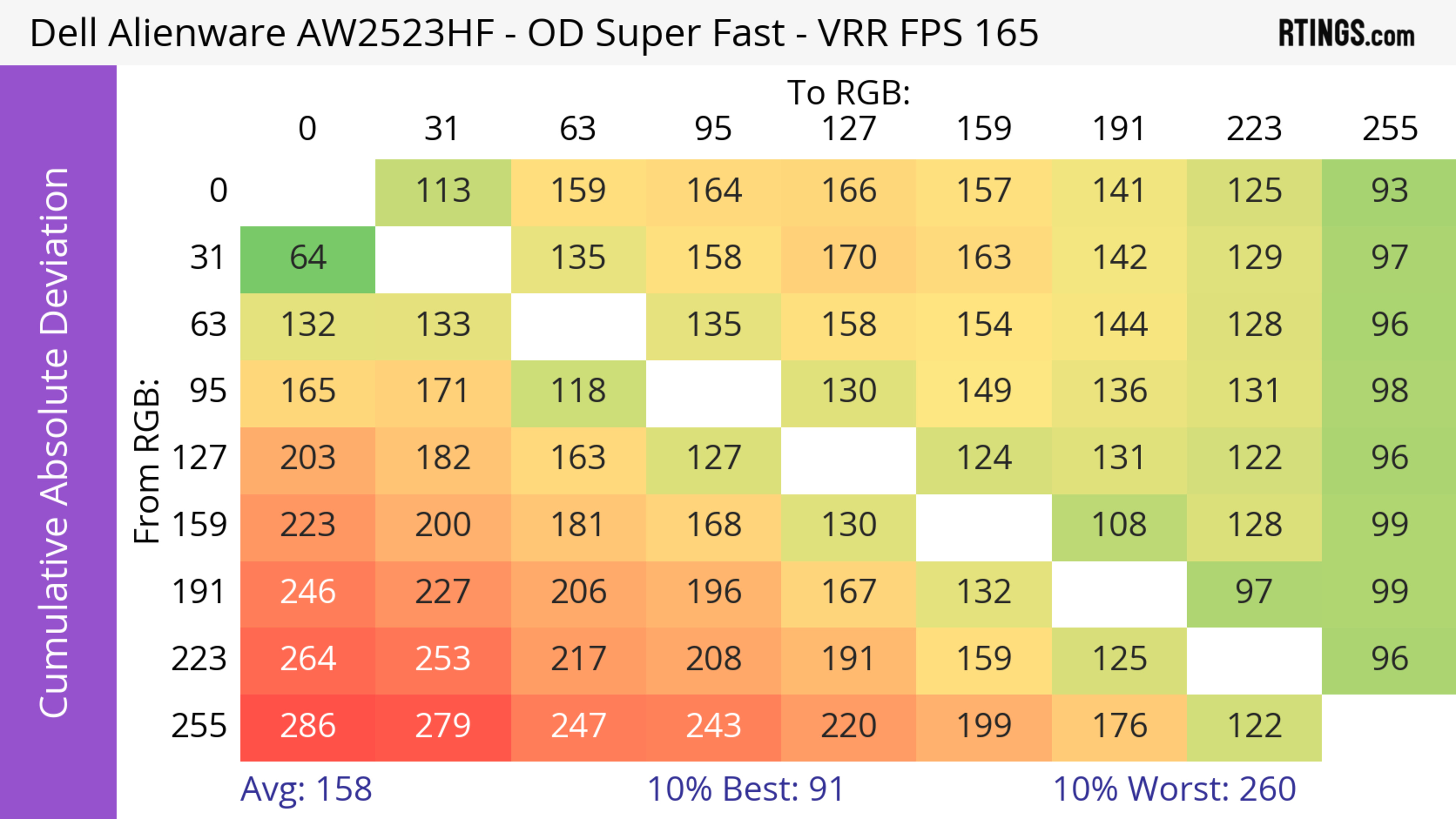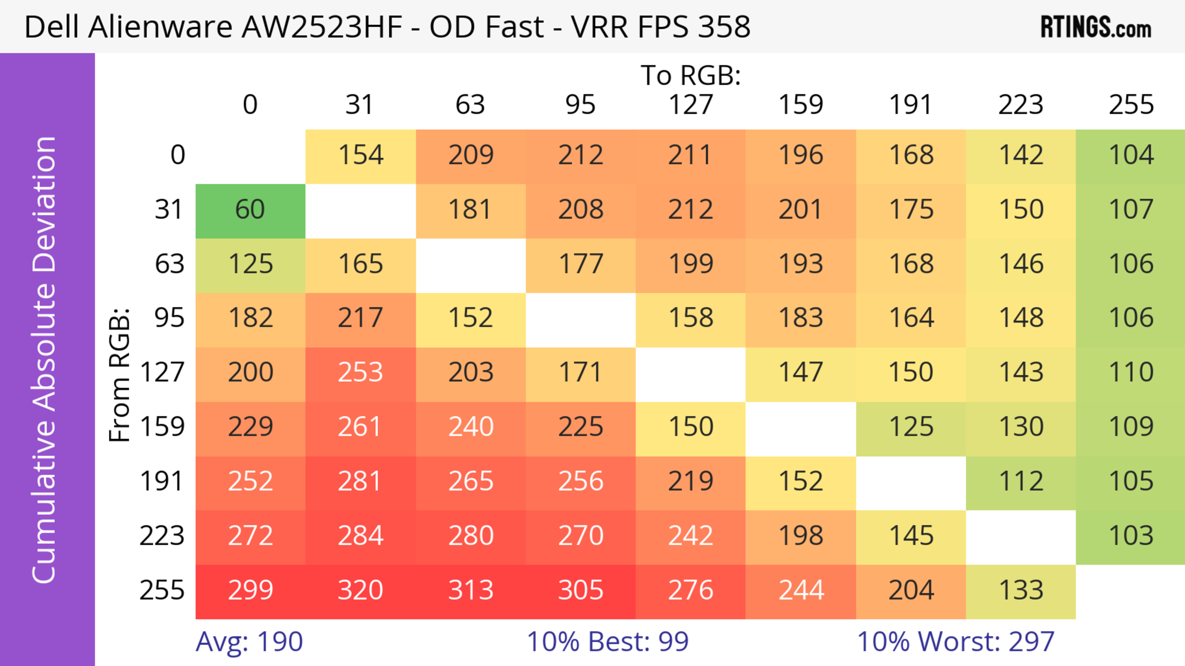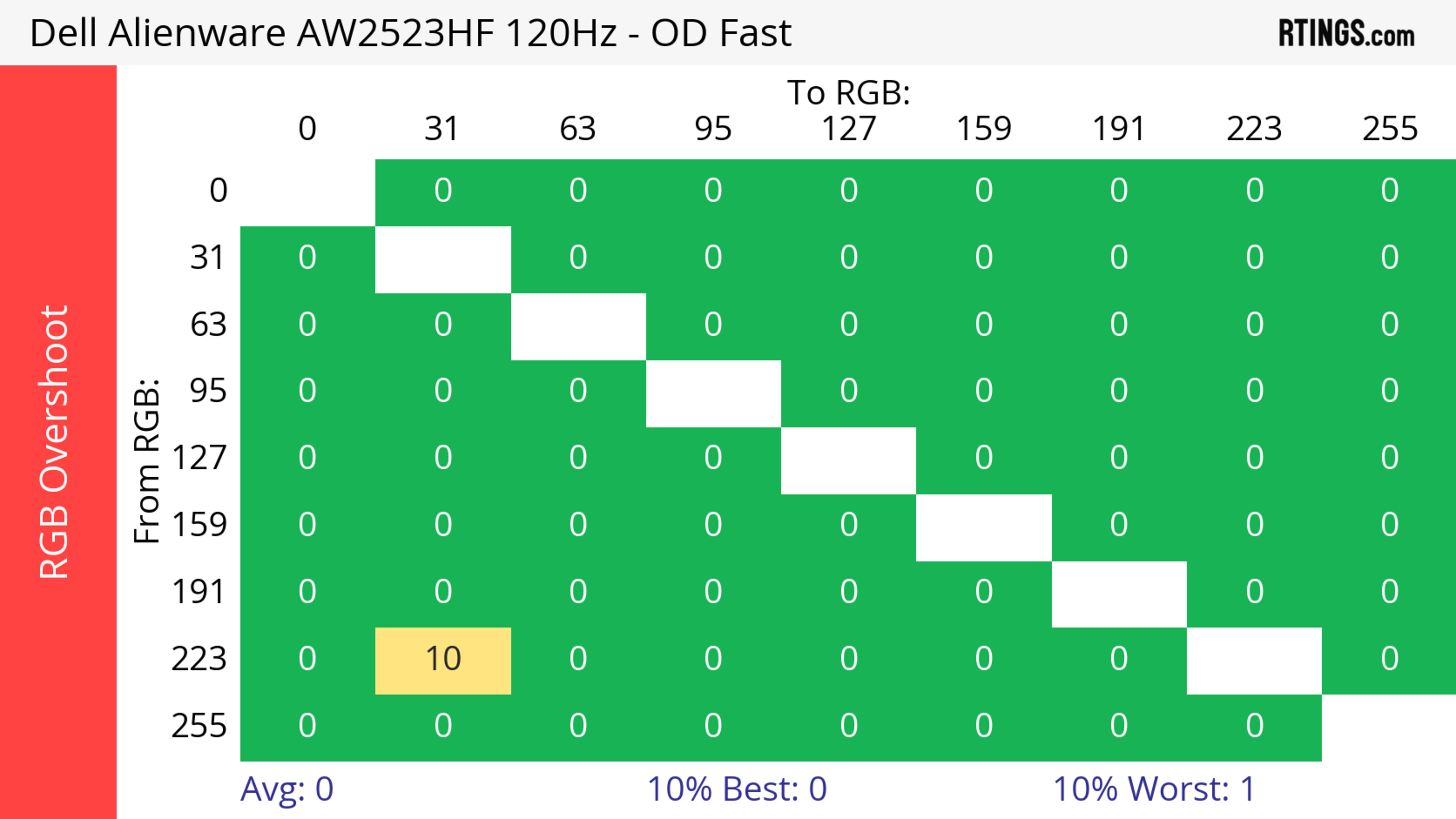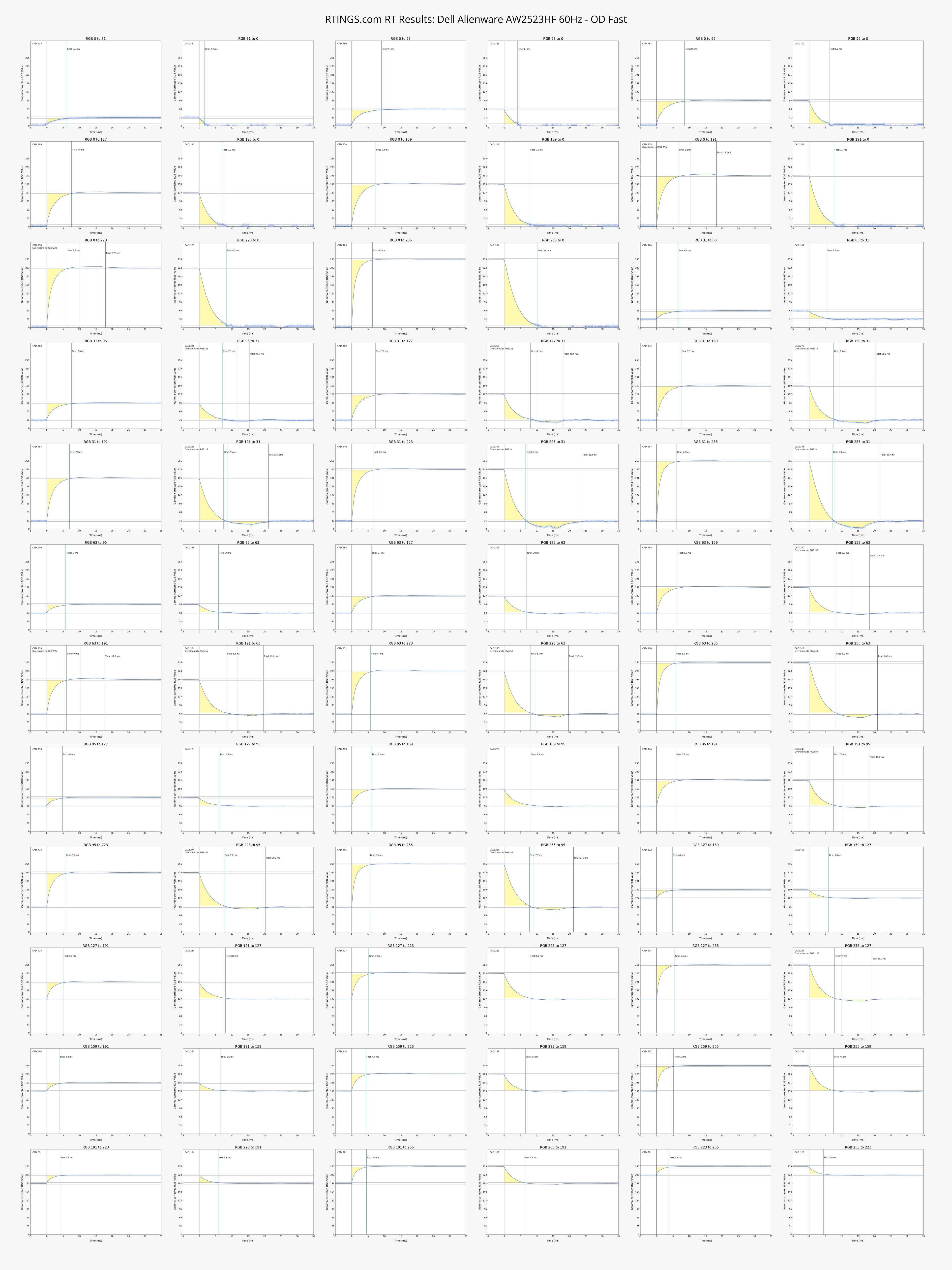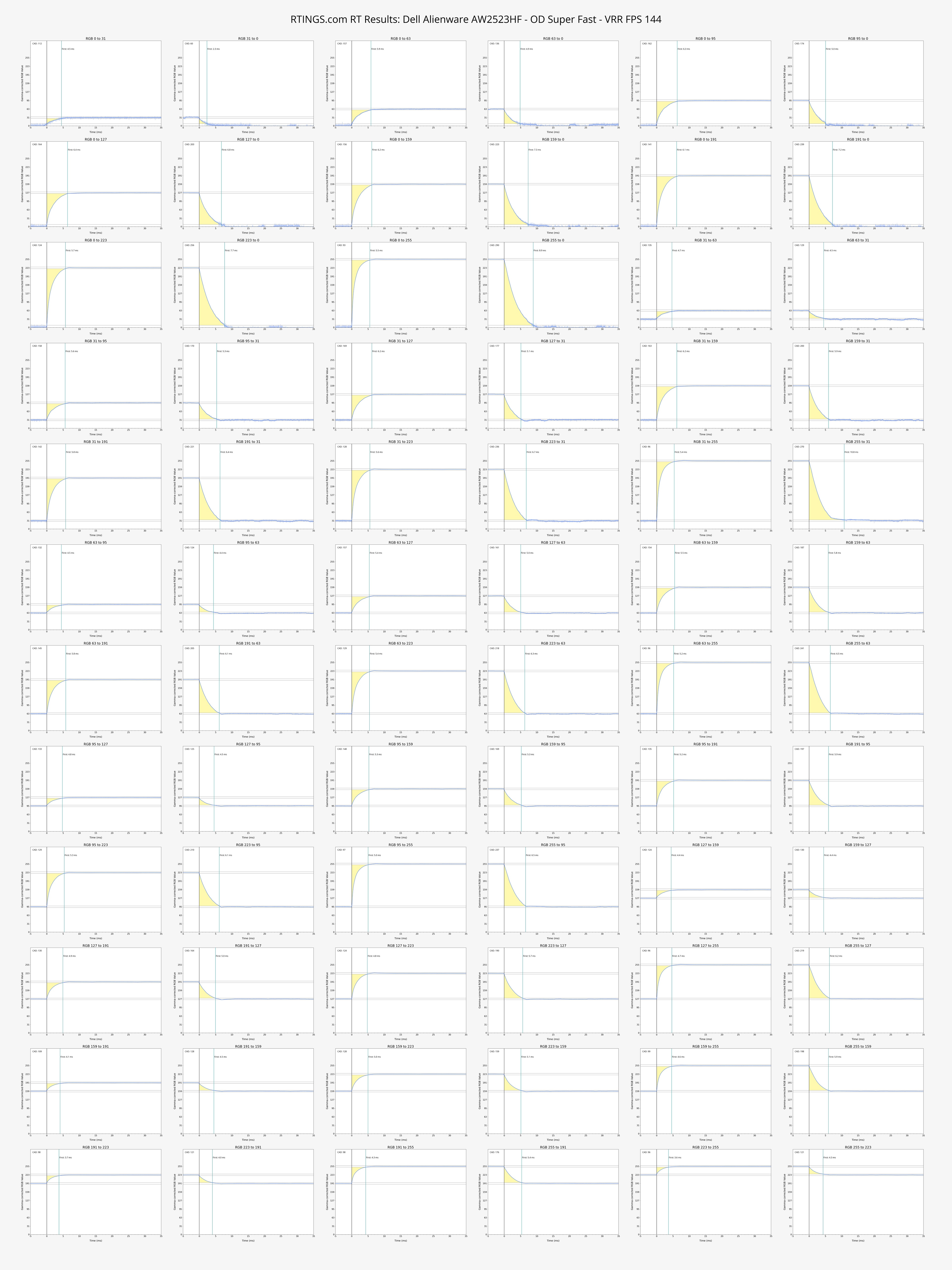 The Dell AW2523HF has good response time. Its response time is consistently fast across its entire refresh rate range, but it still has some blur with fast-moving objects.