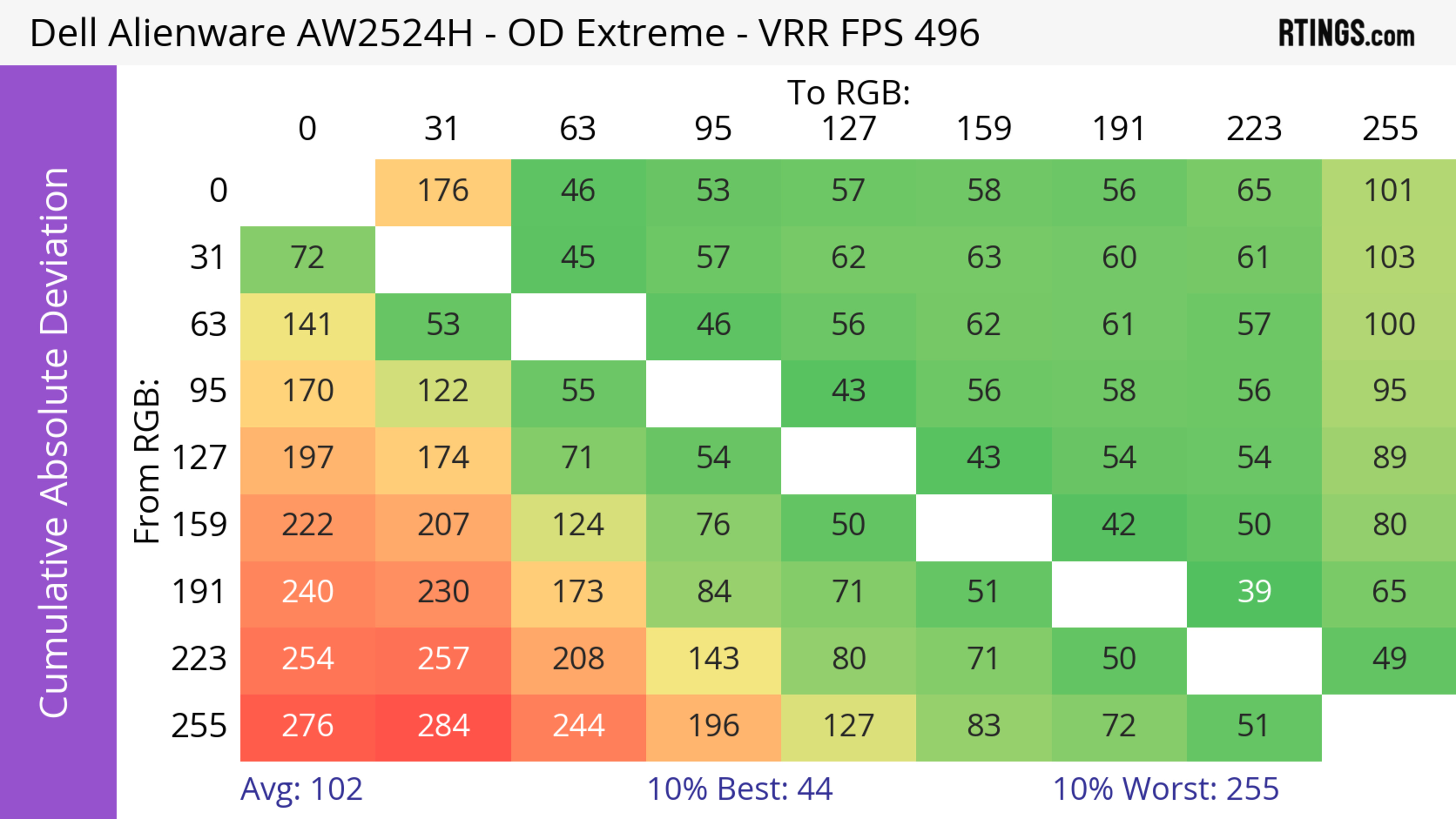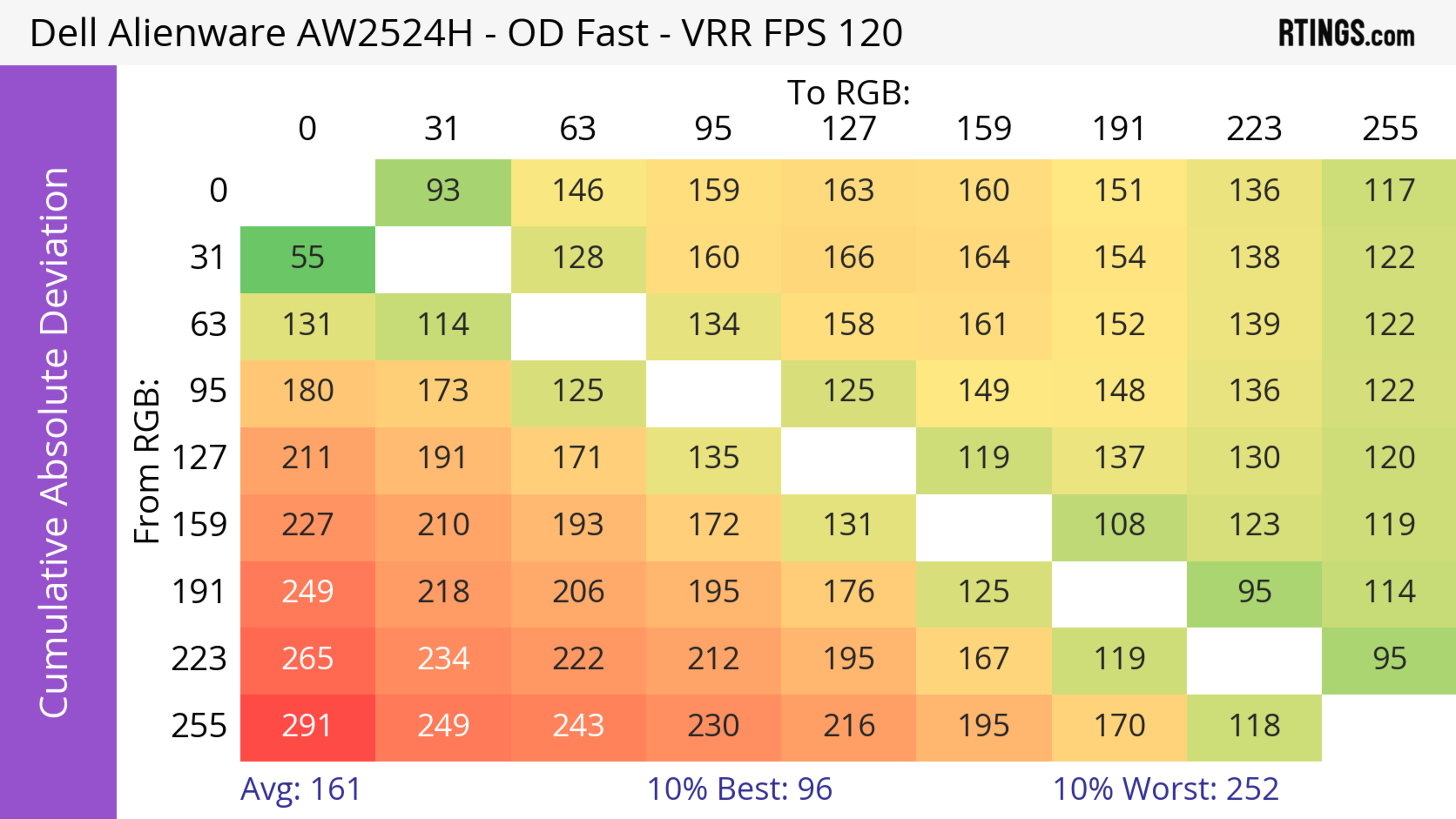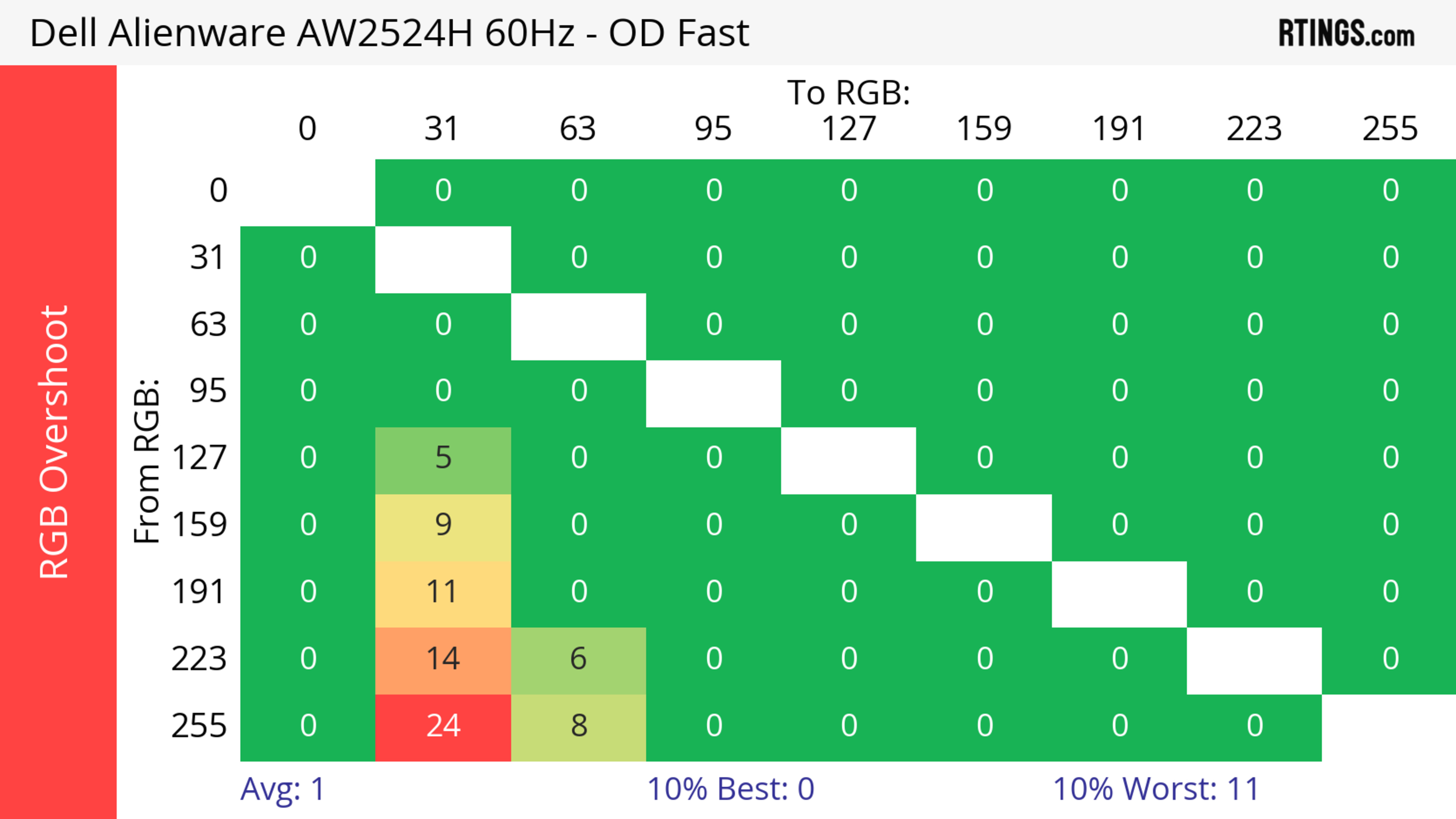 The refresh rate compliance is good. Although its response time isn't fast enough to make full color transitions before the monitor draws the next frame at the max refresh rate, it's much better at lower refresh rates.