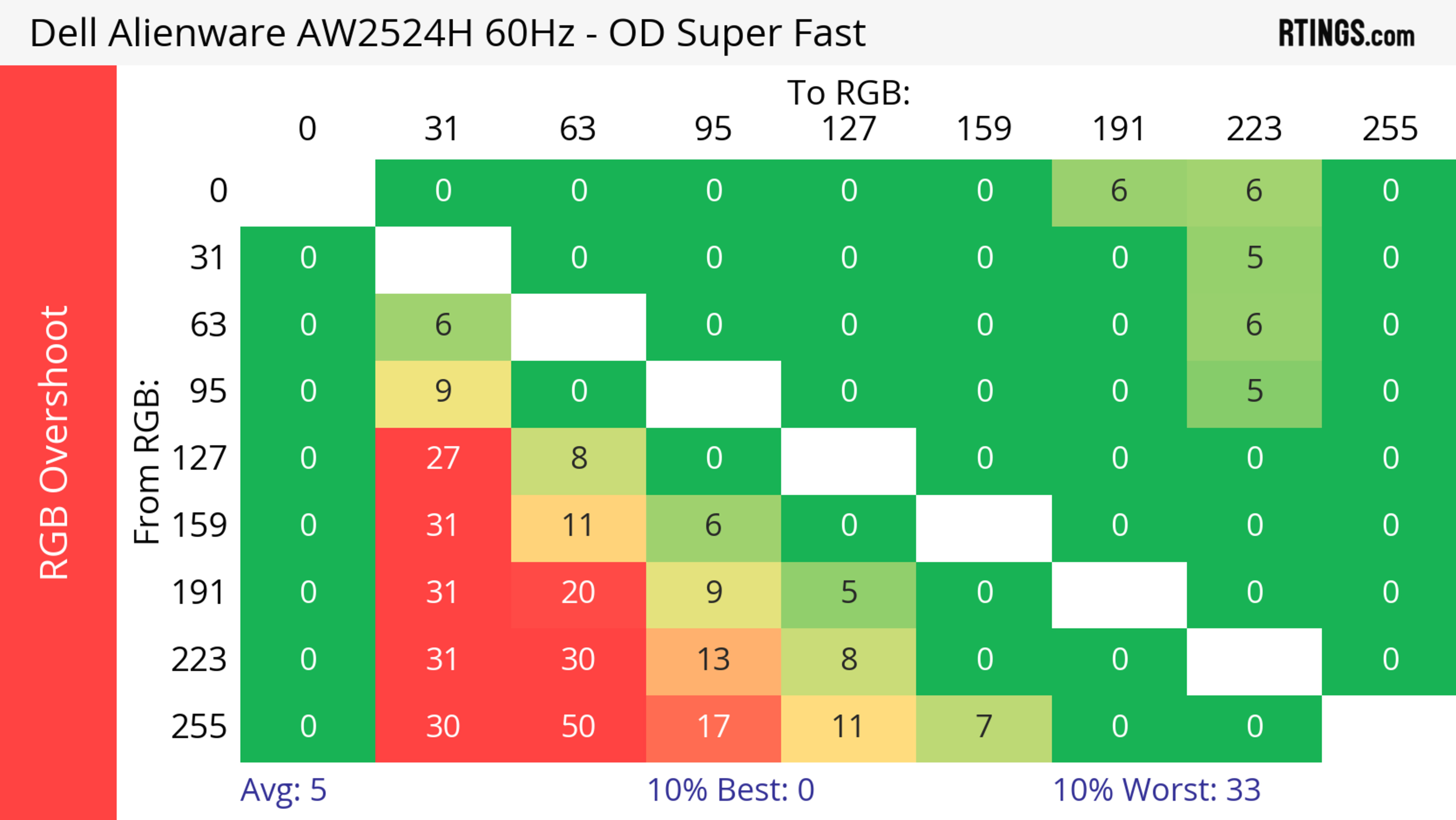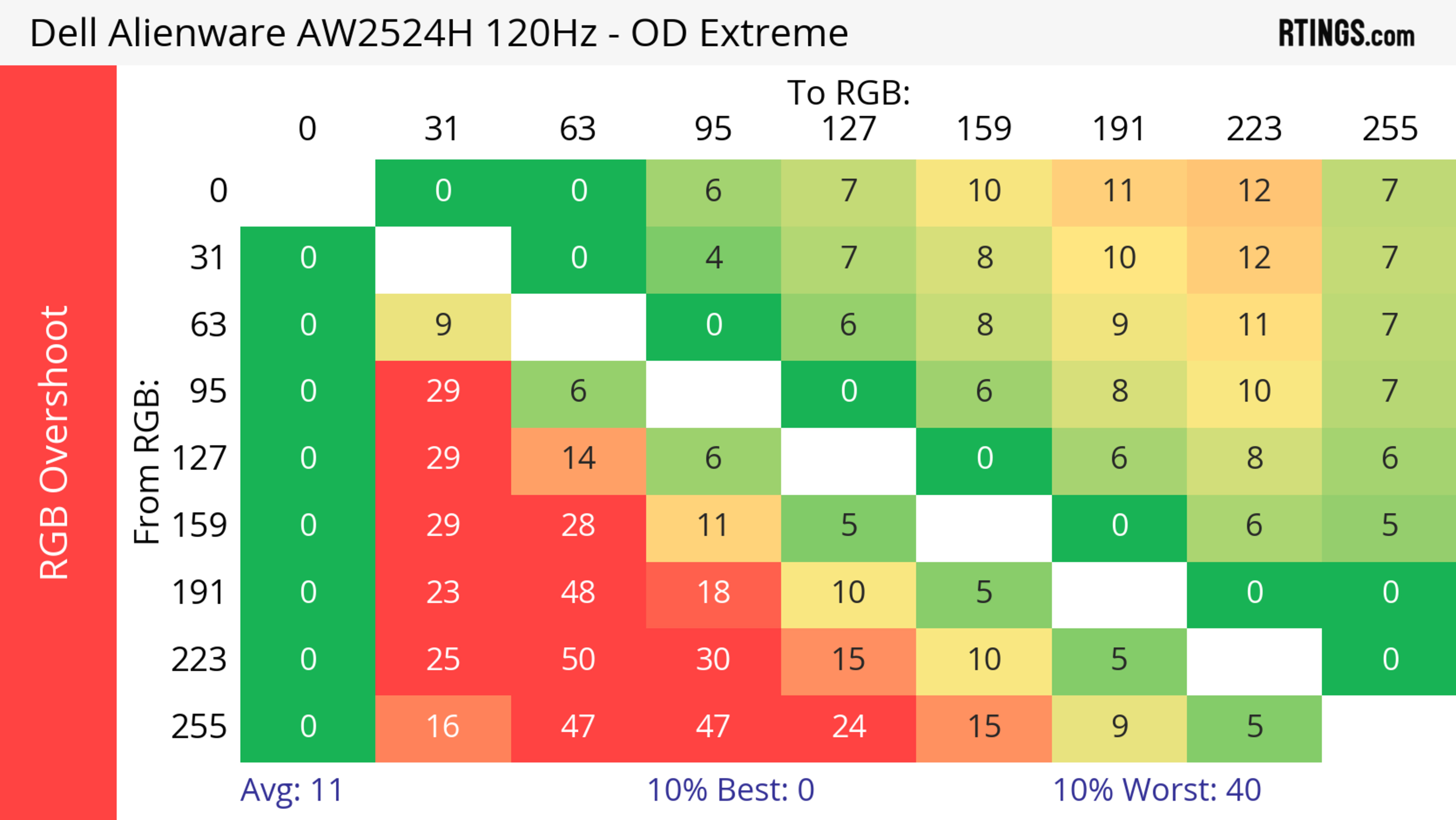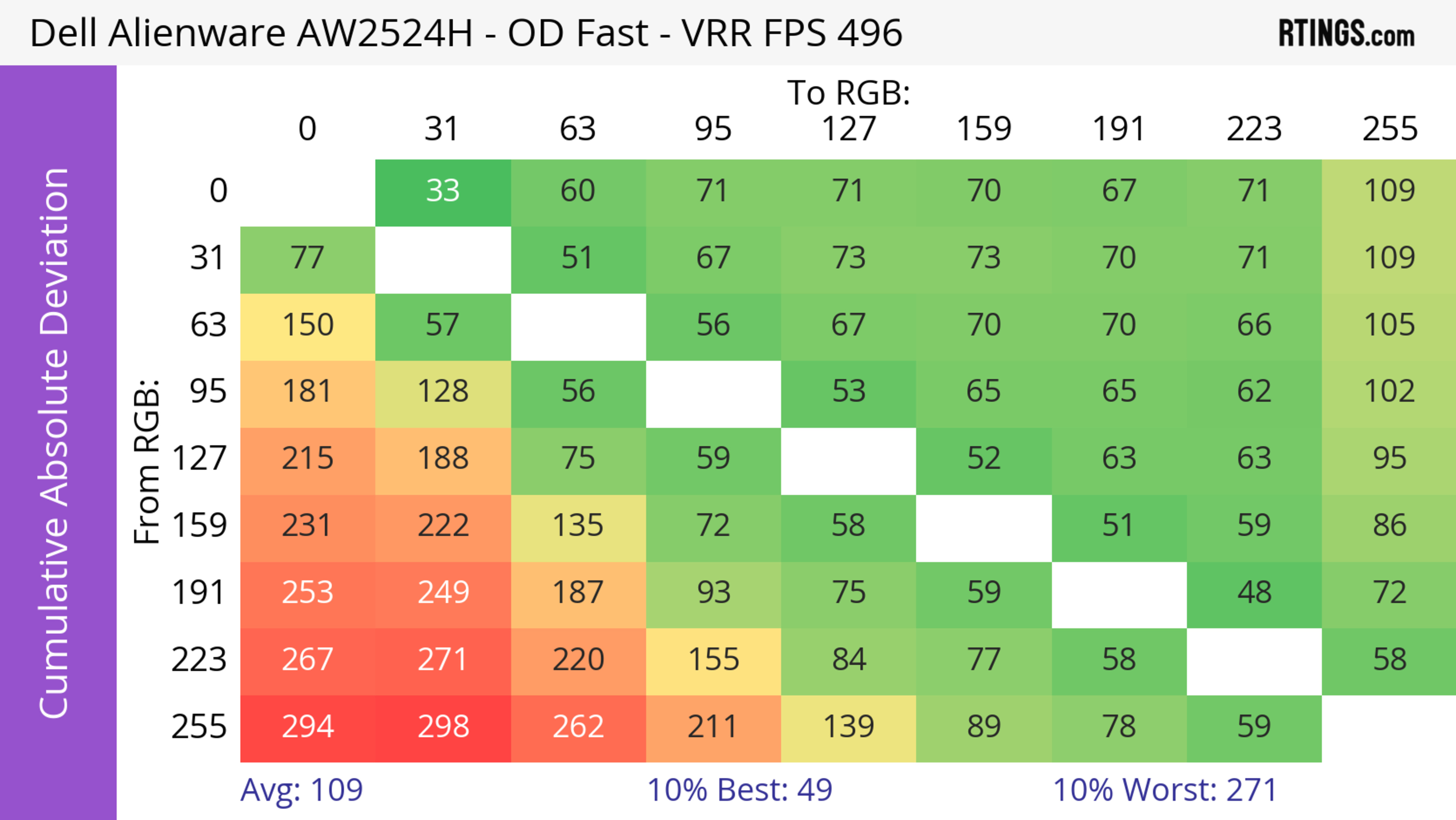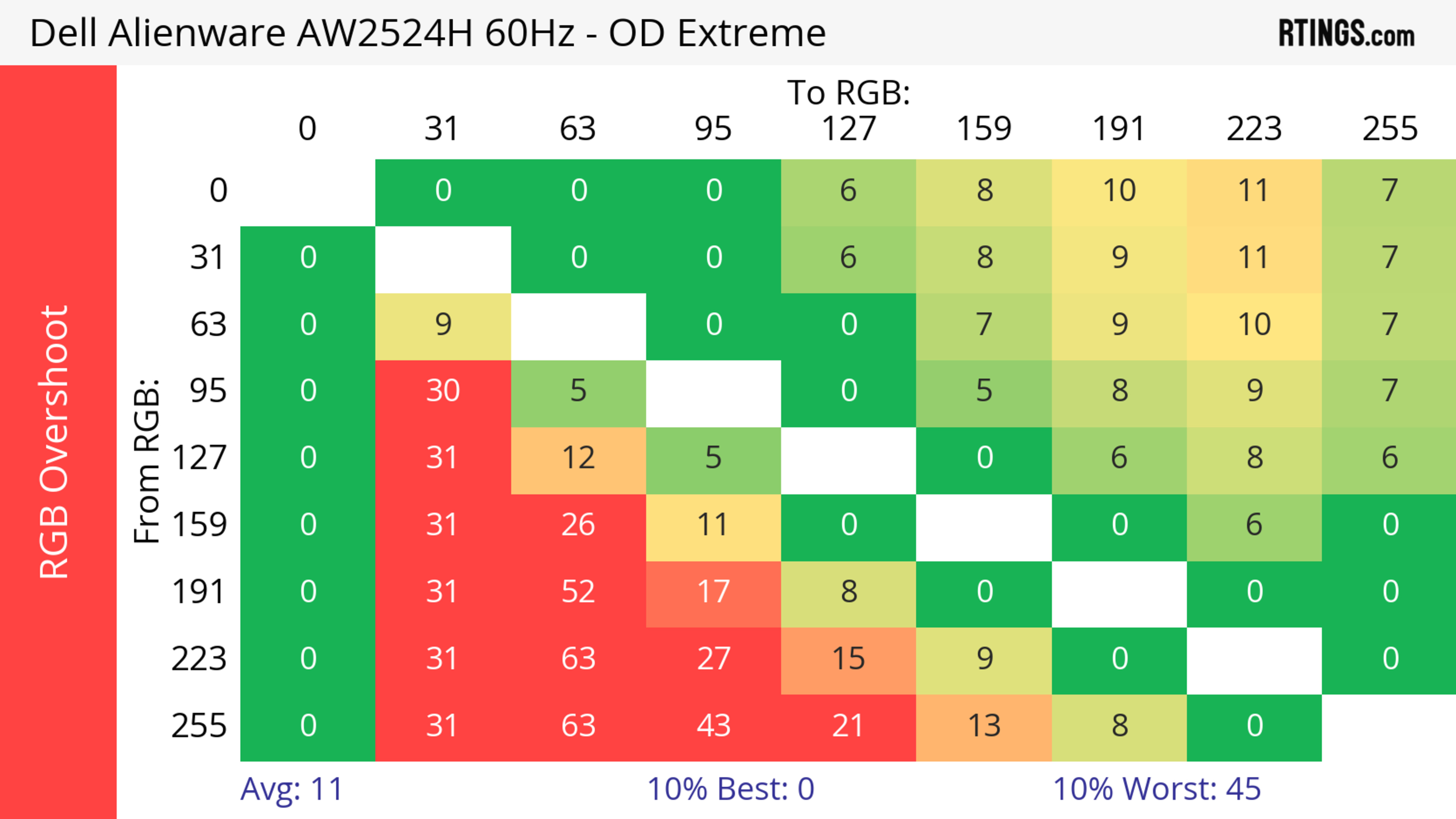 The refresh rate compliance is good. Although its response time isn't fast enough to make full color transitions before the monitor draws the next frame at the max refresh rate, it's much better at lower refresh rates.