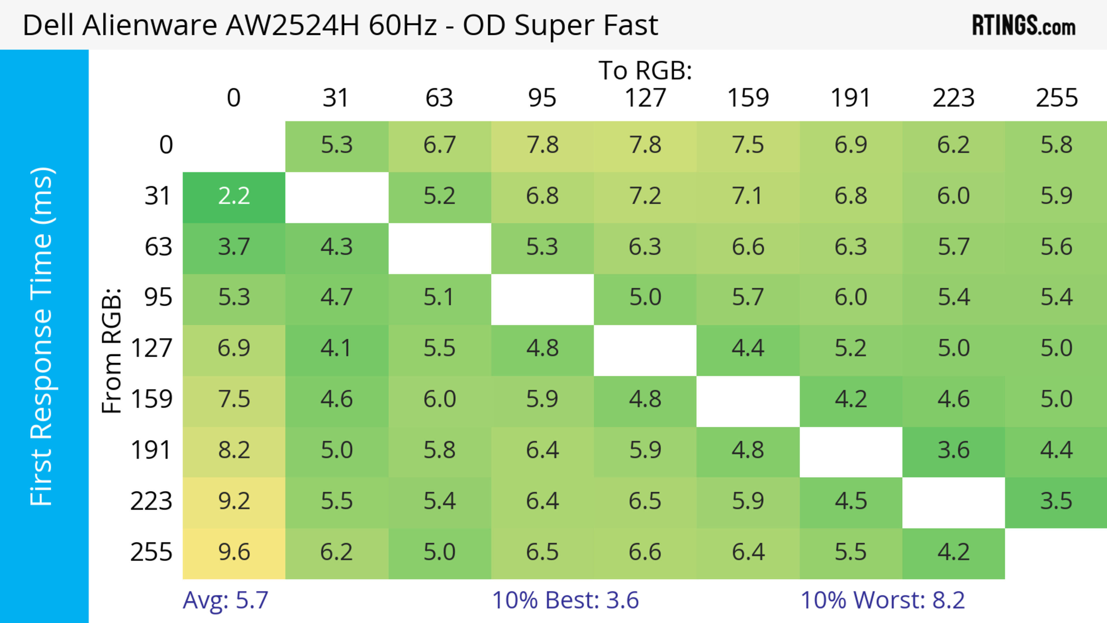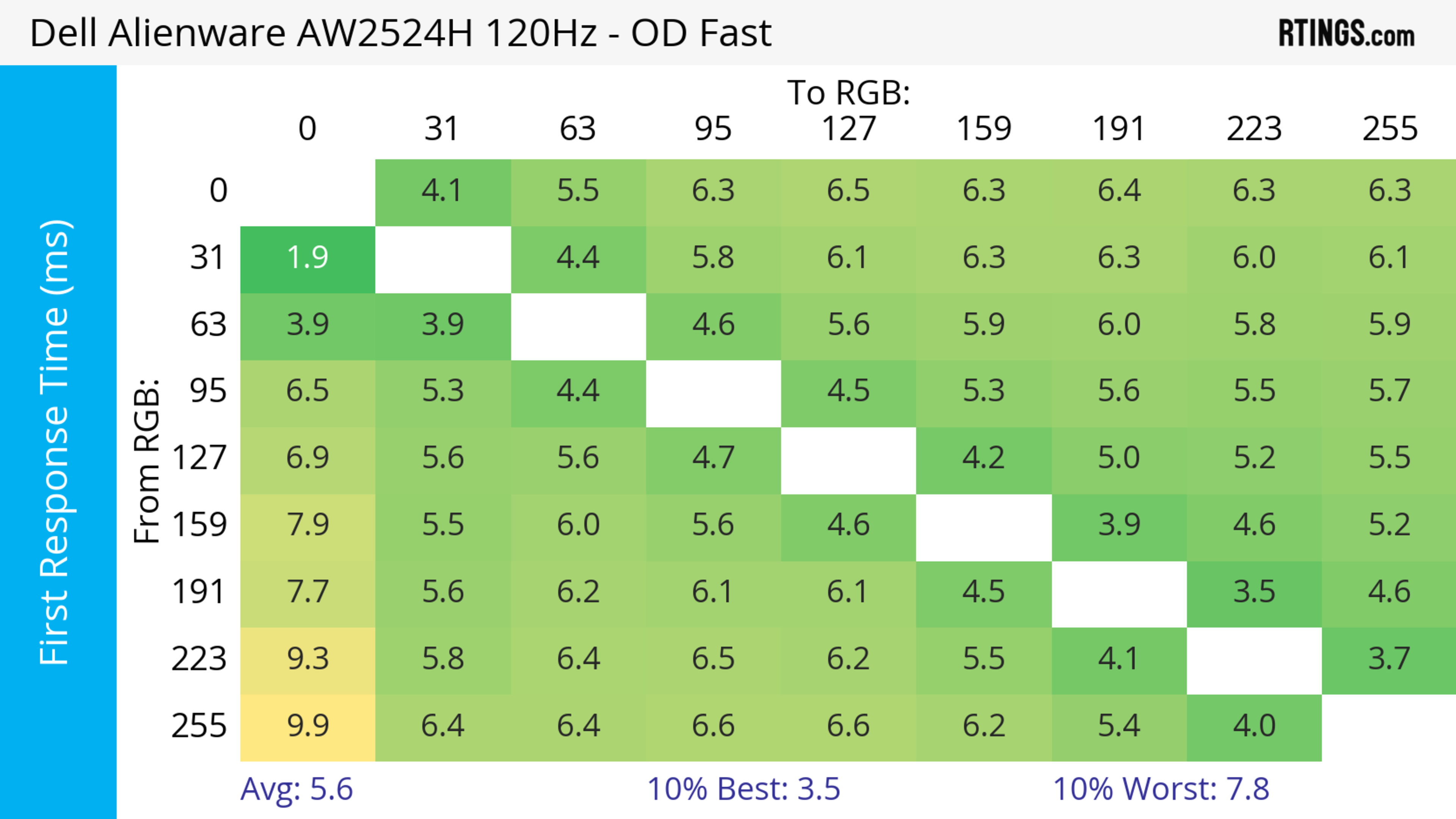 - 360Hz: 5.6 ms