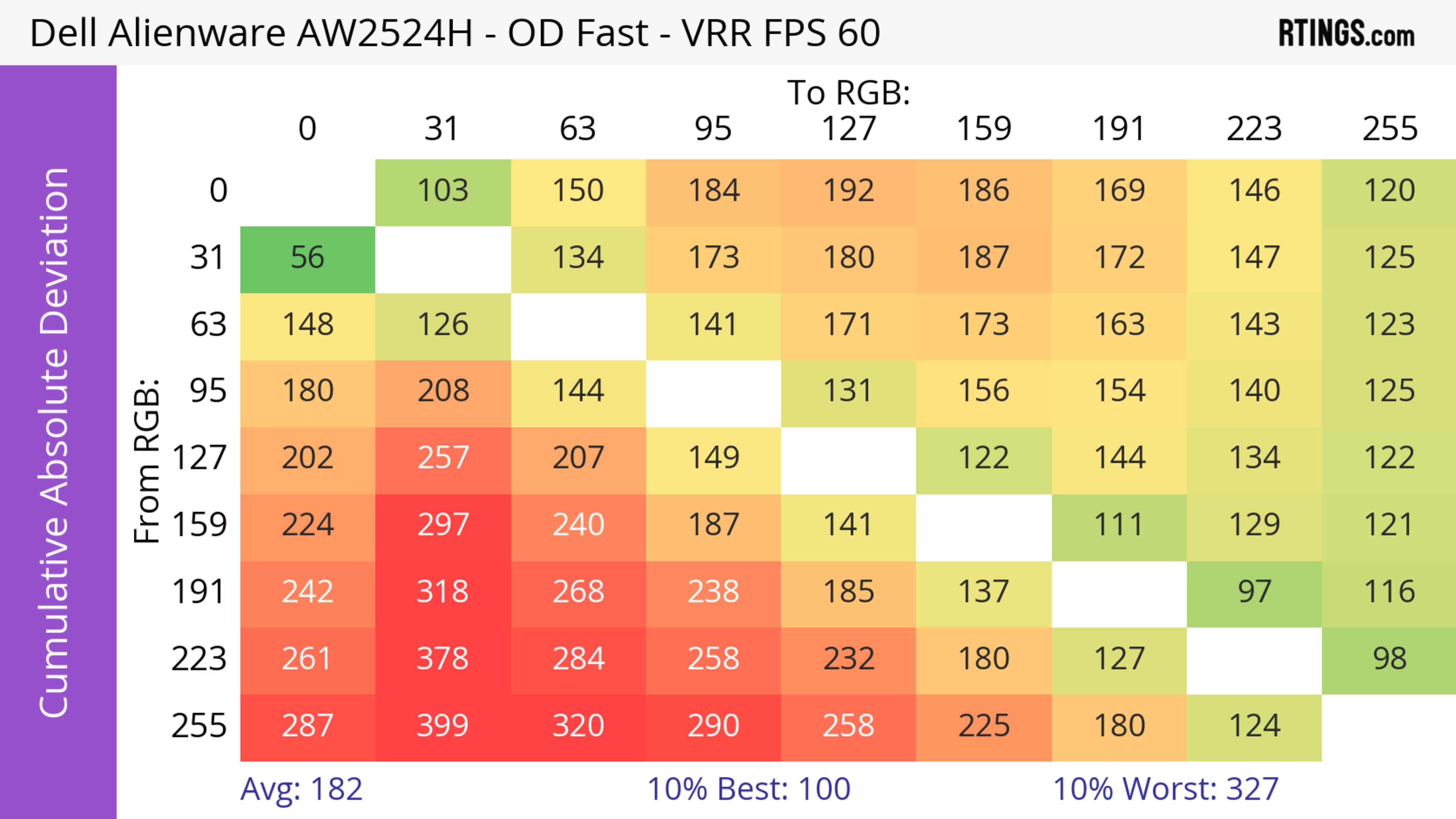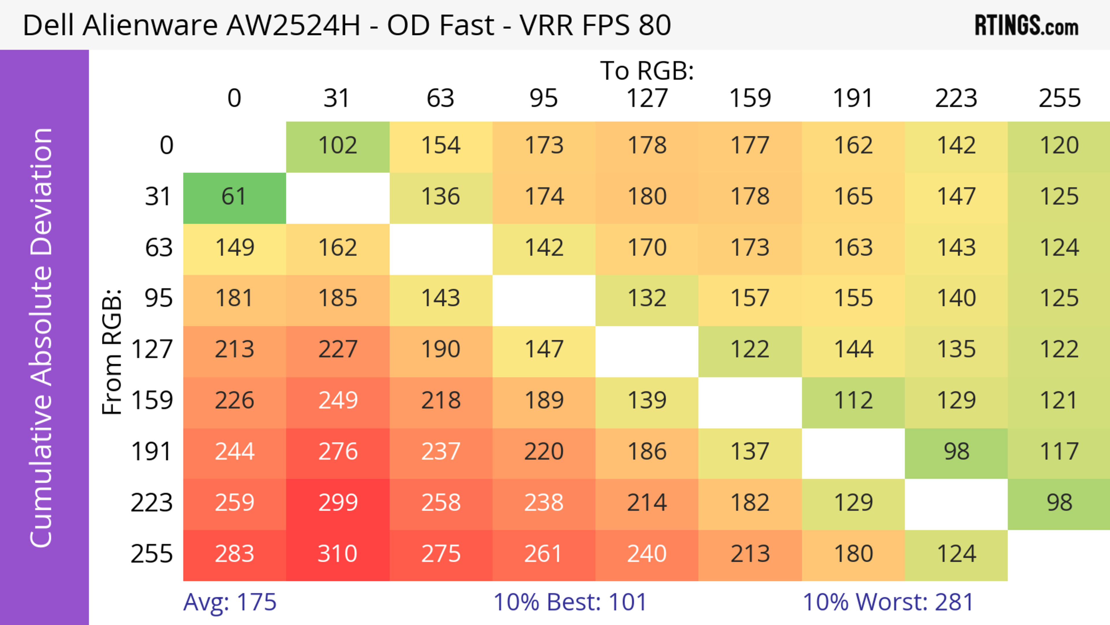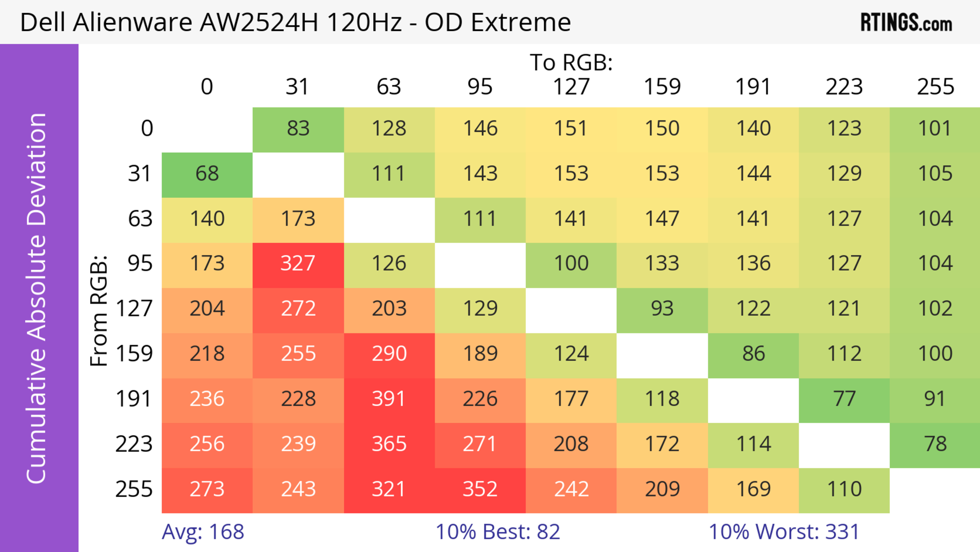 The Dell AW2524H has a very good response time. It's best at high refresh rates as motion looks sharp, but there's more blur at low refresh rates.