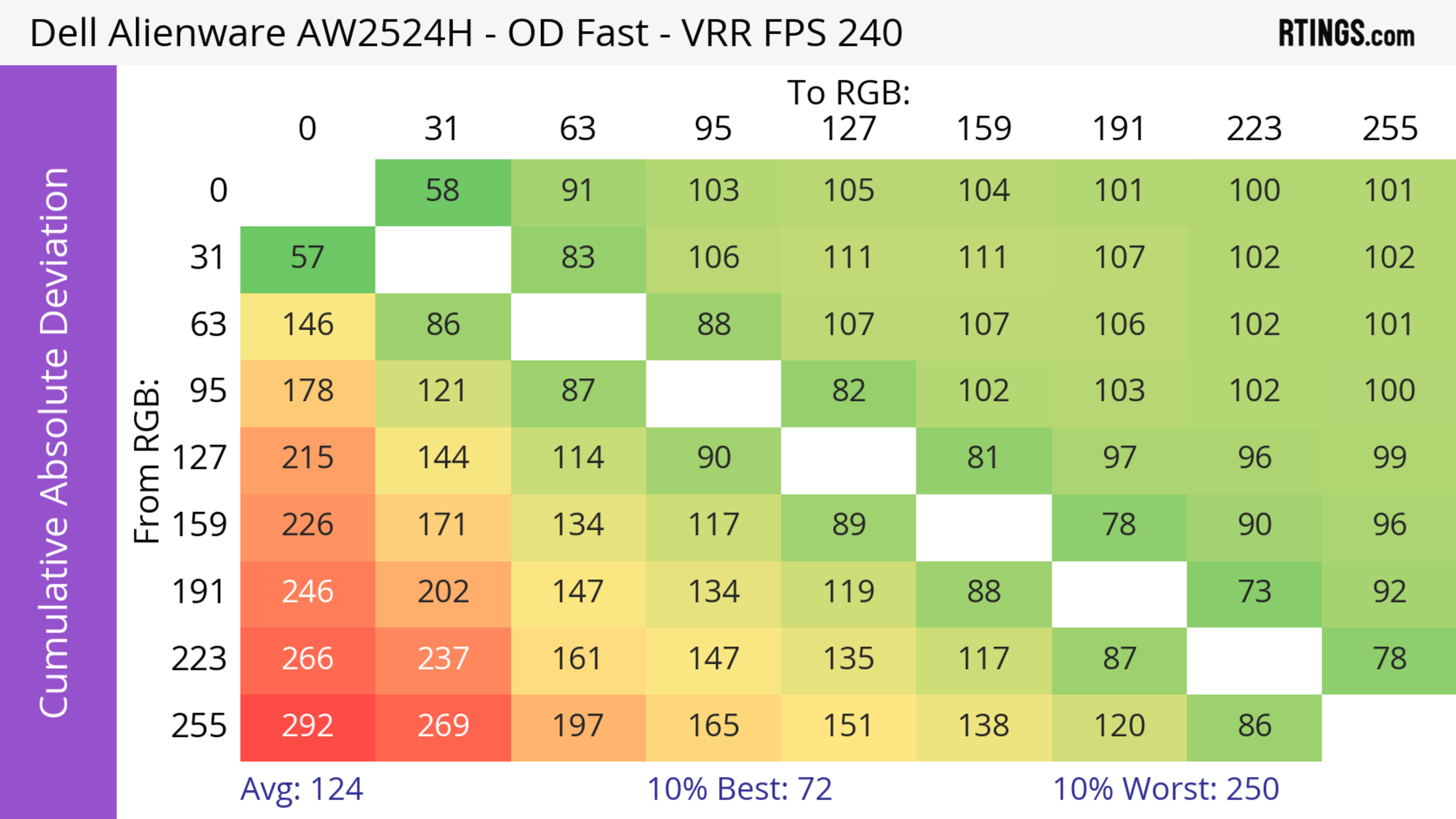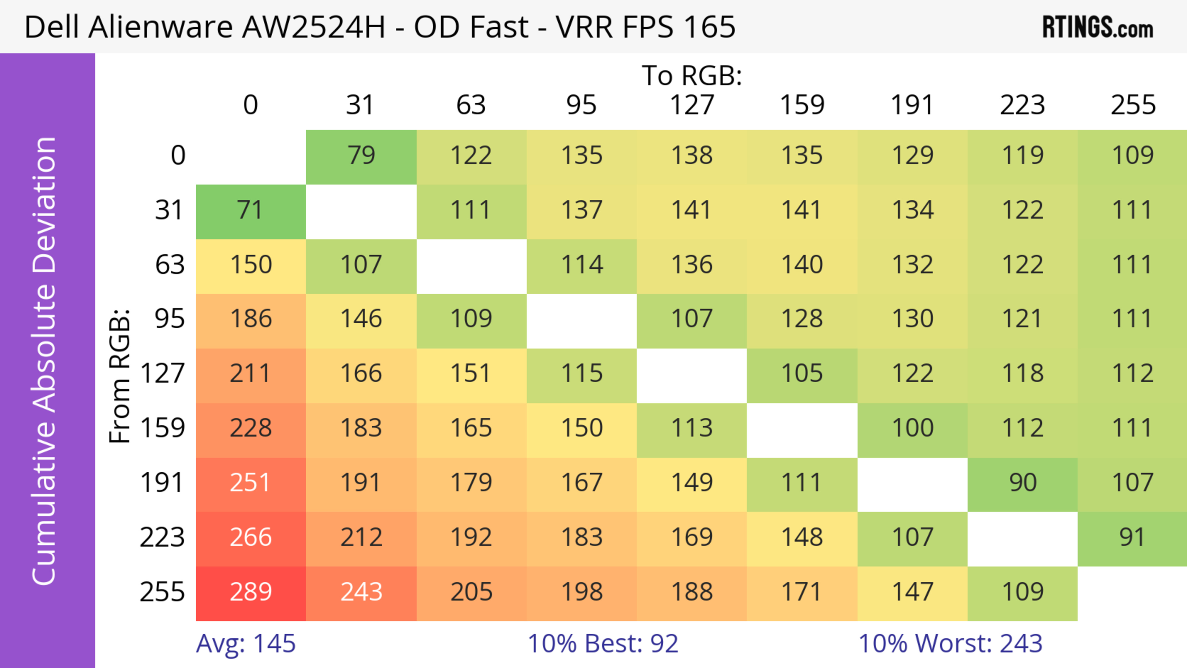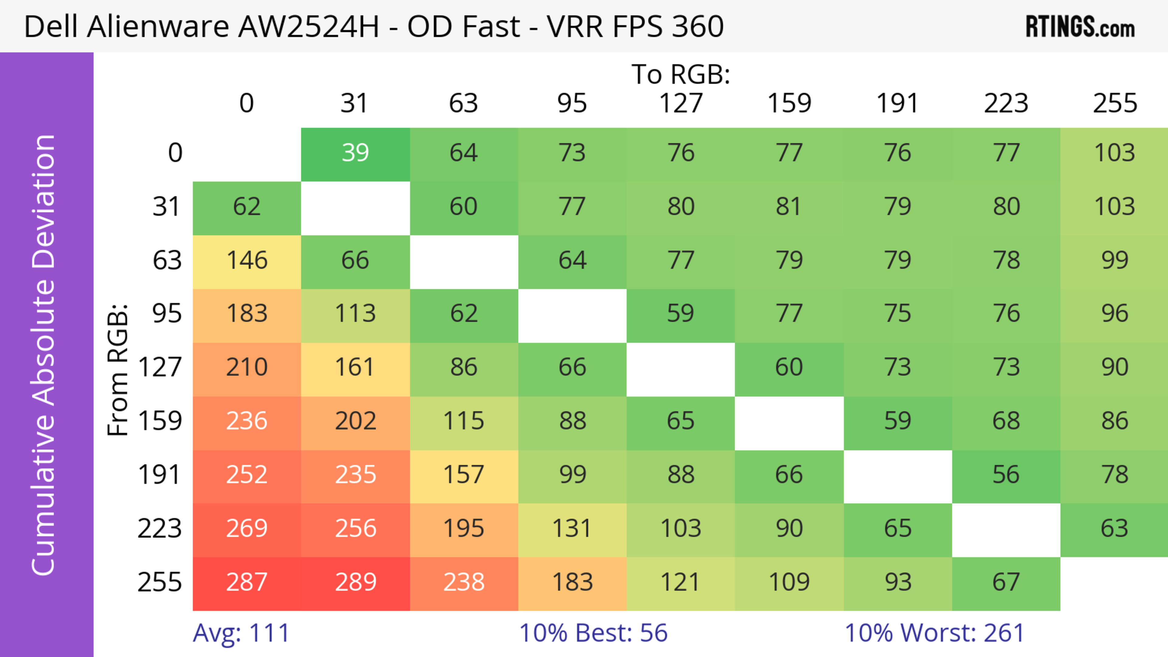 The Dell AW2524H has a very good response time. It's best at high refresh rates as motion looks sharp, but there's more blur at low refresh rates.