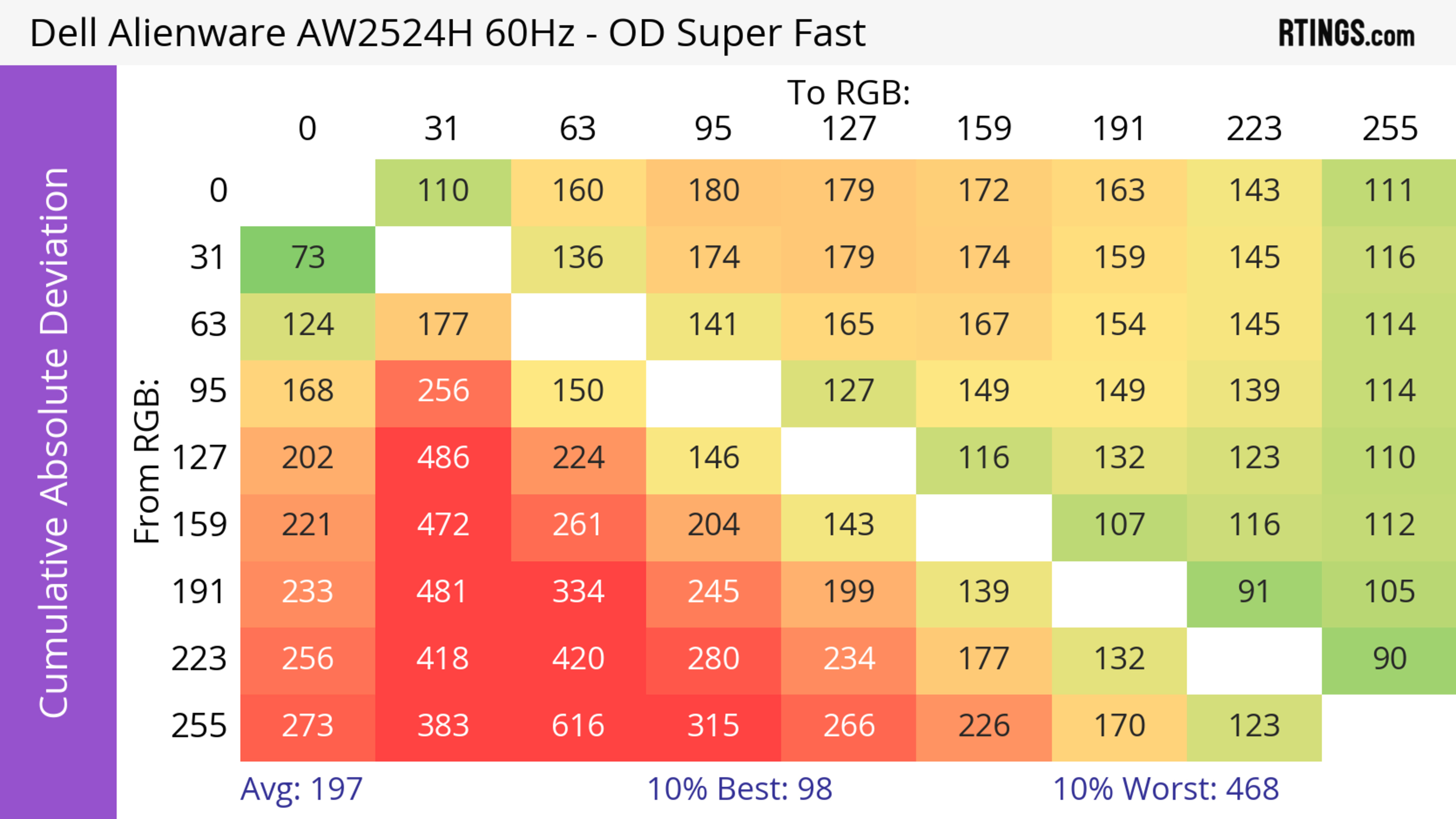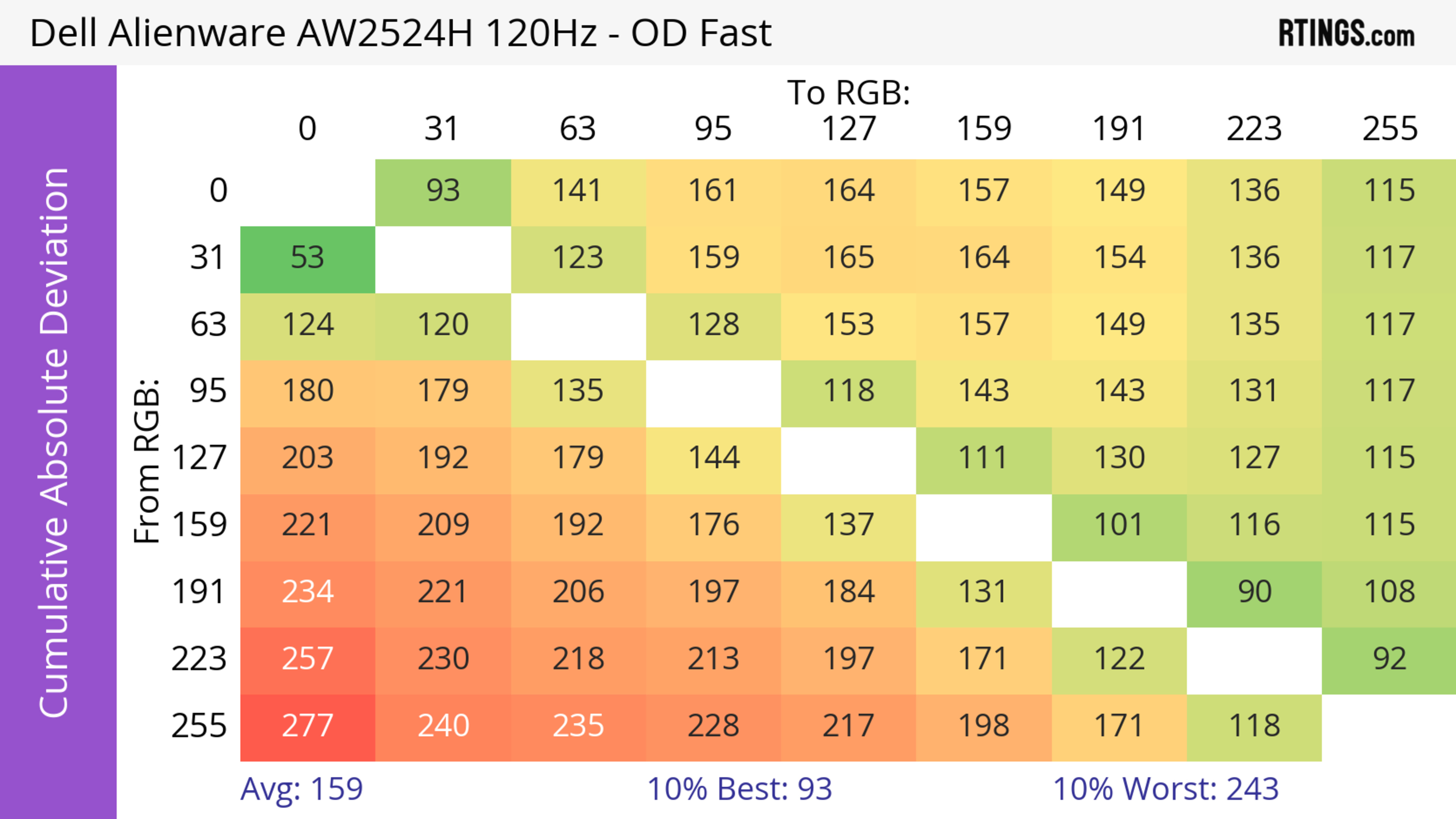 We tested the 25-inch Dell AW2524H, which is the only size available. It sits alongside the Dell Alienware AW2524HF, which is a different monitor, so the results are only valid for the AW2524H, and you can see the differences below.