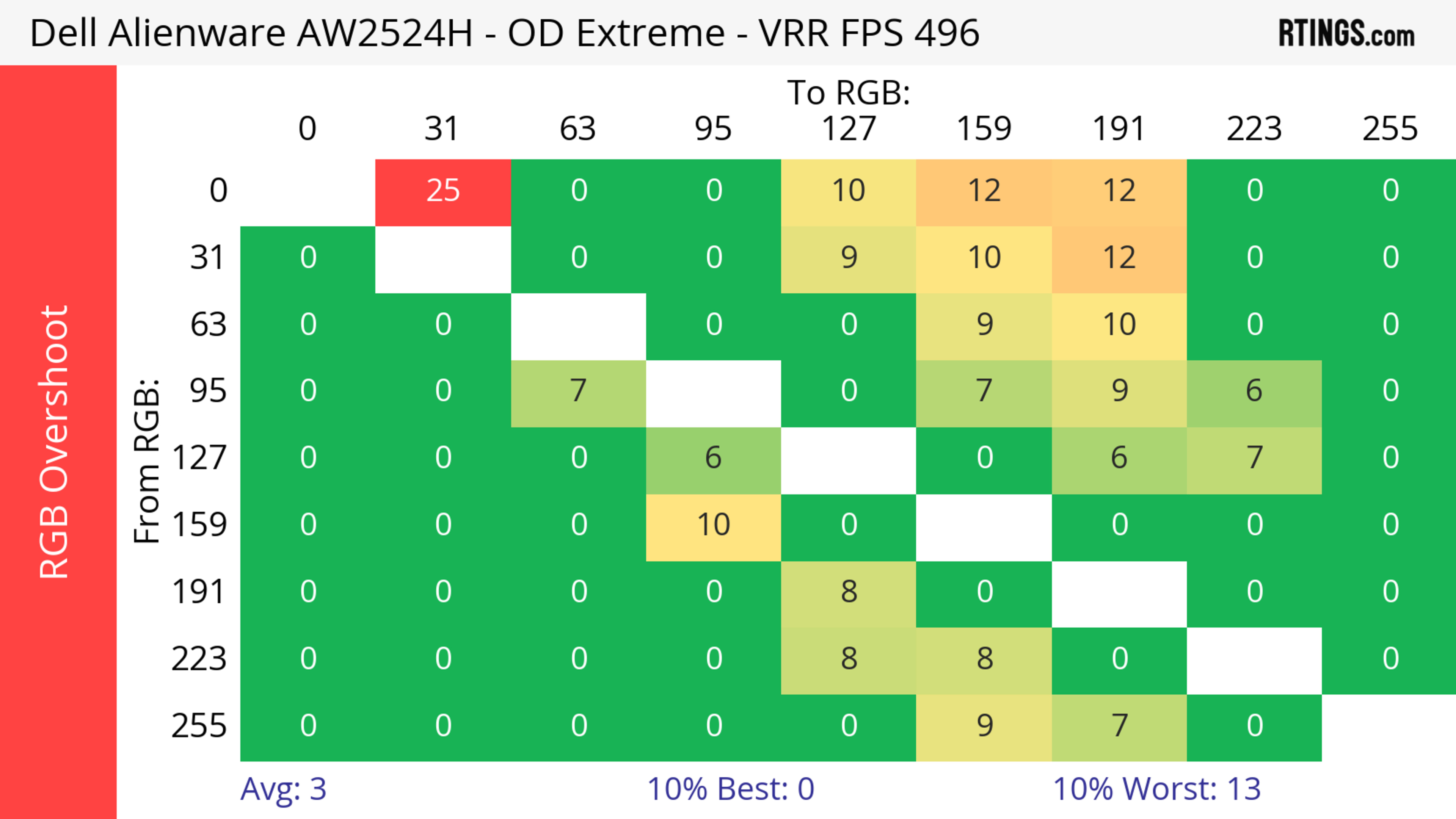 The Dell AW2524H has great motion handling across its VRR range. Motion looks sharp, especially at high refresh rates, but there's more inverse ghosting at low refresh rates.
