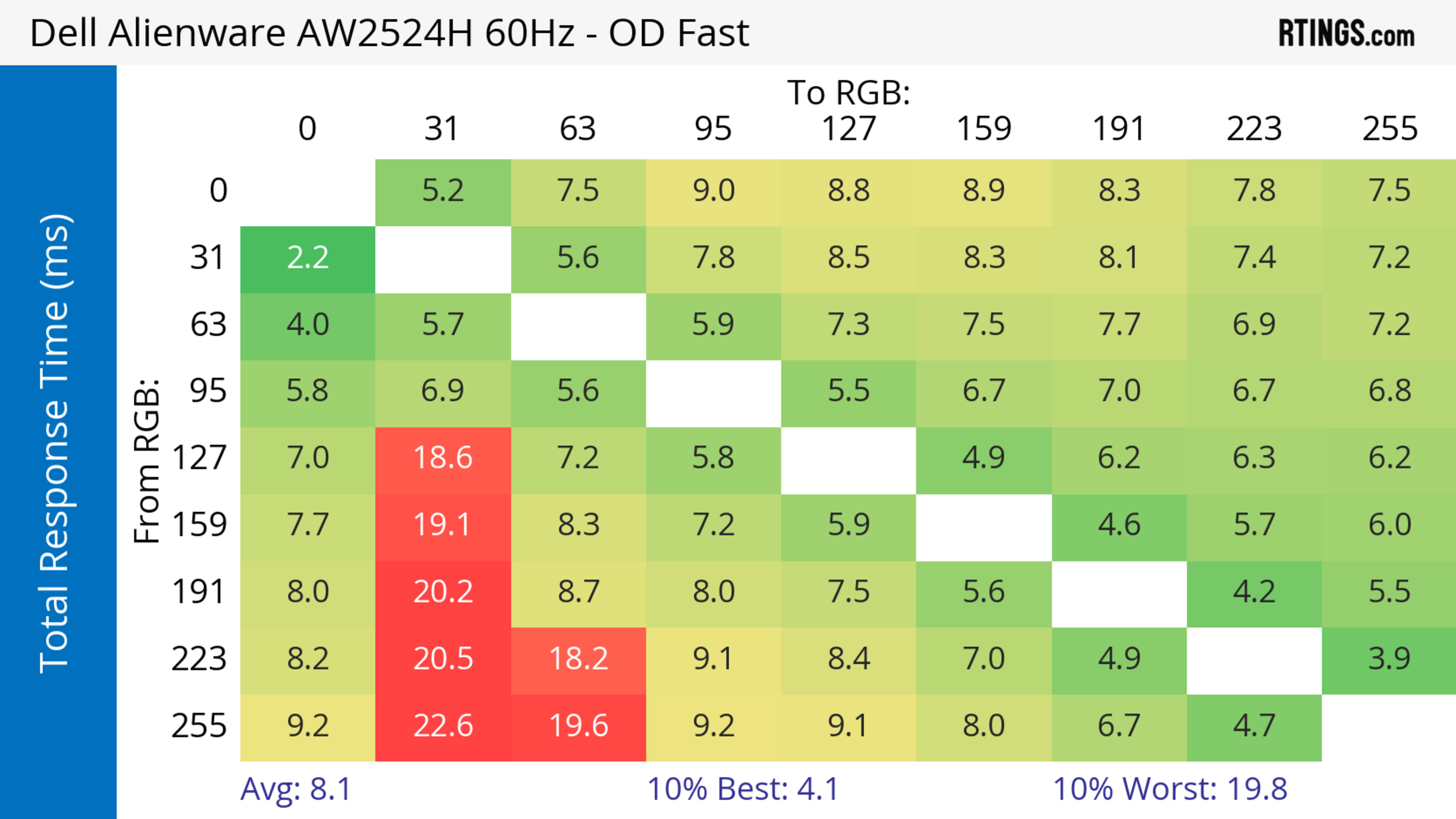 - 240Hz: 8.3 ms