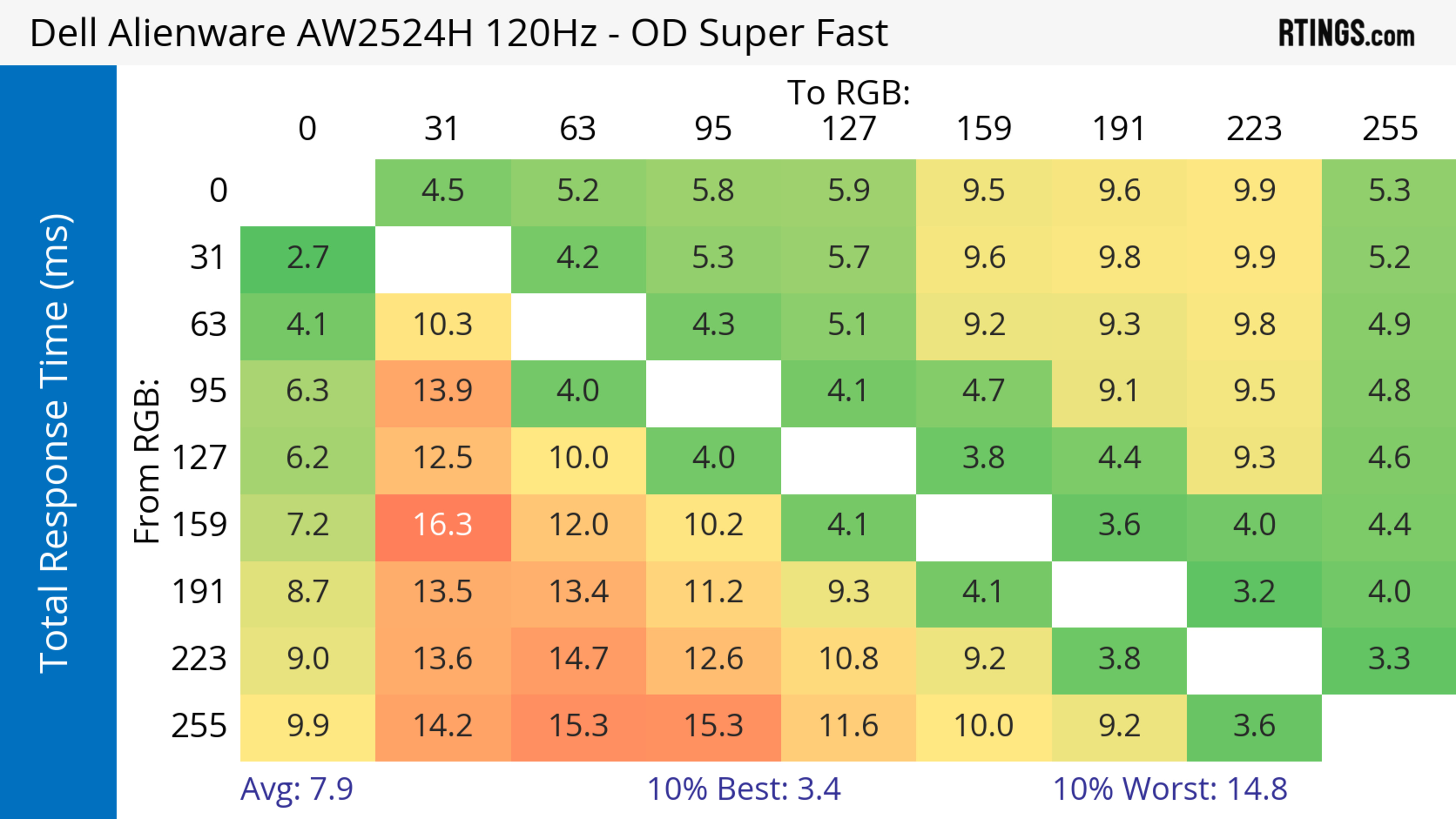 - 120Hz: 15.2 ms