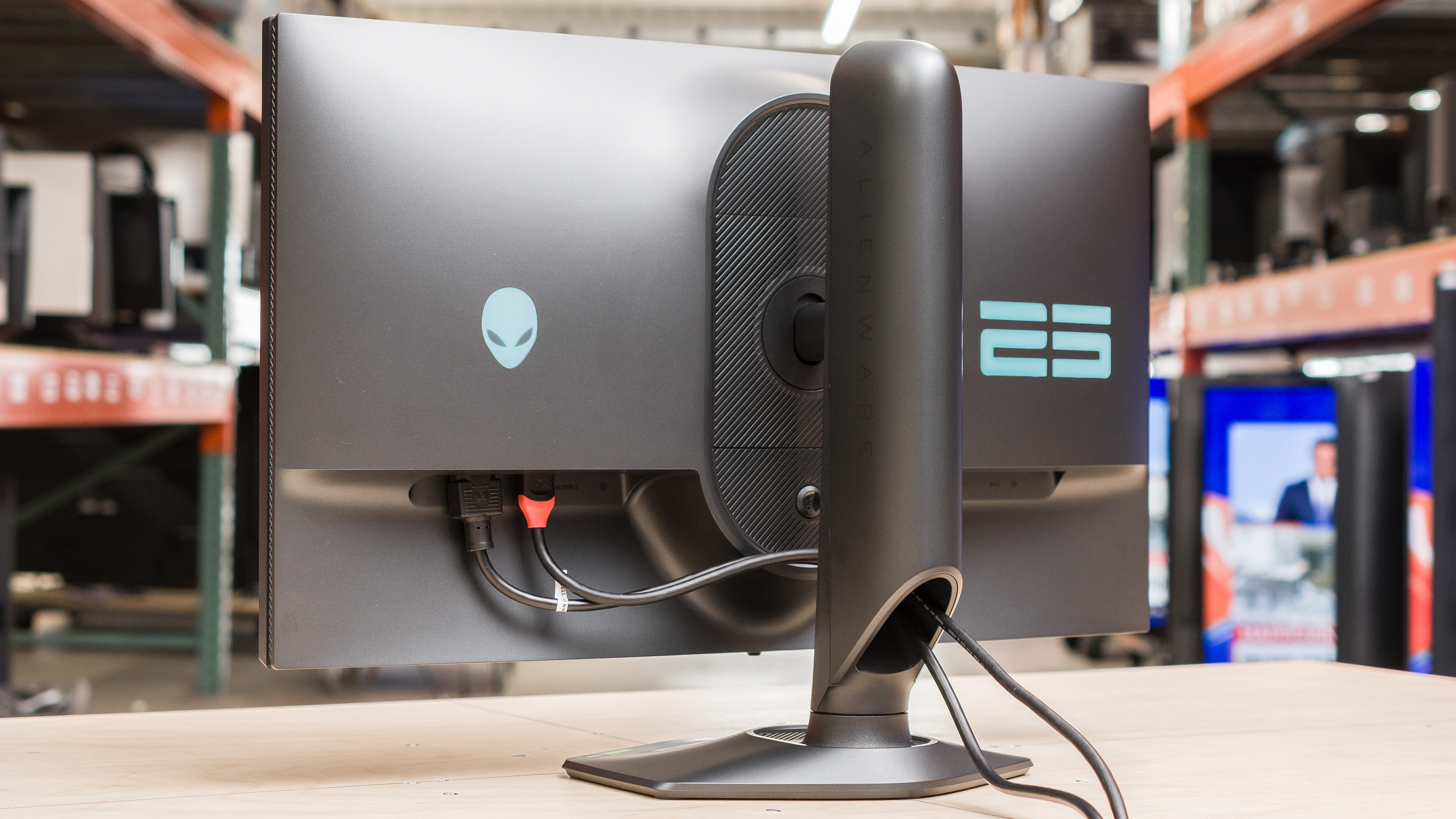 The Dell AW2524H has excellent ergonomics, as you can easily adjust it in different ways. The back is fairly plain, but the inputs can be hard to reach because they're down-facing and set into the back. The stand features a cut-out for cable management to keep your setup clean.