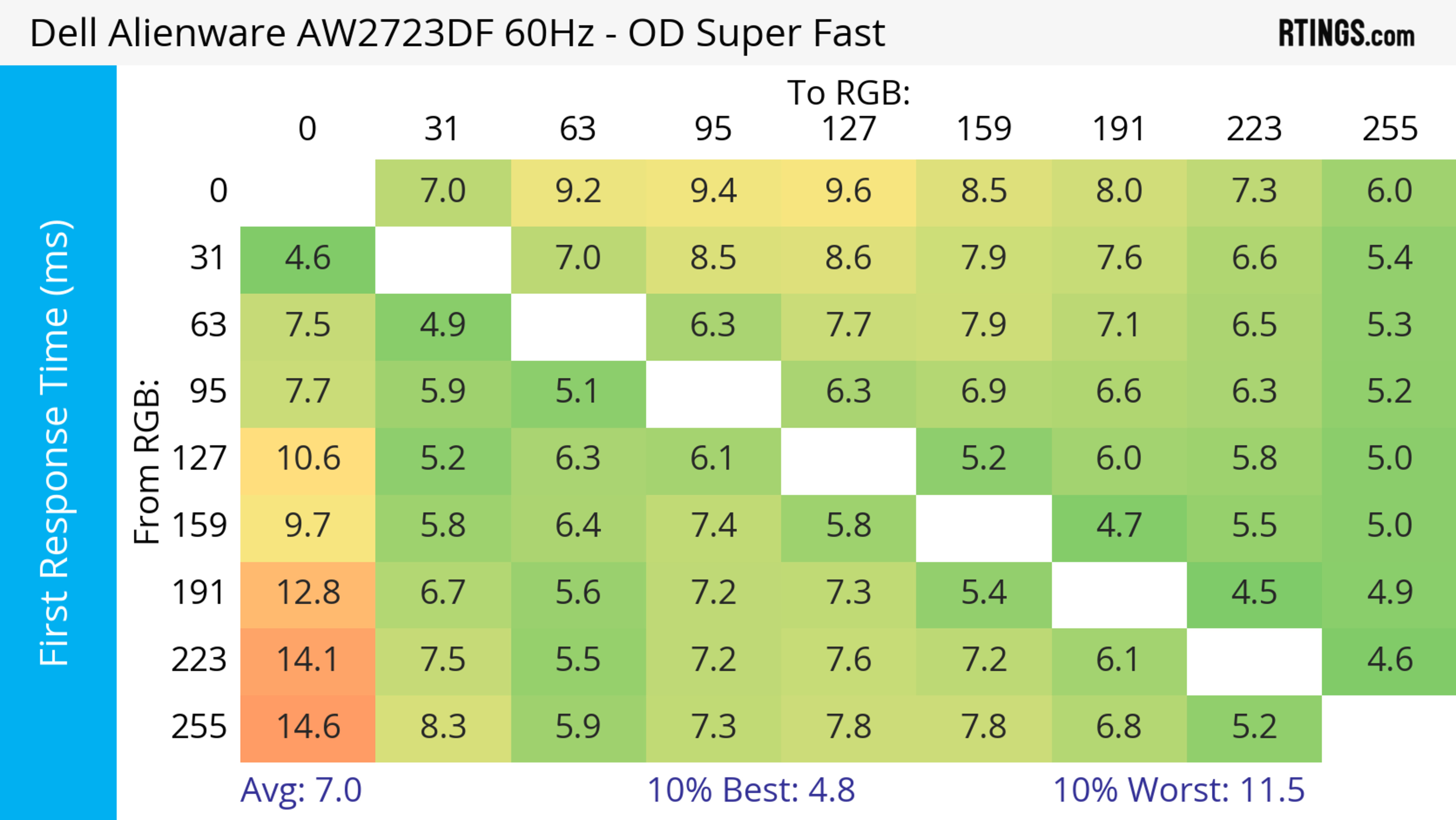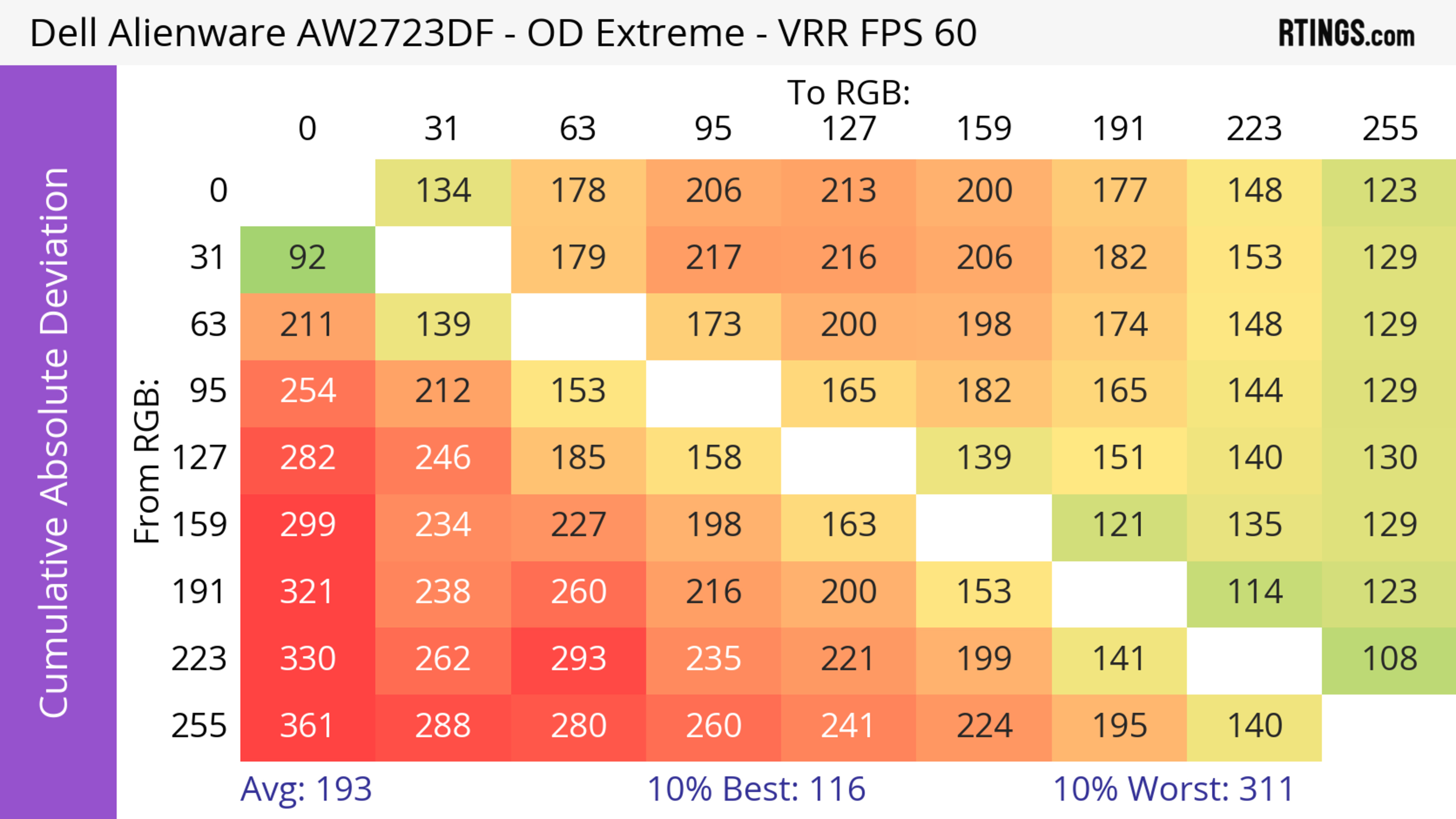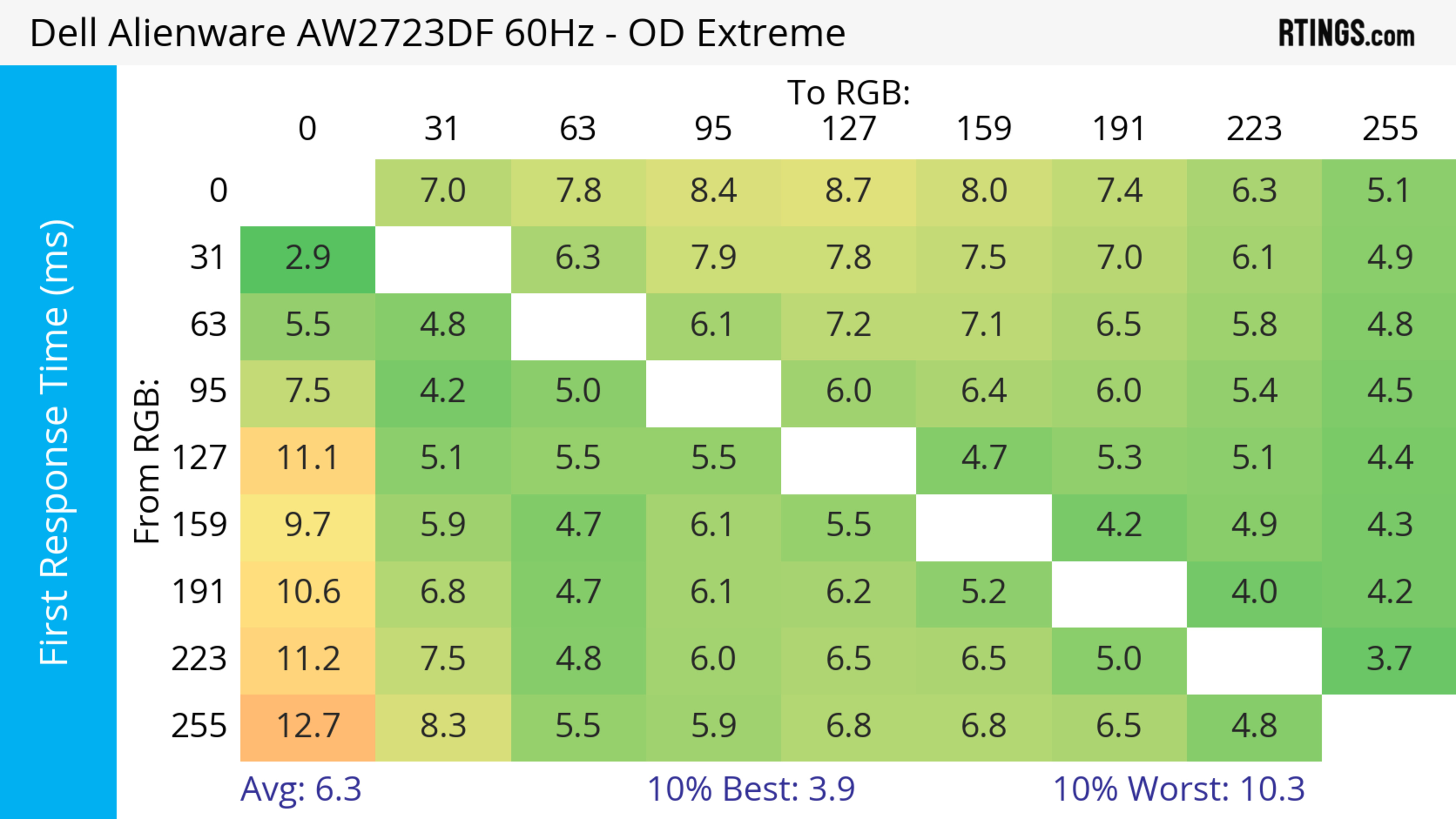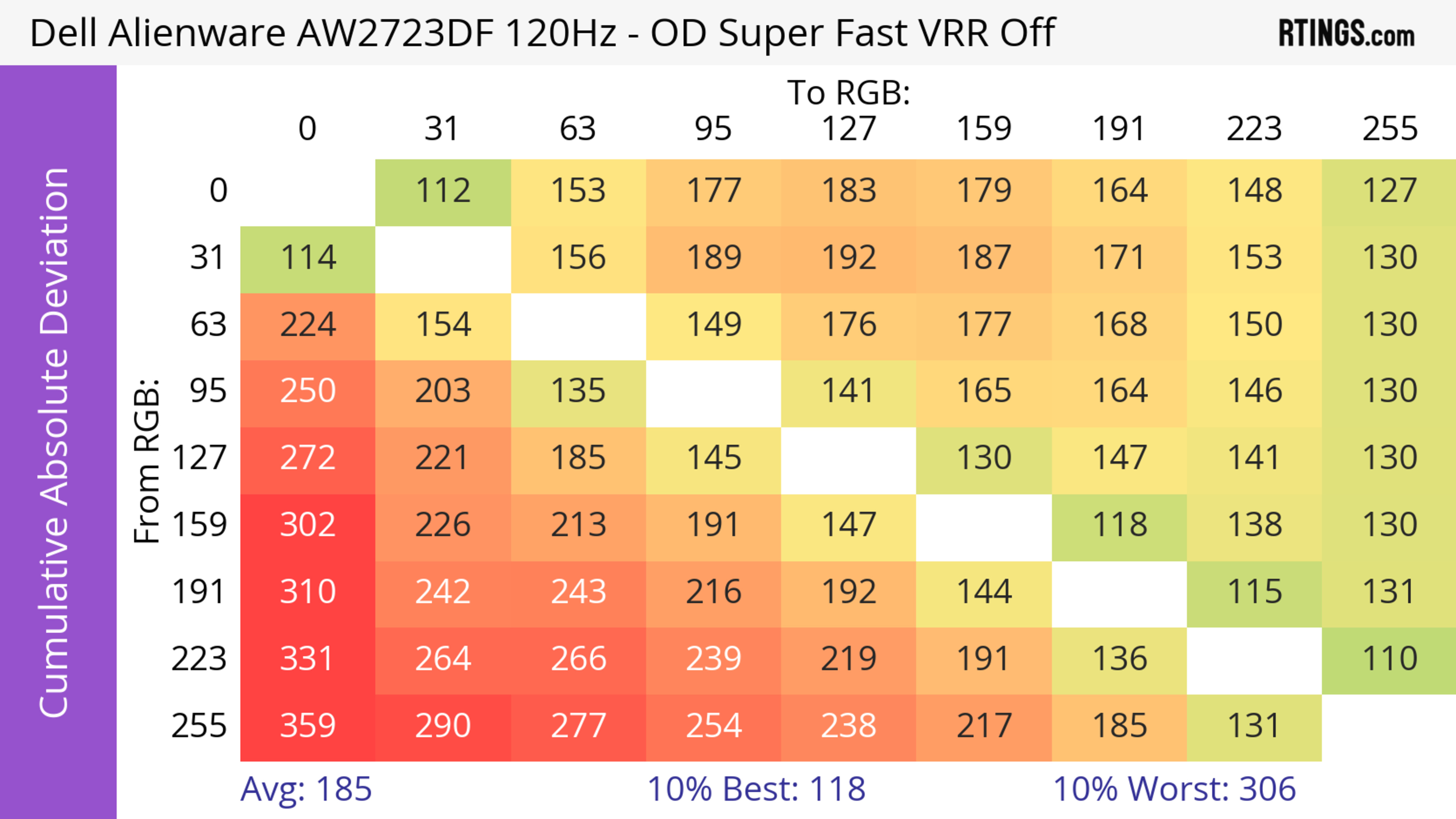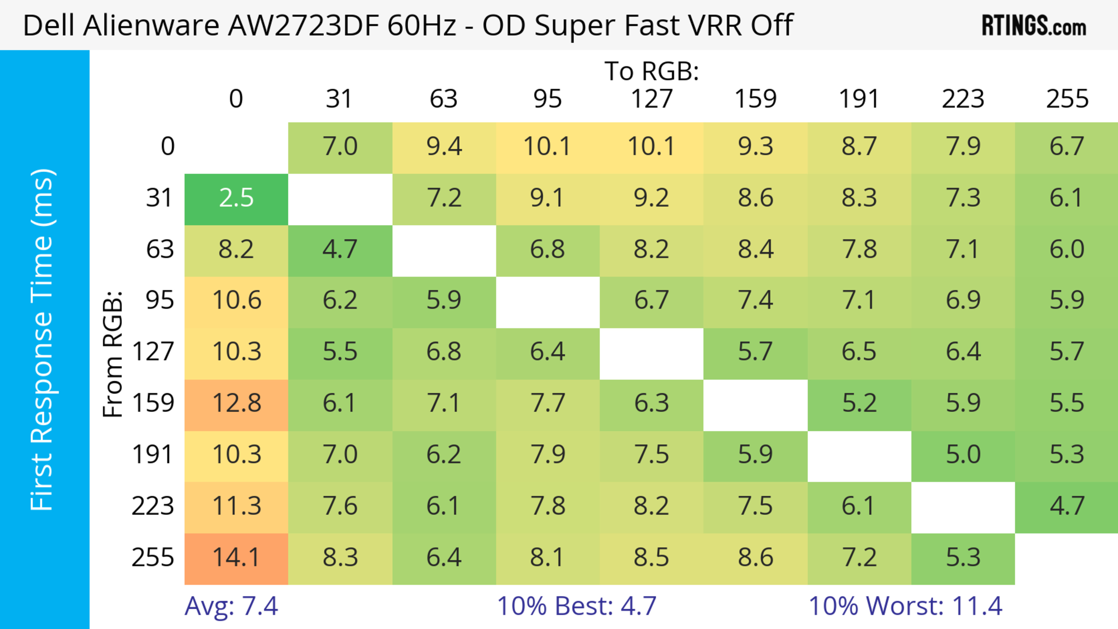The Dell AW2723DF has a decent response time. It's consistently fast across its VRR range, but fast-moving objects still have motion blur.