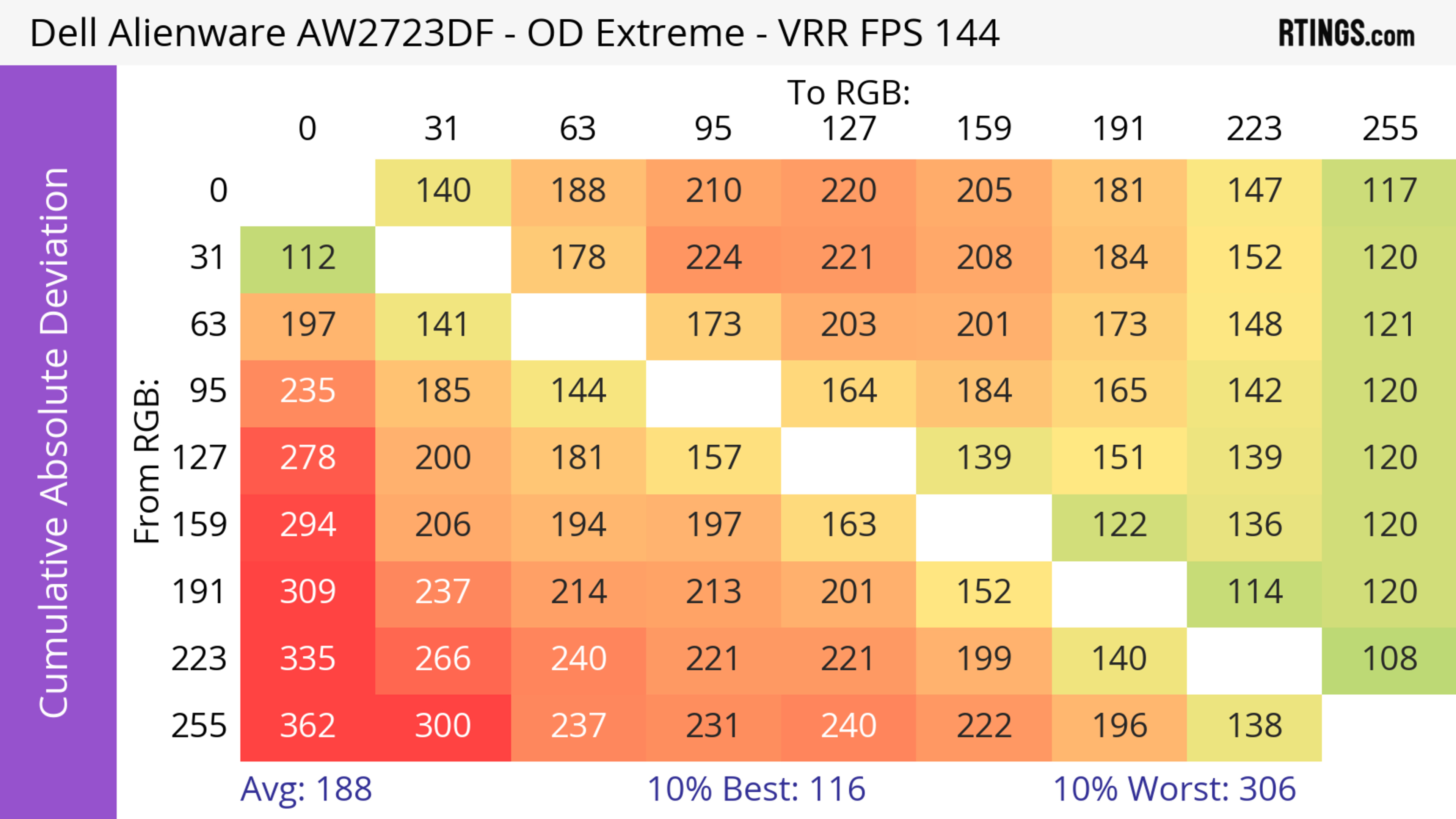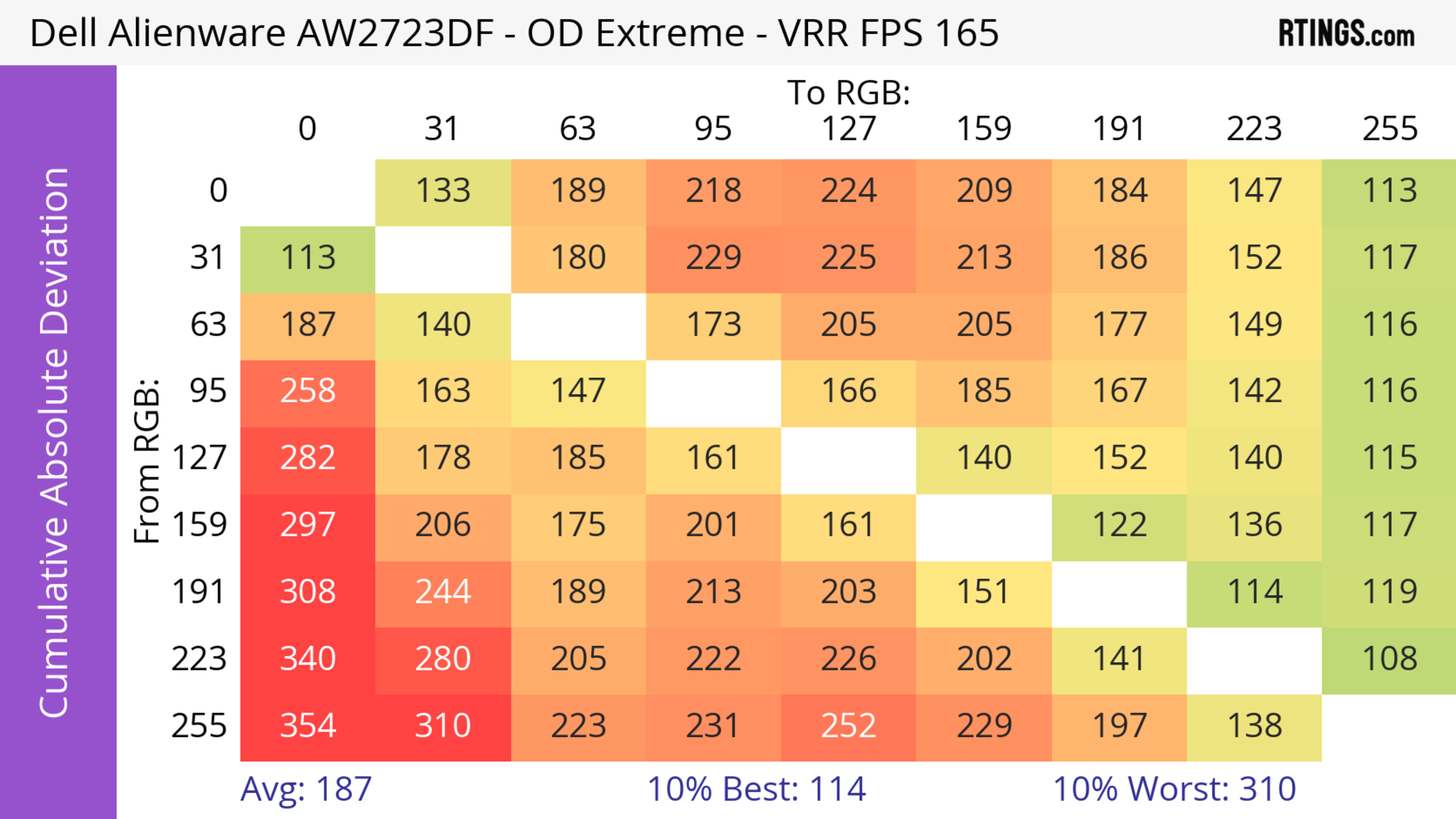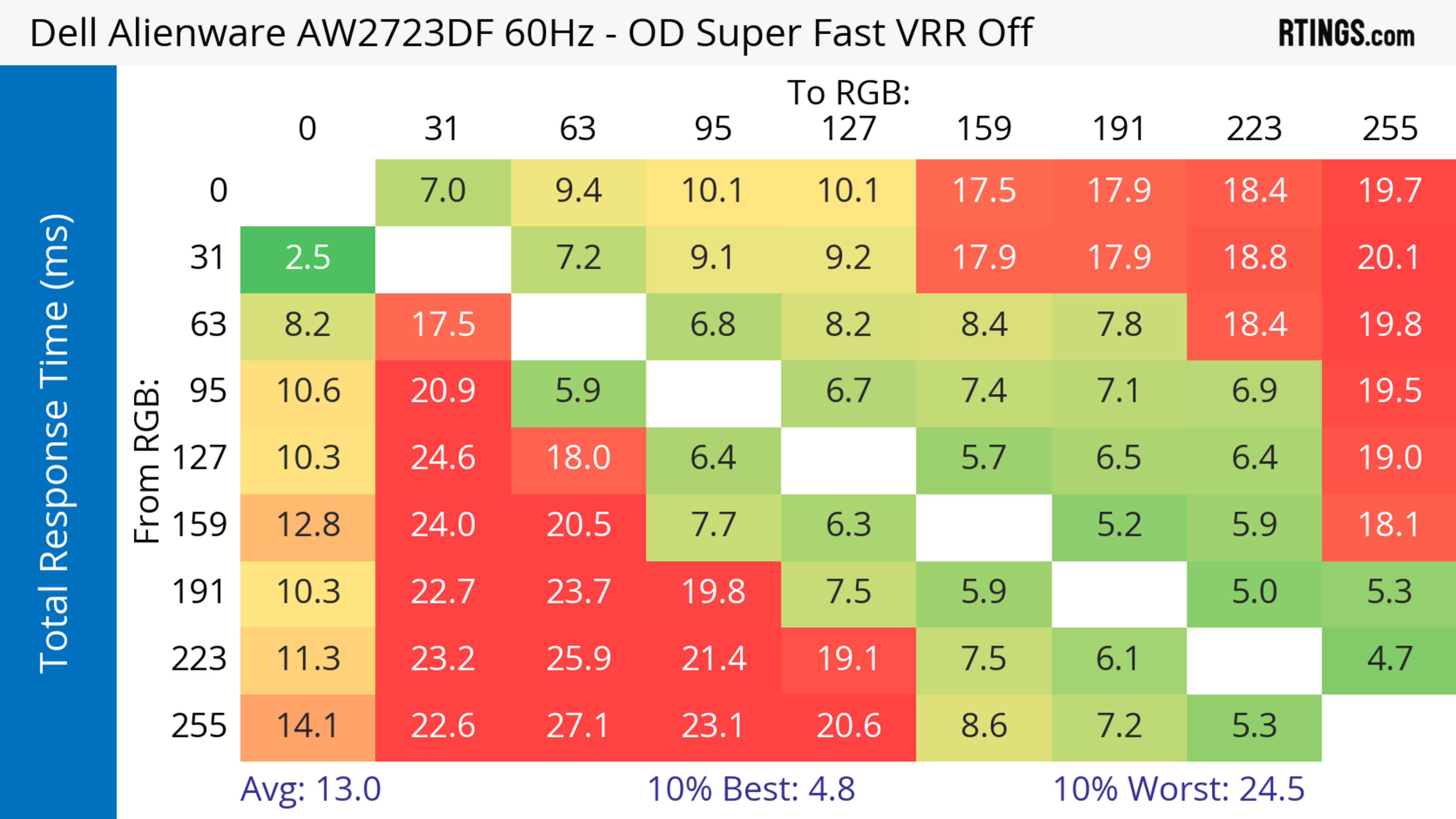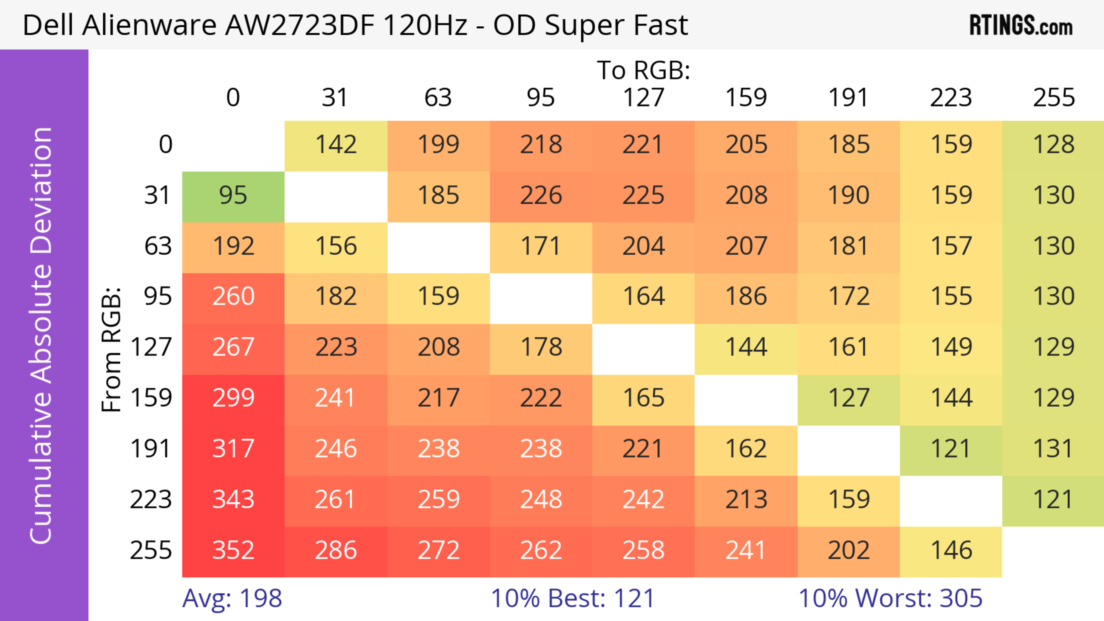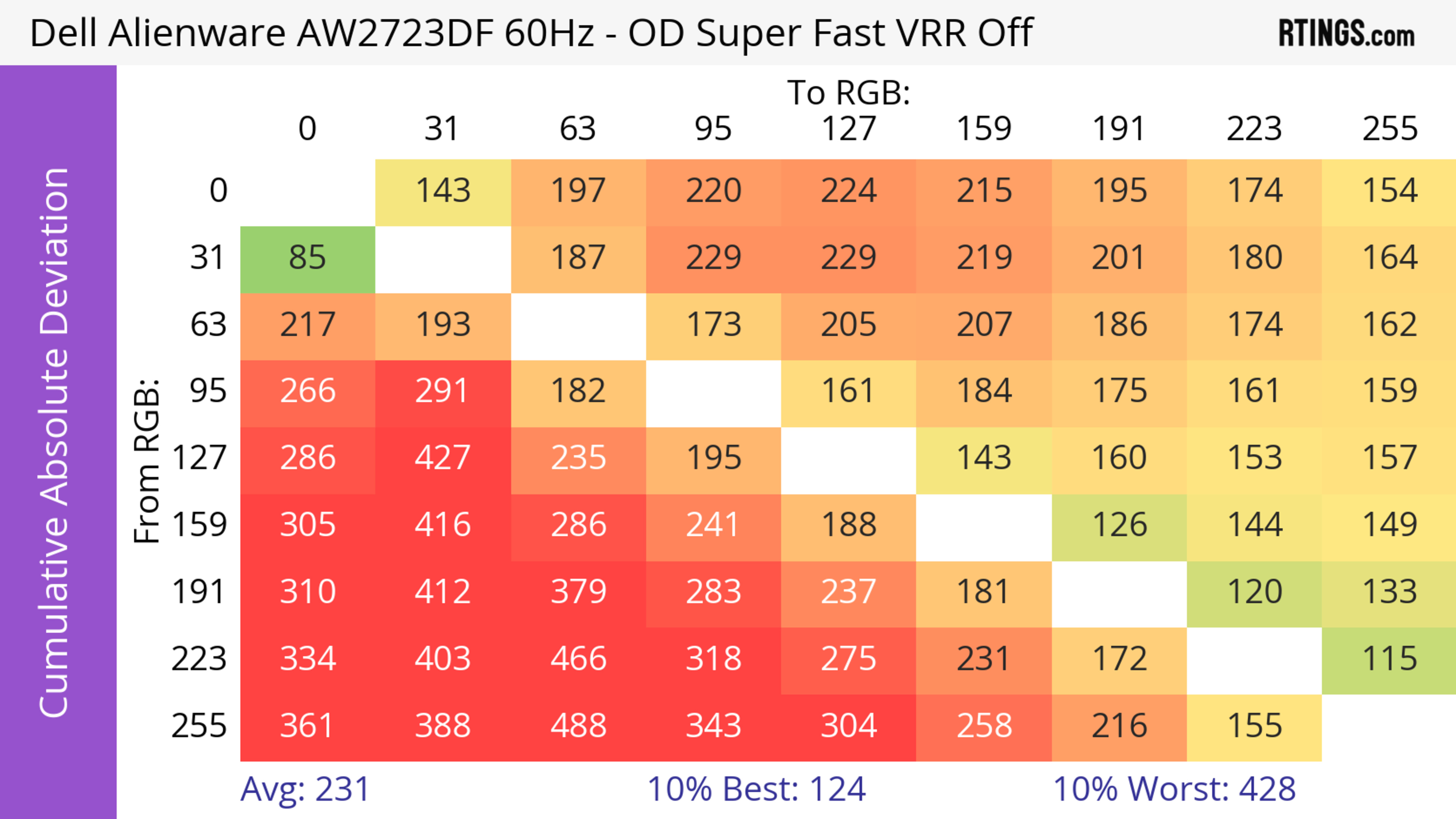 The Dell AW2723DF has a decent response time. It's consistently fast across its VRR range, but fast-moving objects still have motion blur.