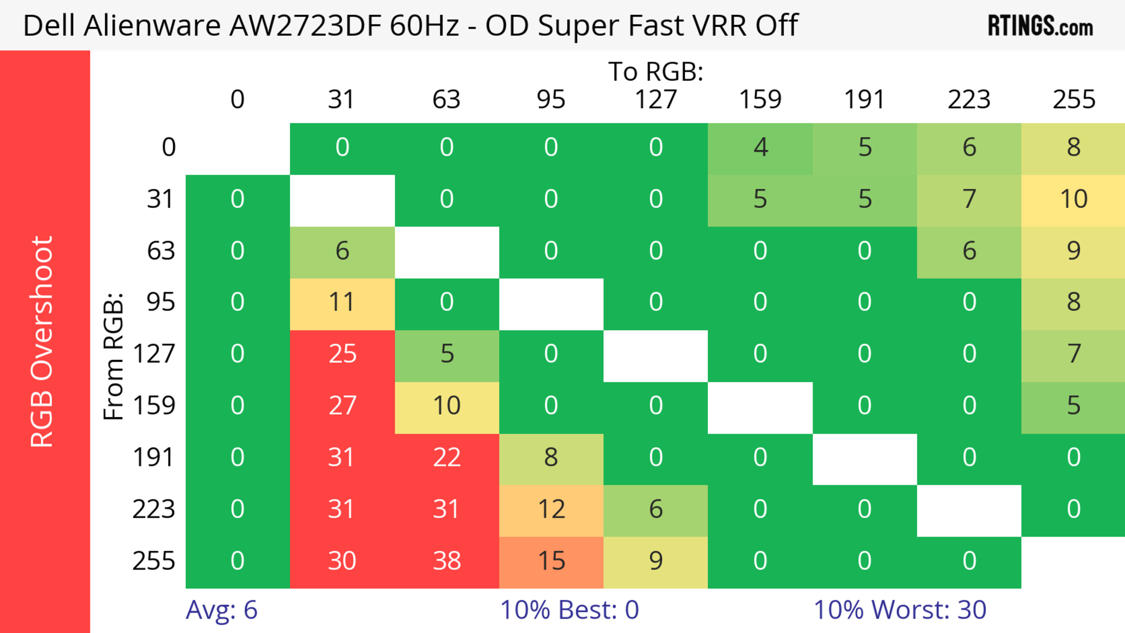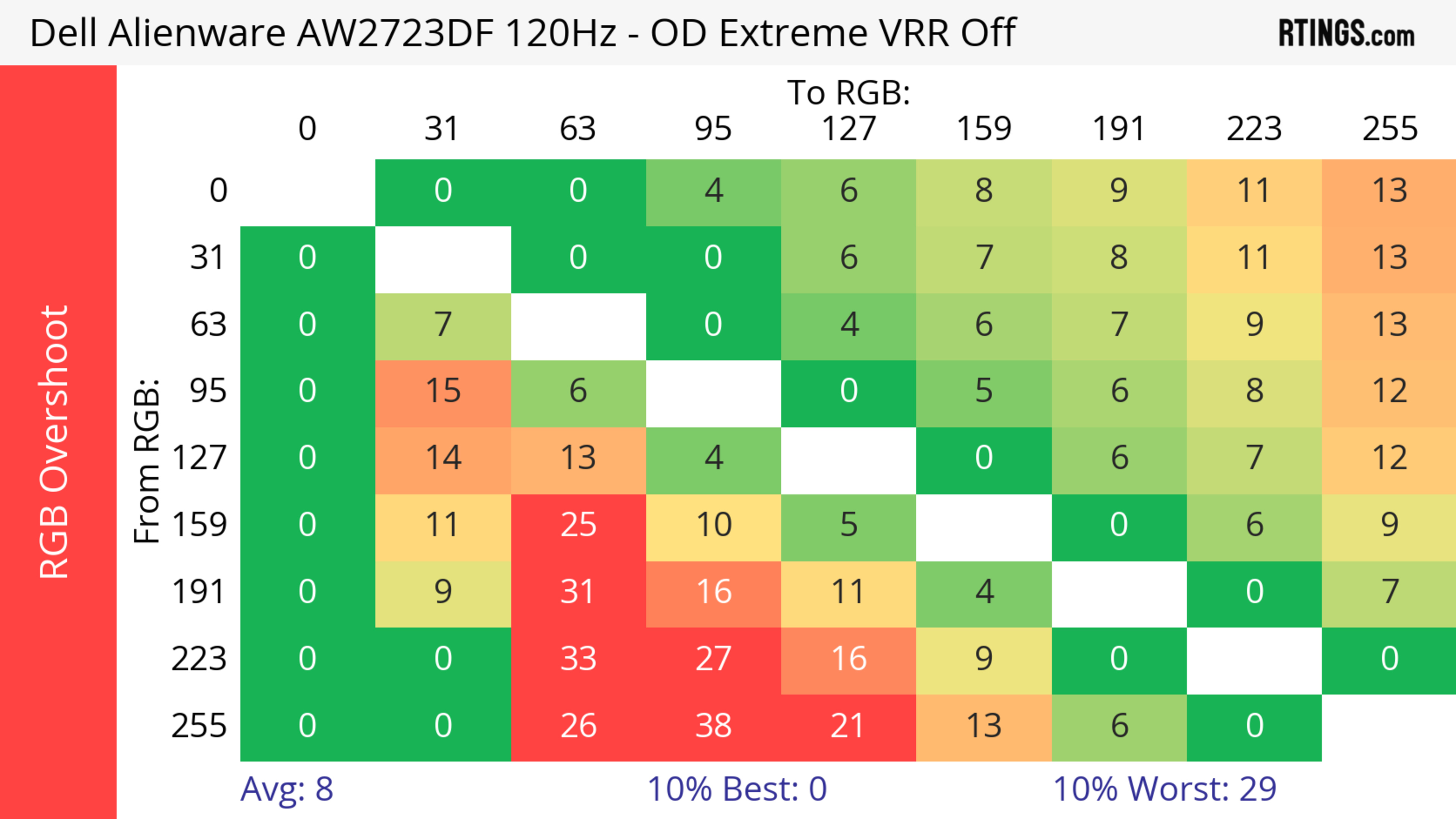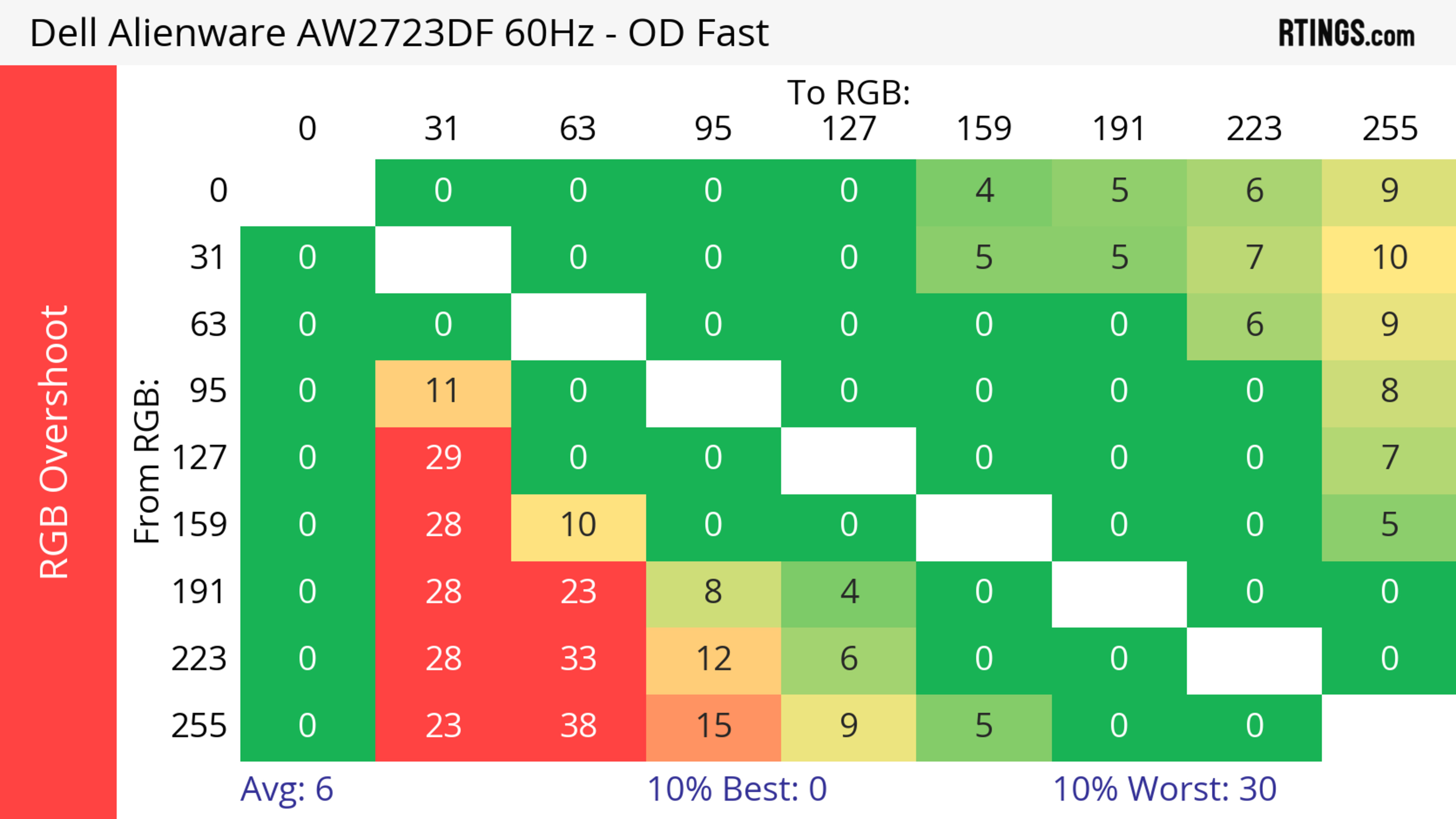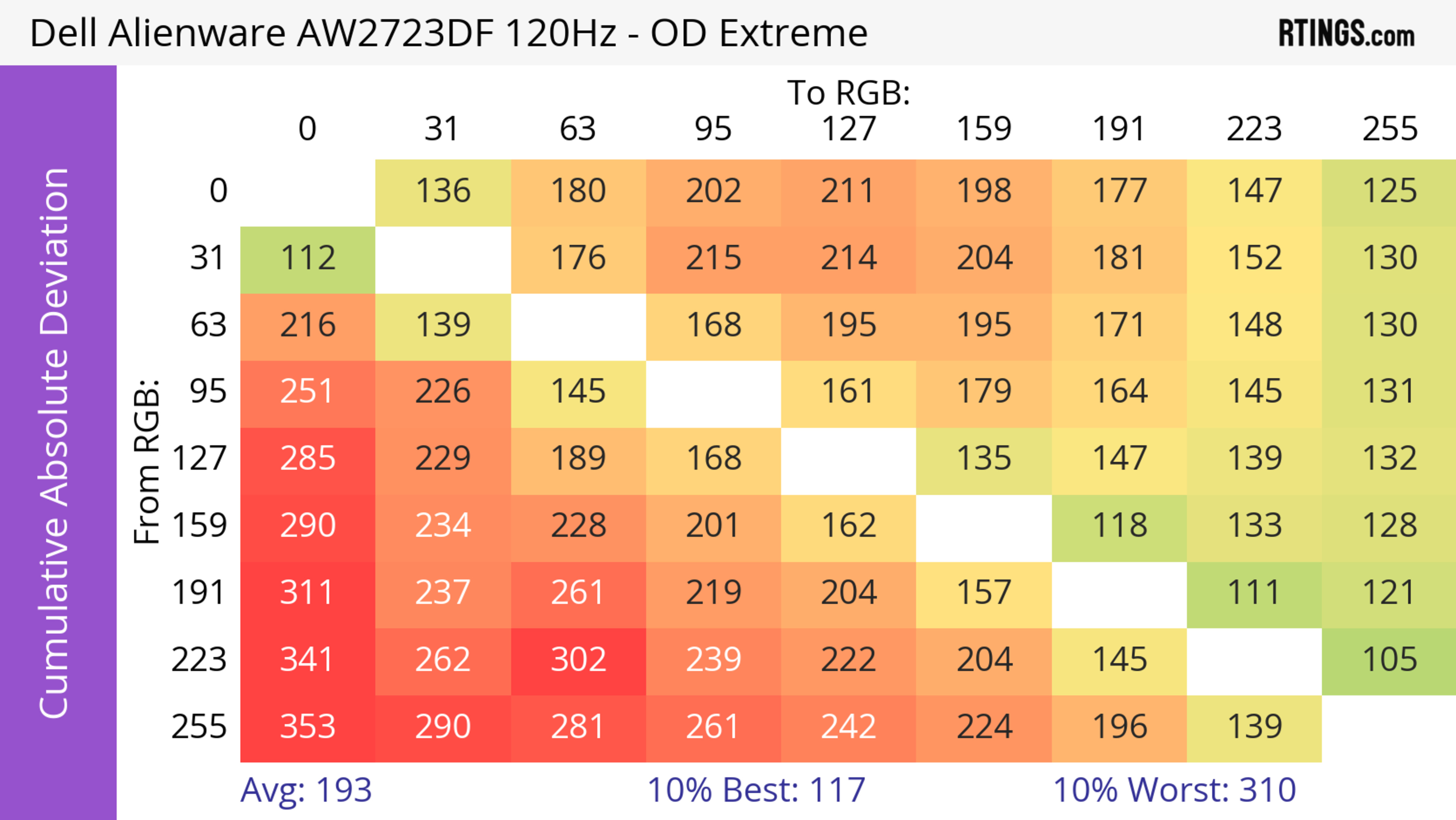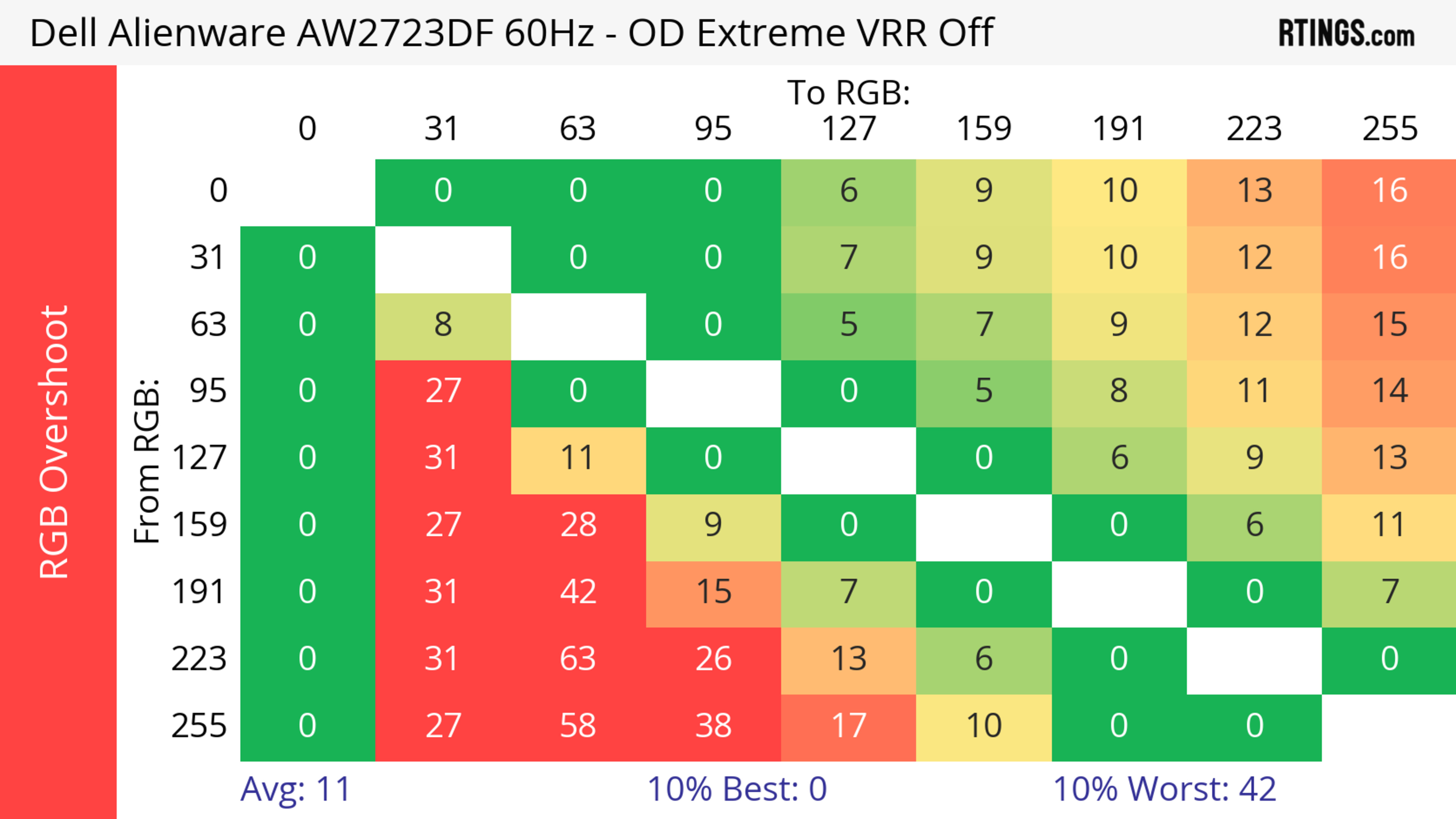 The Dell AW2723DF has a decent response time. It's consistently fast across its VRR range, but fast-moving objects still have motion blur.