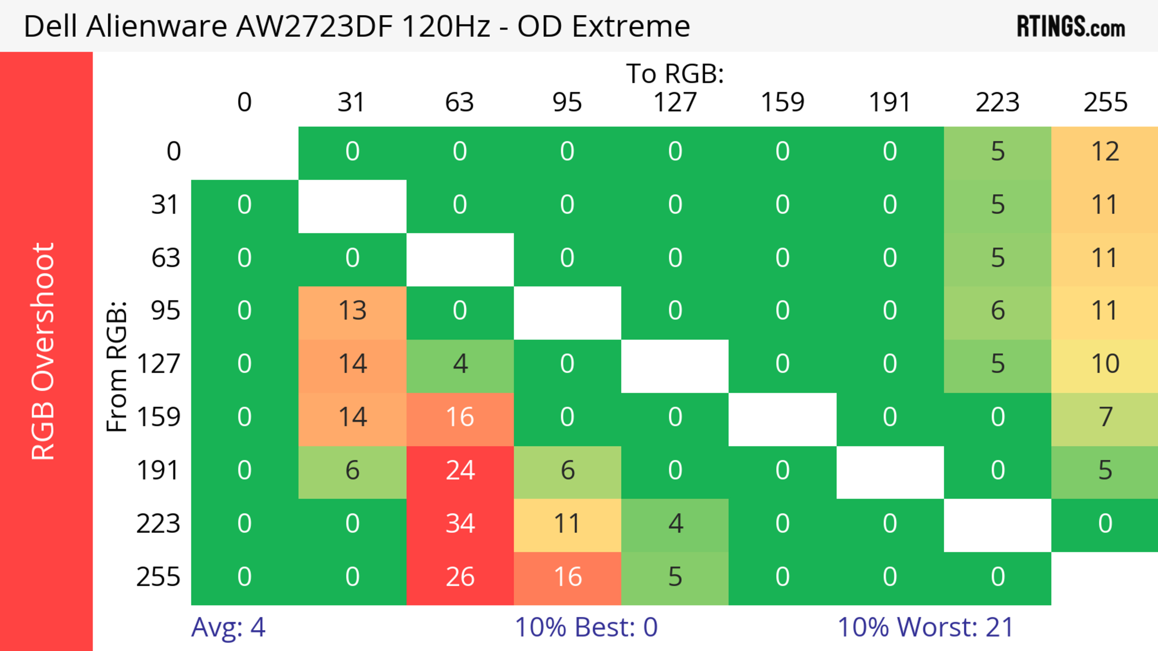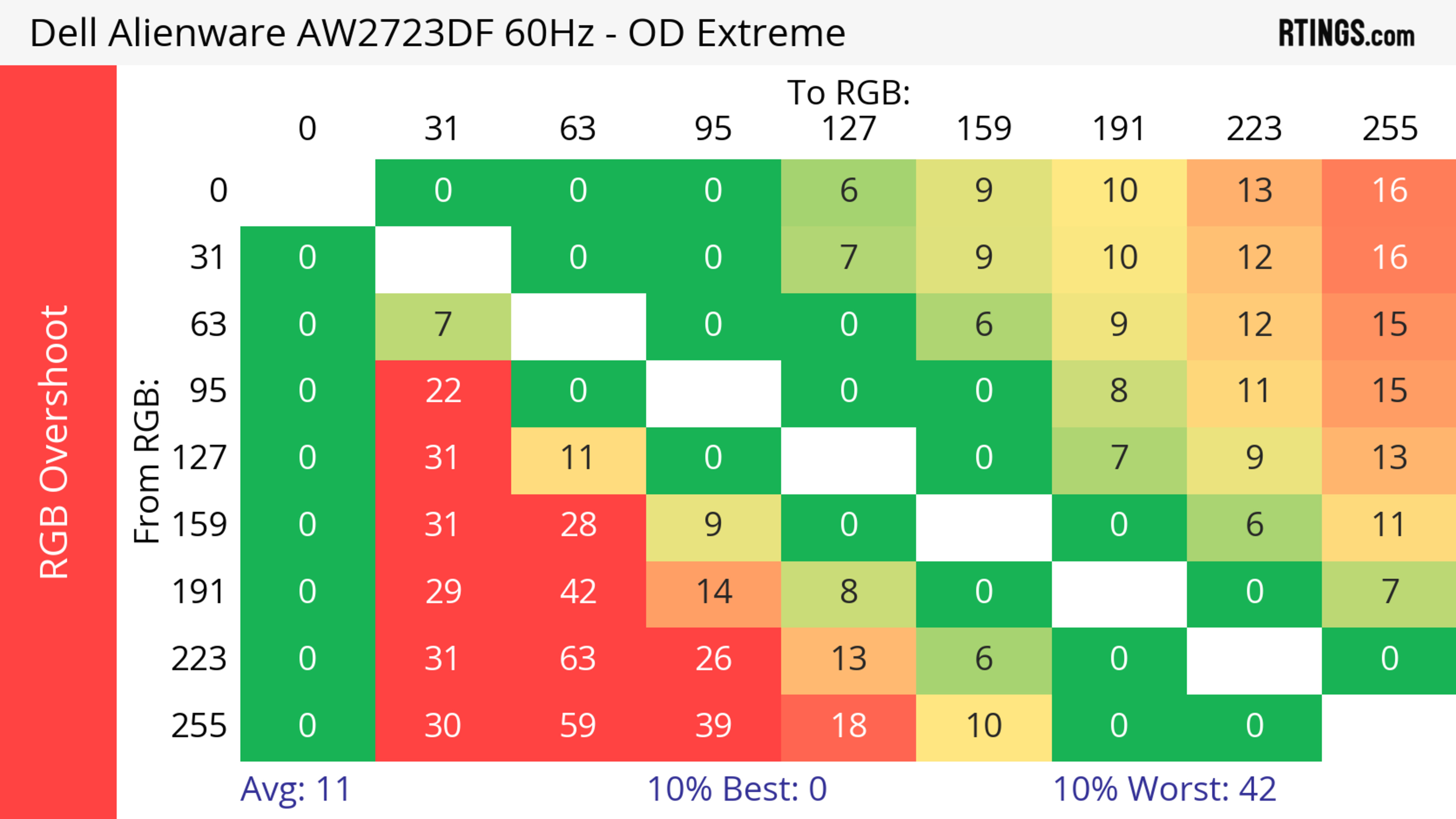 The refresh rate compliance is decent. Its response time isn't fast enough to make full transitions before the monitor draws the next frame with high refresh rates, but it's better at lower refresh rates.
