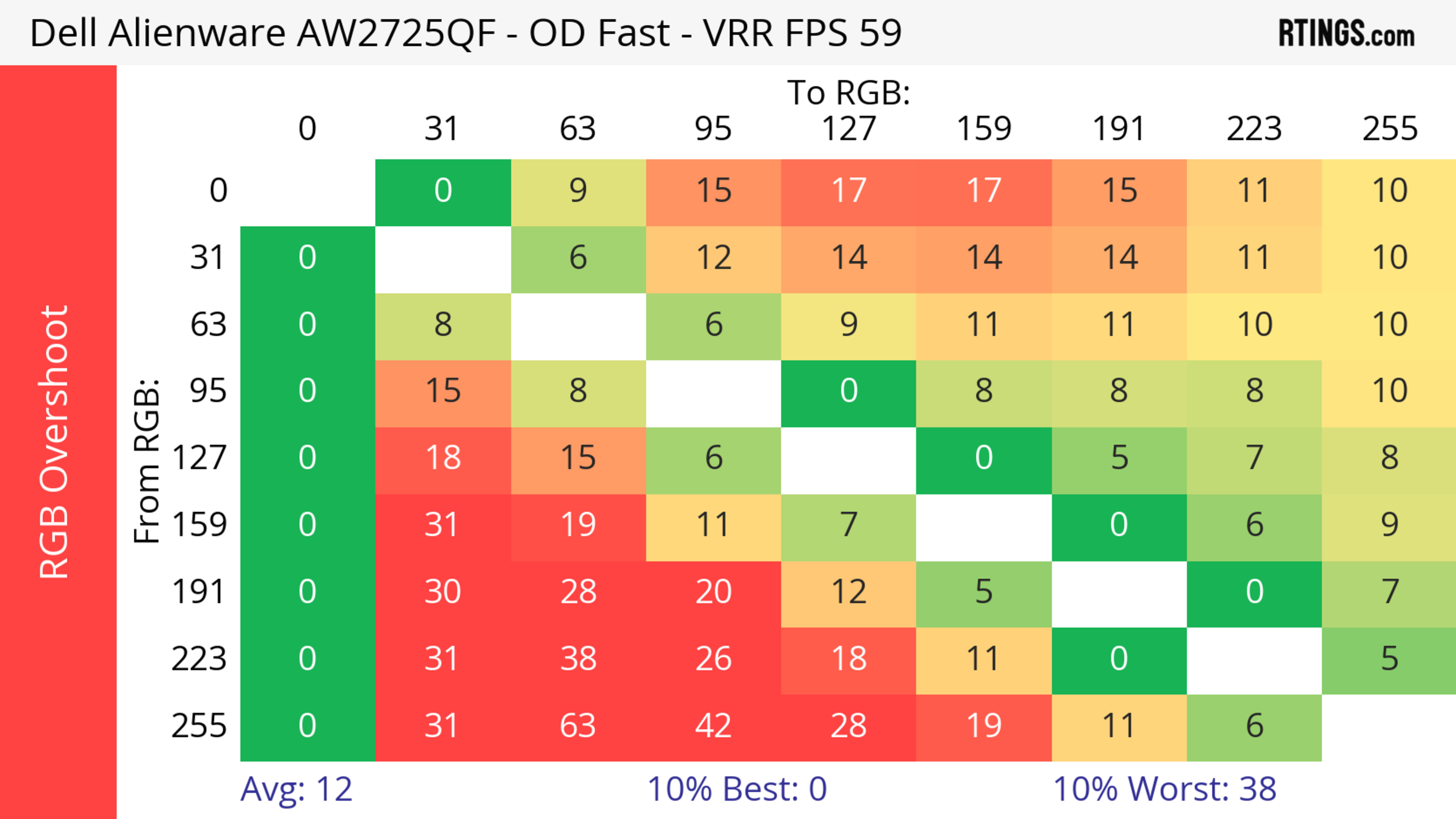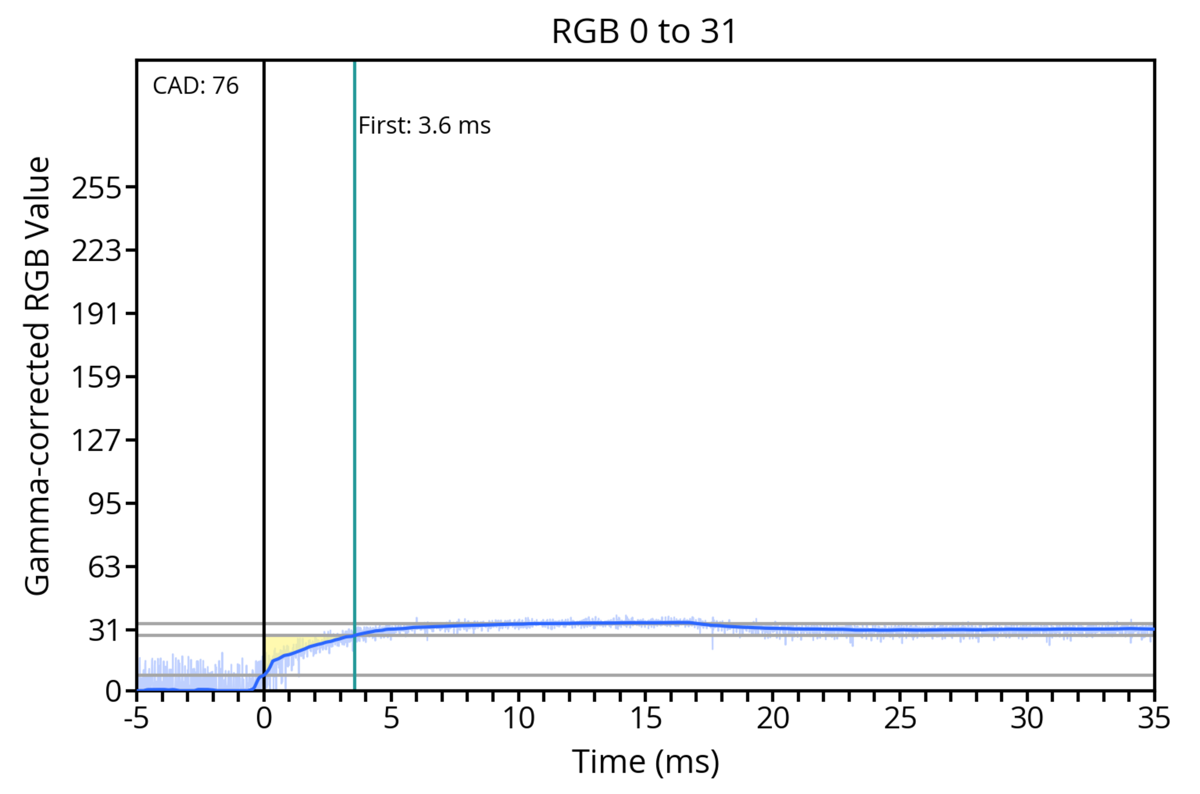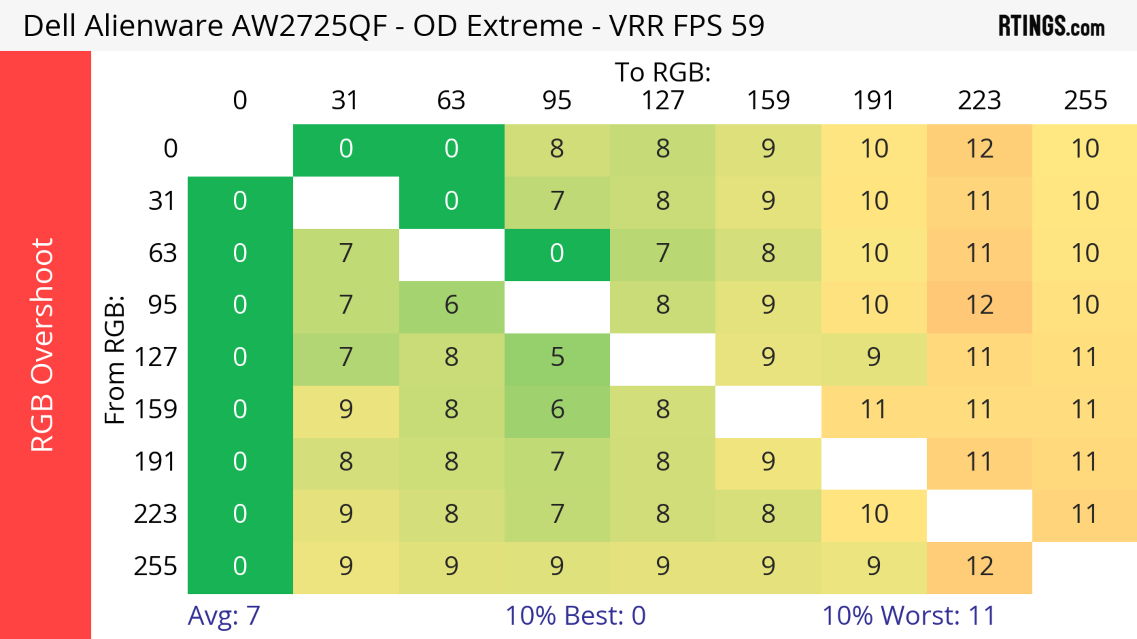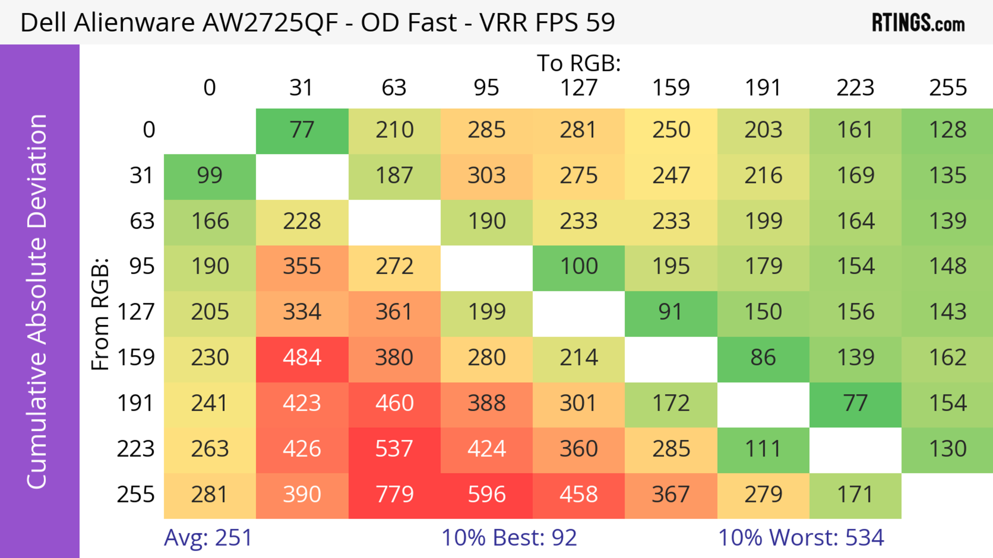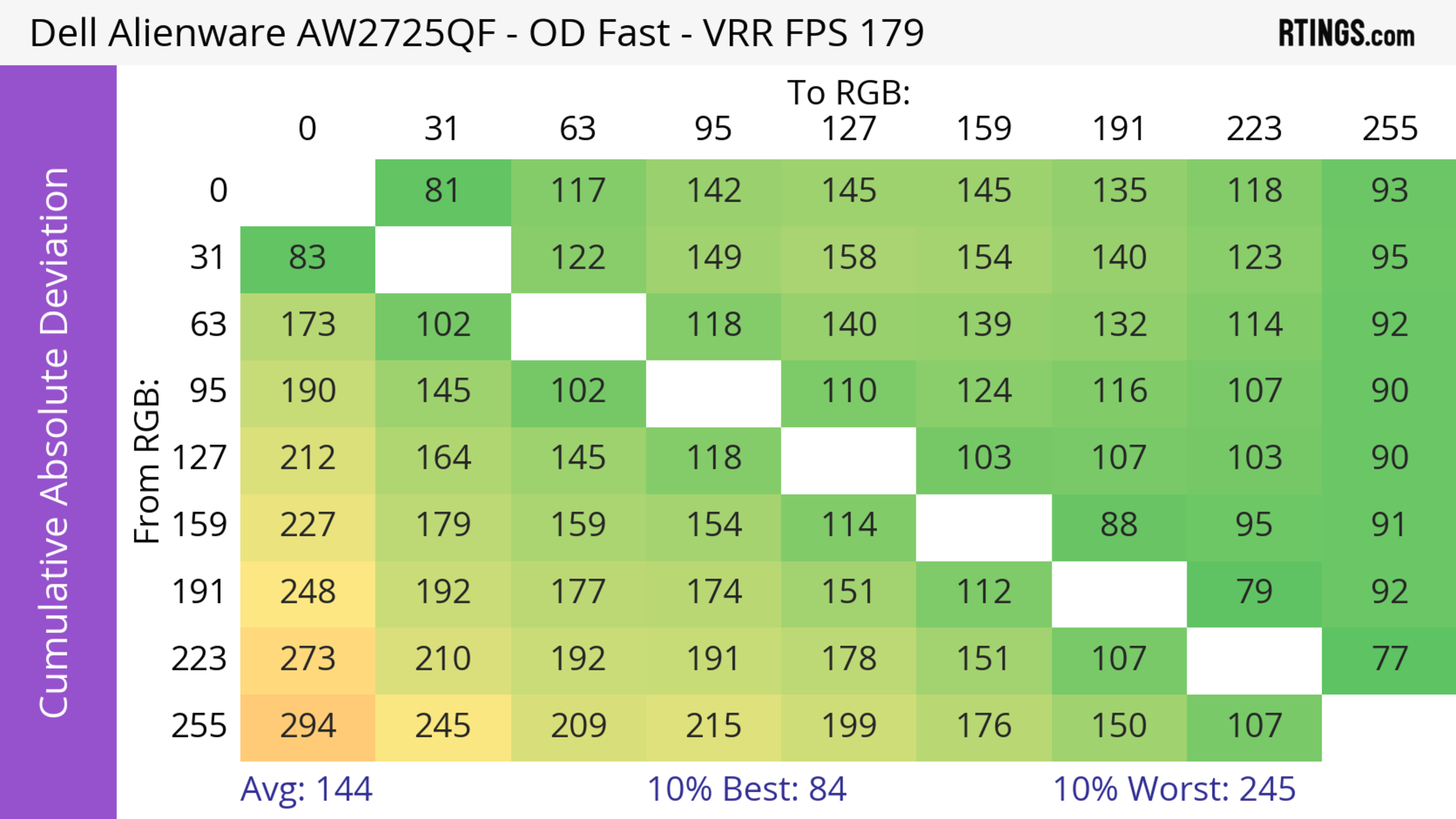 The refresh rate compliance is good. Its response time isn't fast enough to make full-color transitions before the monitor draws the next frame at high frame rates. However, it's much better at 60 fps. The 'Fast' and 'Super Fast' settings perform similarly, but 'Extreme' is much worse above 165 fps, as explained in VRR Motion Performance.