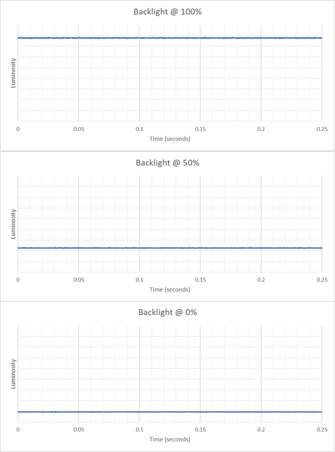 The gray uniformity is good. The edges are darker than the rest, and this is the same even with darker gray. However, there's minimal dirty screen effect in the center.