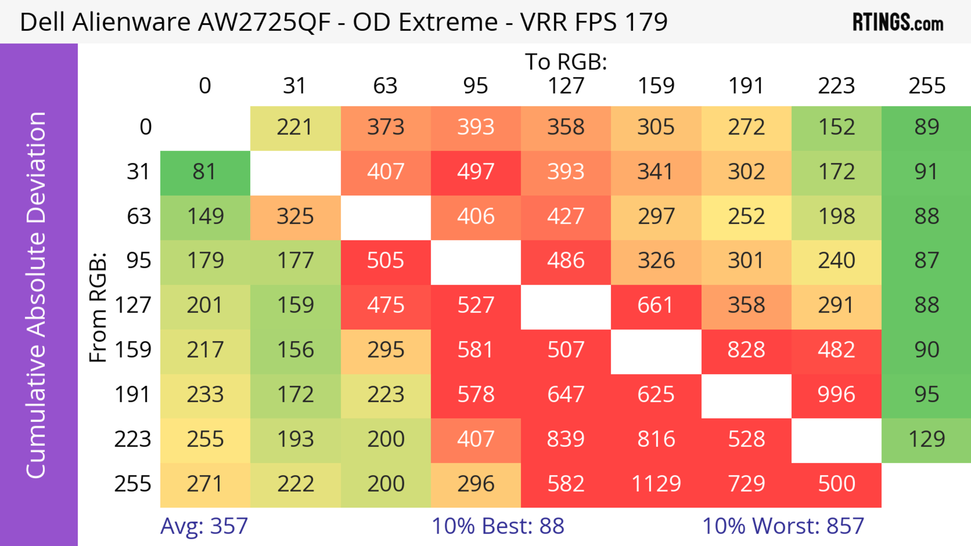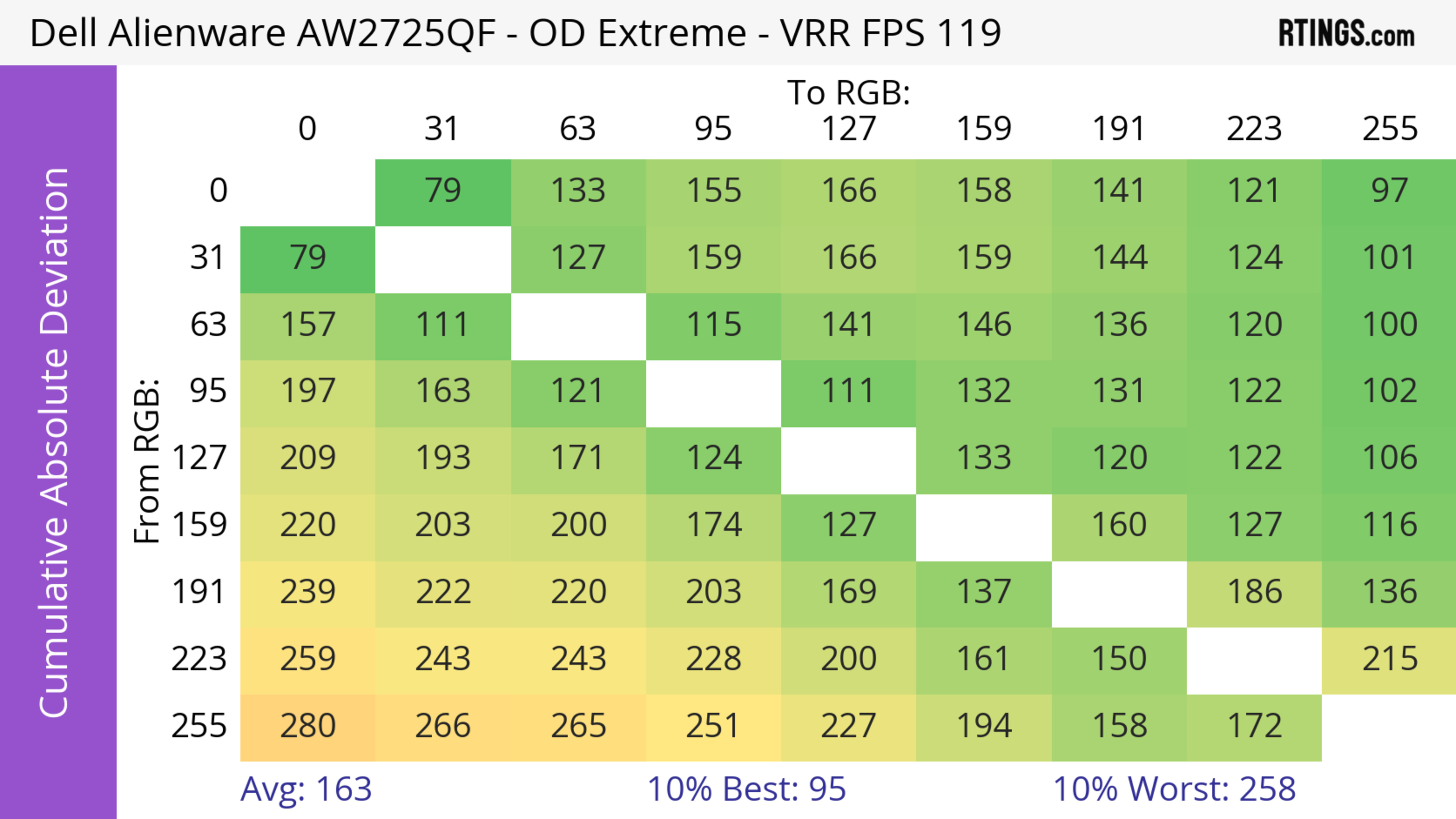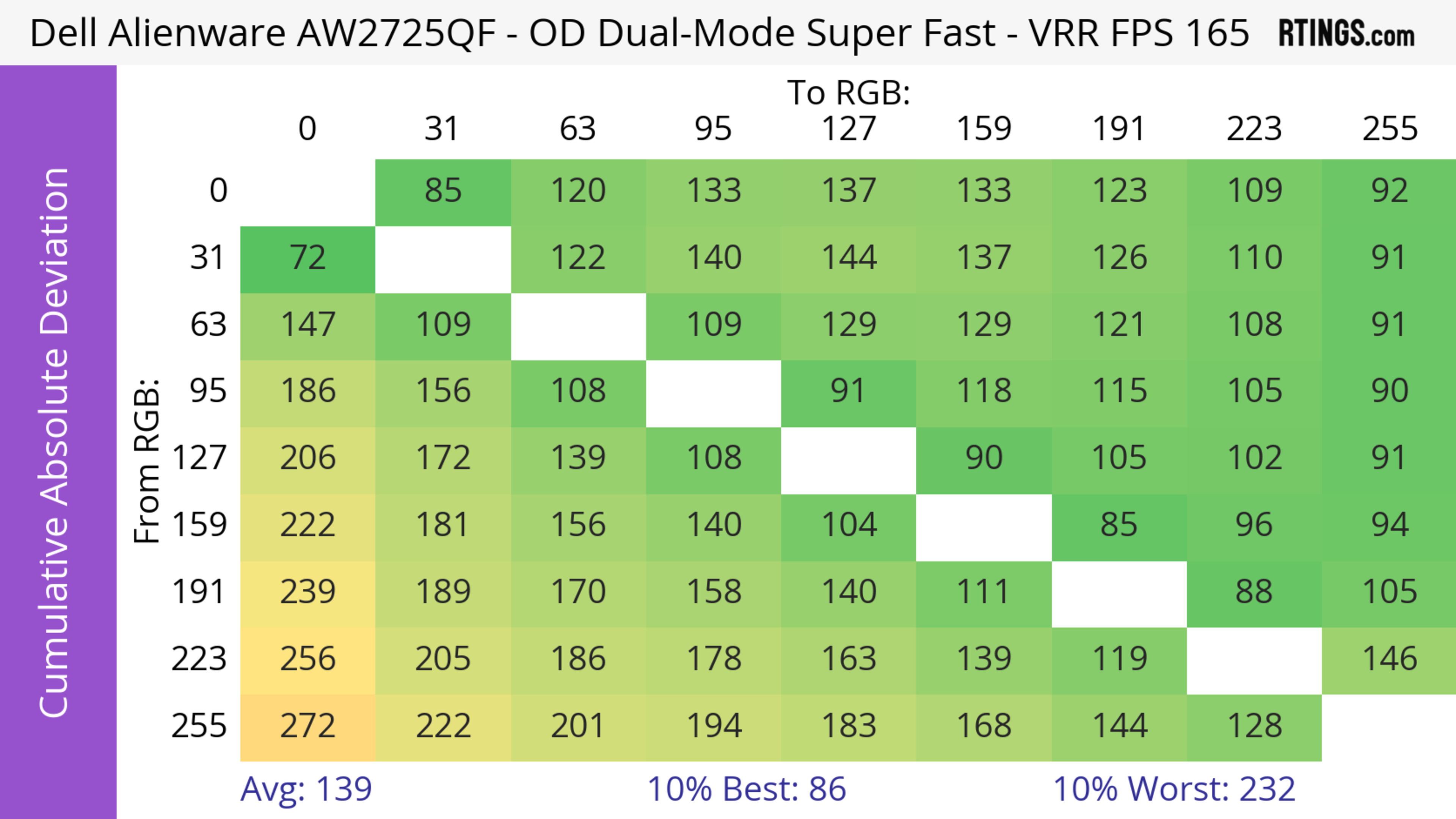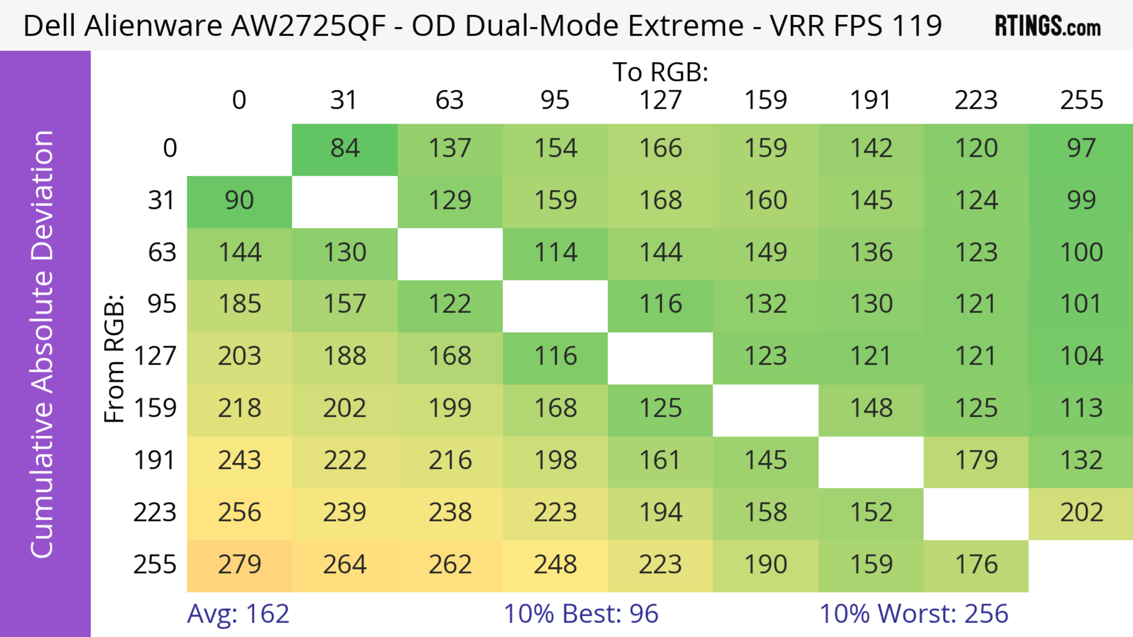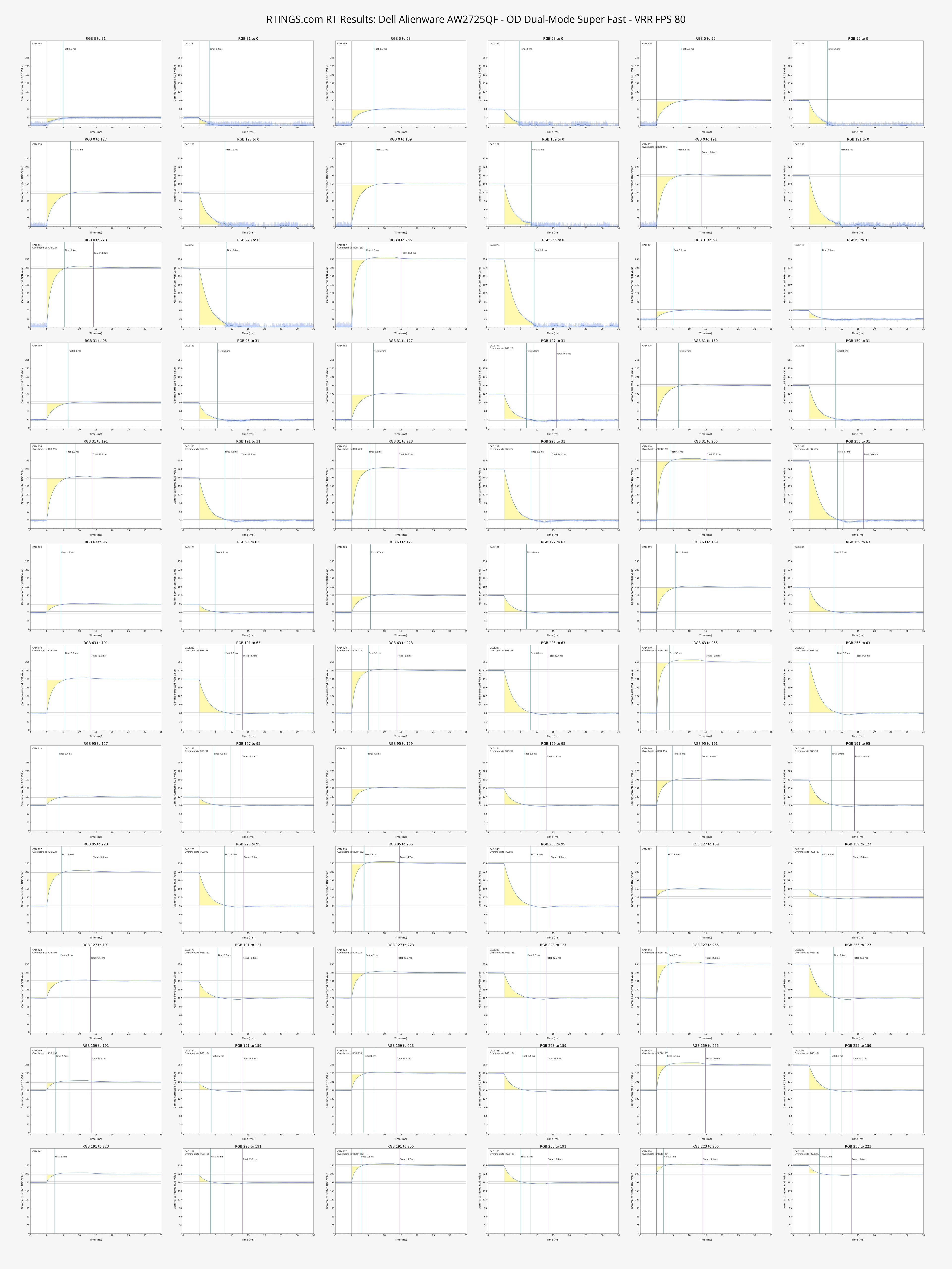 The Dell AW2725QF has great motion handling across its VRR range. The 'Super Fast' Response Time setting has the best motion handling across the VRR range, but it has some inverse ghosting as the refresh rate drops. The 'Extreme' setting has terrible motion handling in the 4k and 1080p modes above 165 fps with noticeable inverse ghosting.