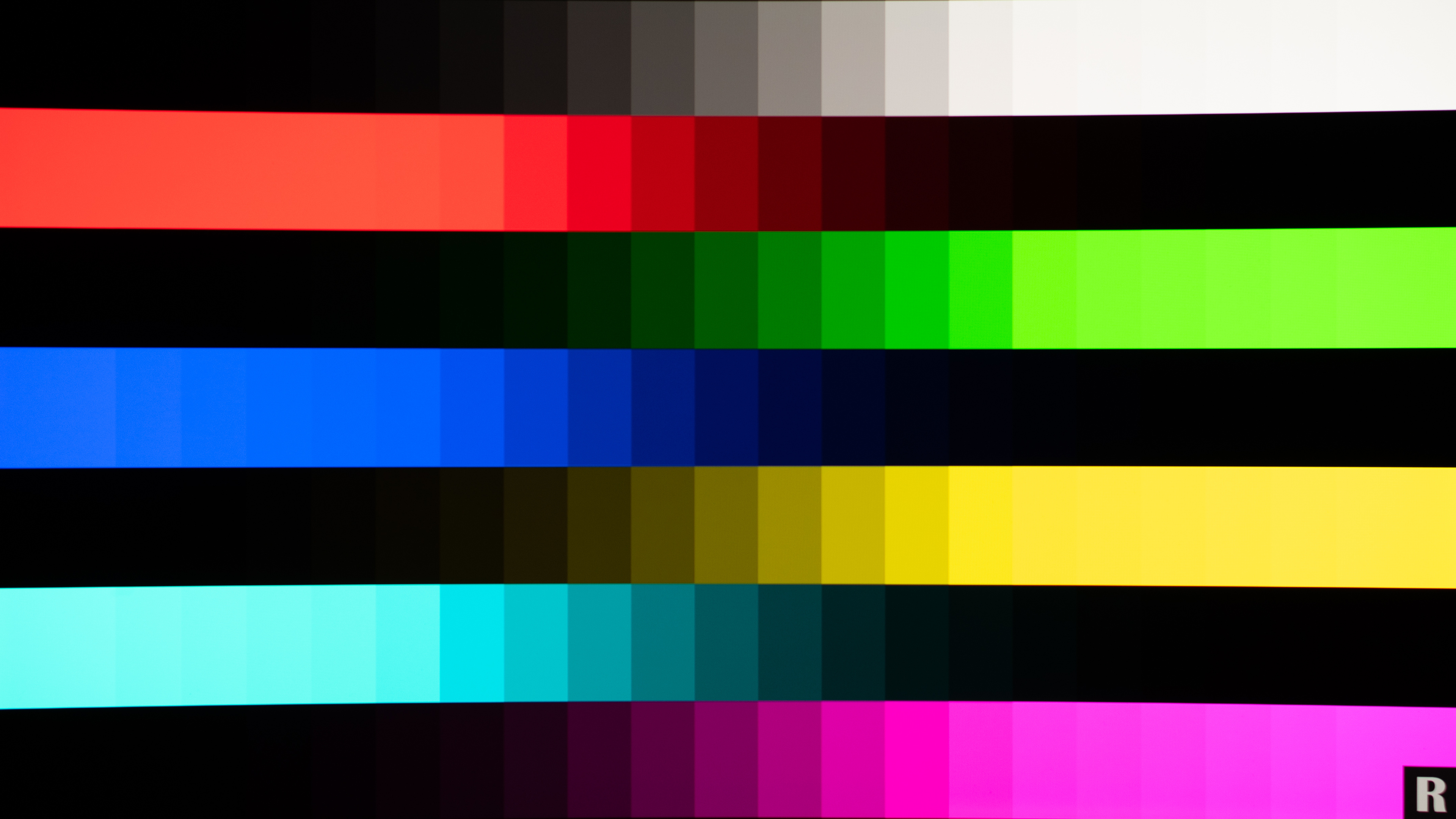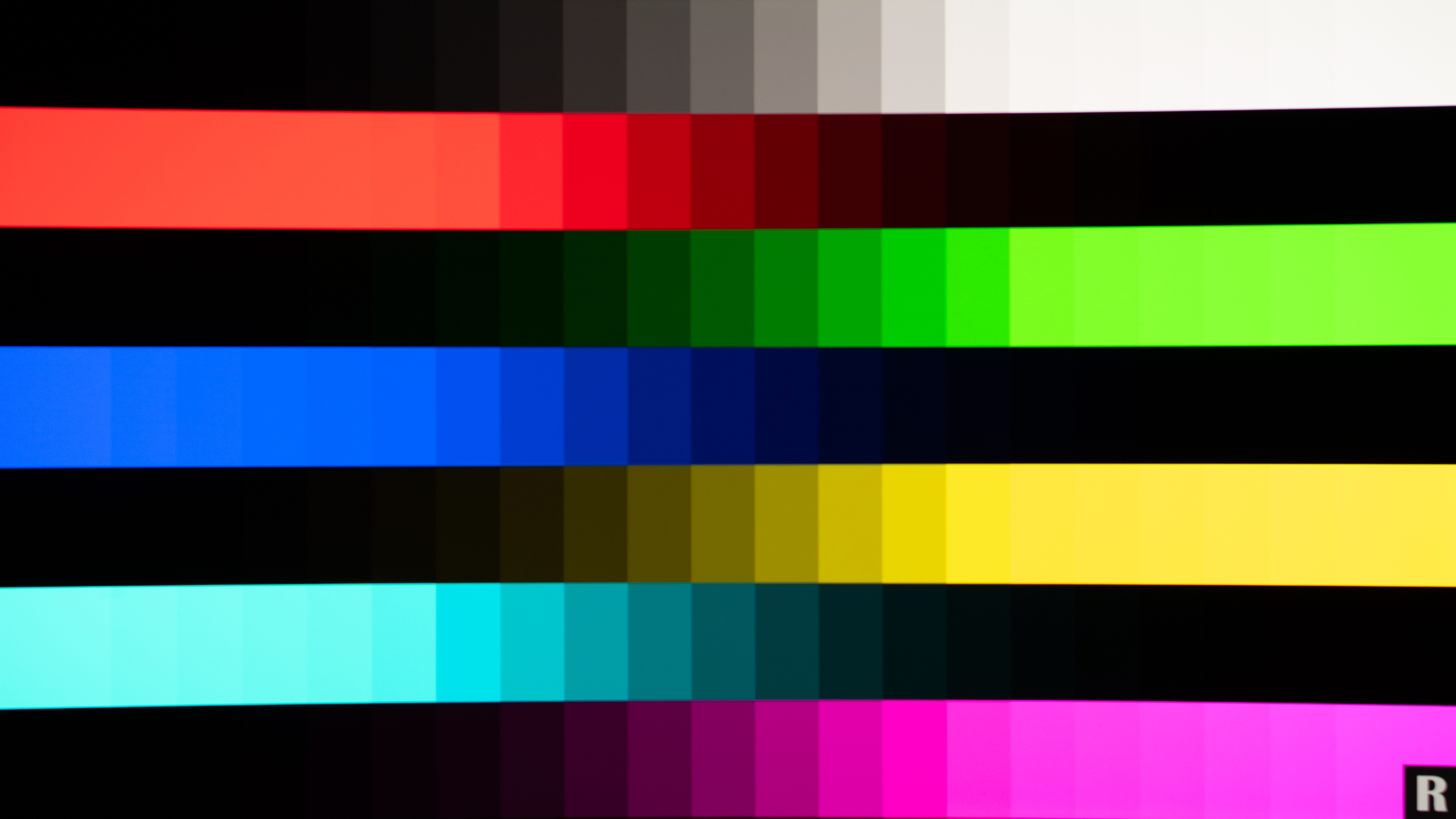 The SDR color gamut is outstanding. It displays the full range of colors in the common sRGB color space and a wide range of colors in Adobe RGB, though green is quite inaccurate.