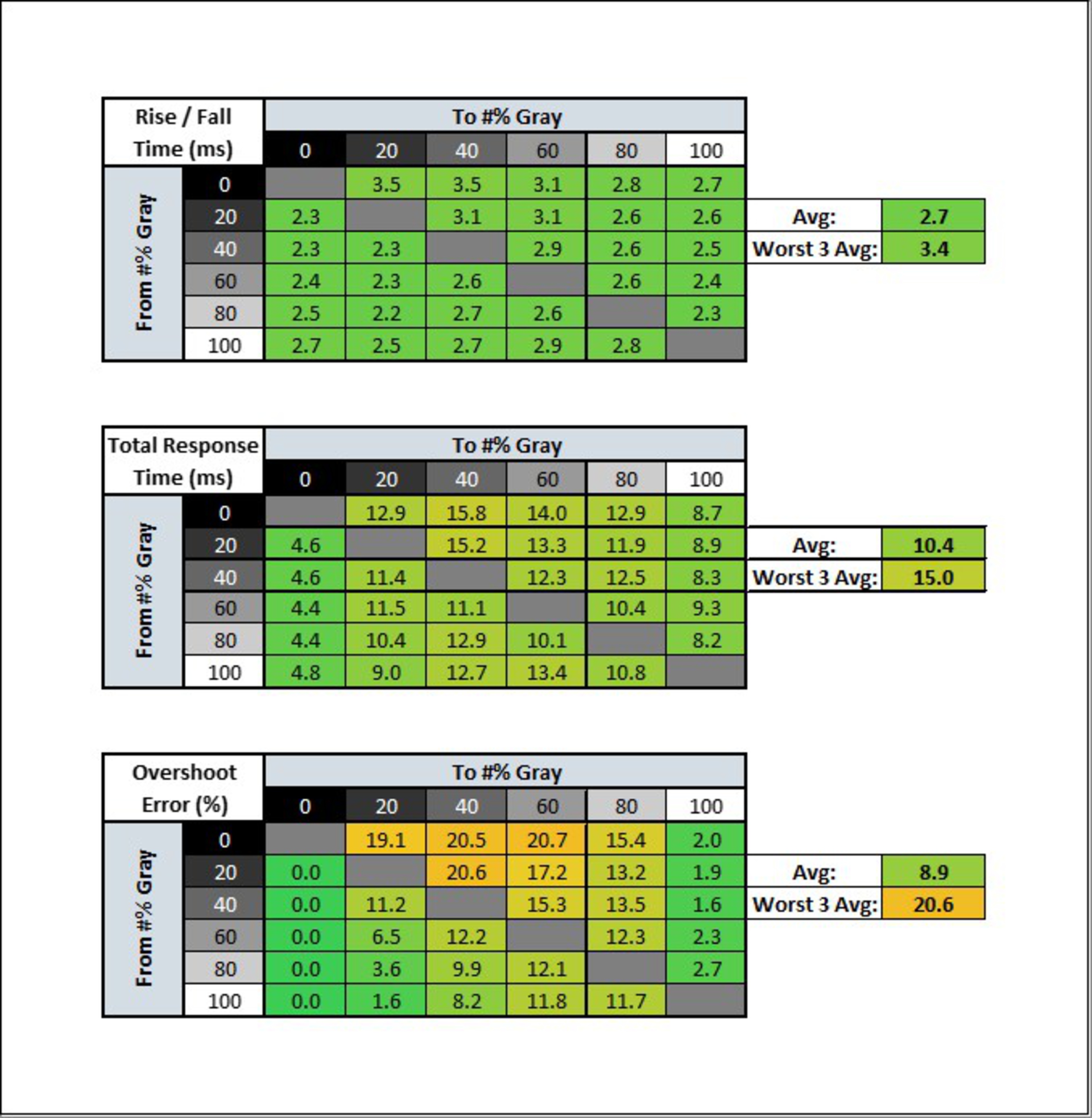 The CAD at the max refresh rate of 144Hz is good. Although the 'Super Fast' Response Time setting has more overshoot than 'Fast,' it still has lower CAD and sharper motion, but 'Extreme' has too much overshoot, causing inverse ghosting.