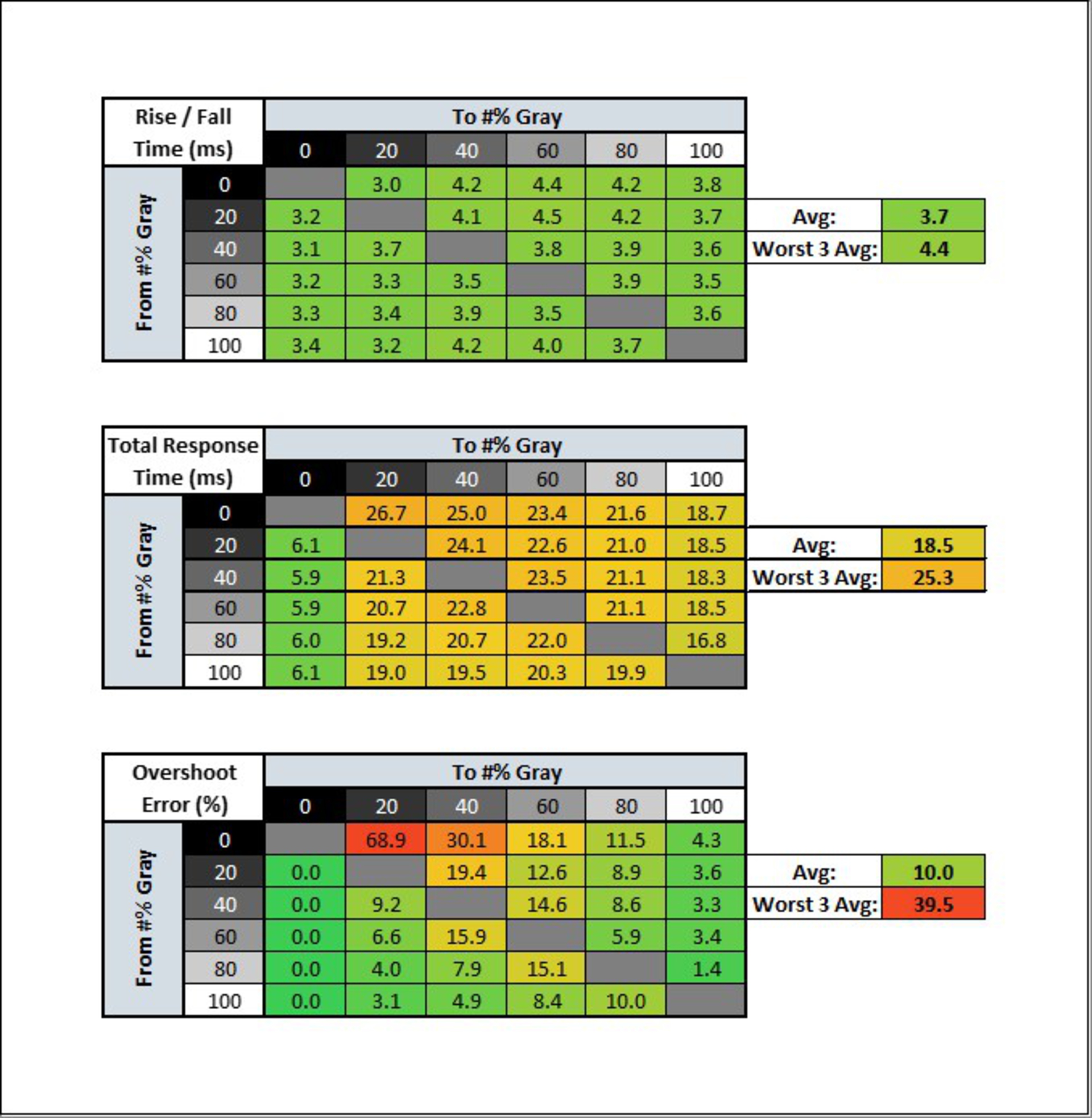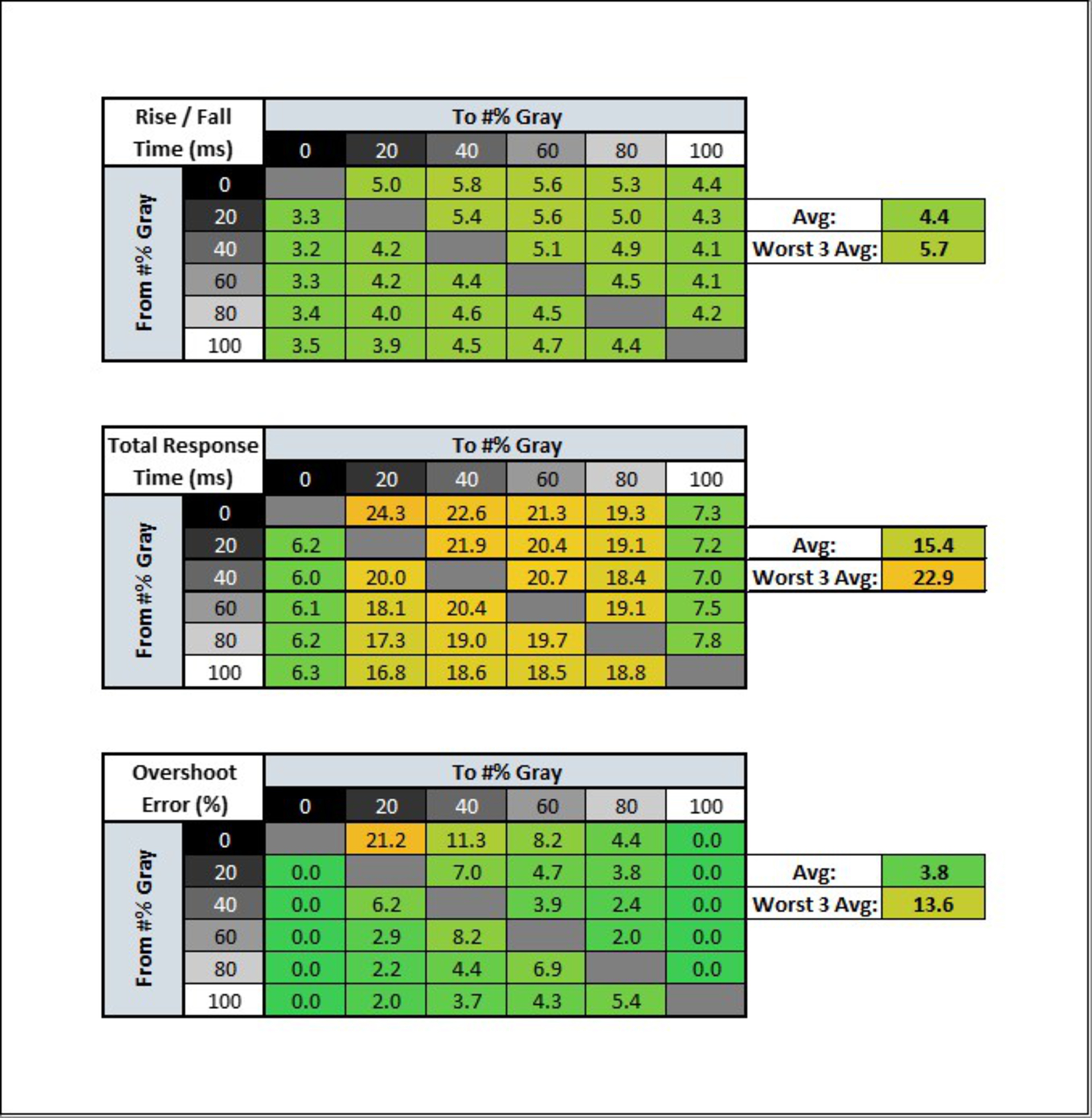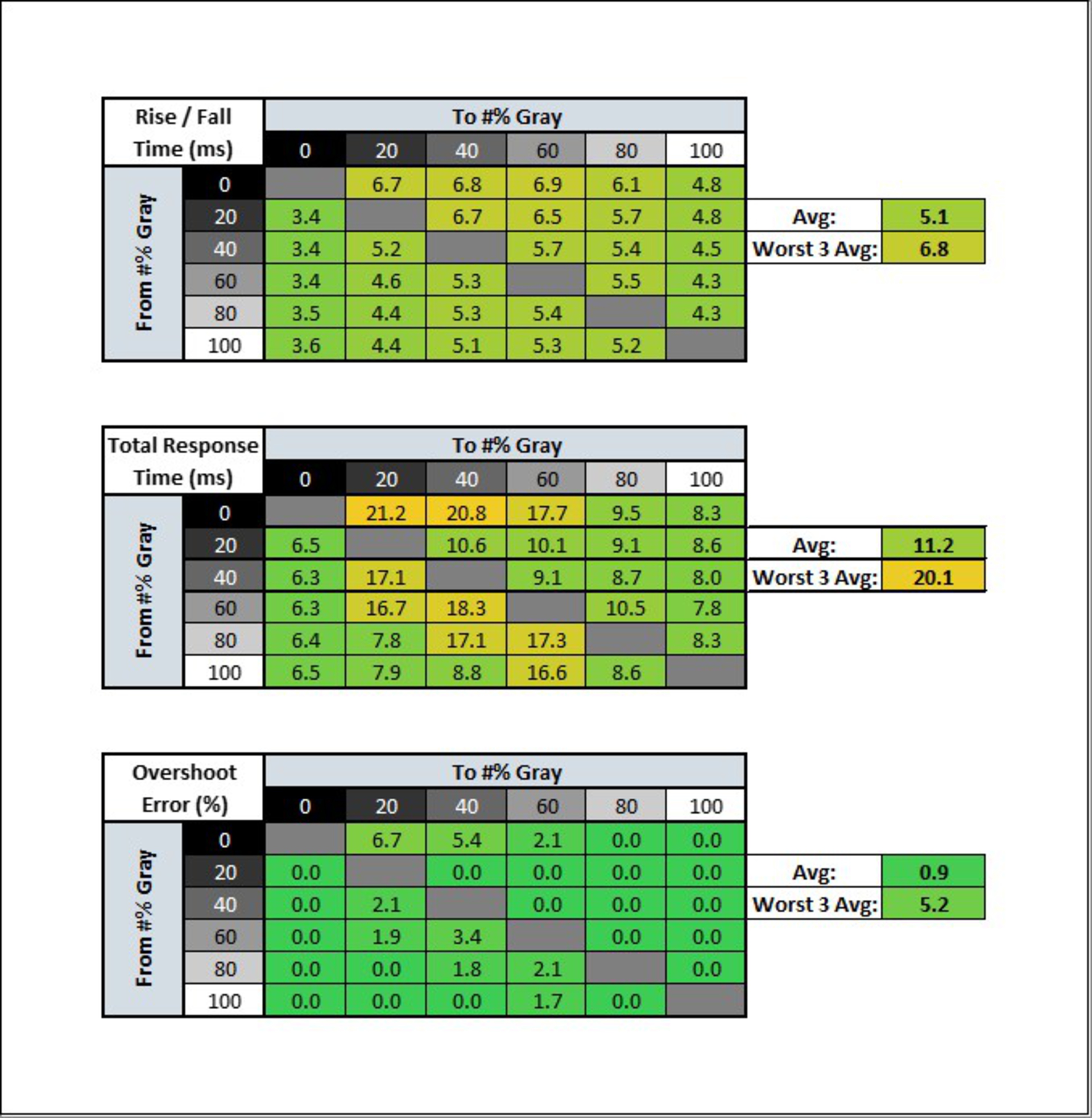 | Overdrive Setting (VRR On) | Response Time Chart | Response Time Tables | Motion Blur Photo |