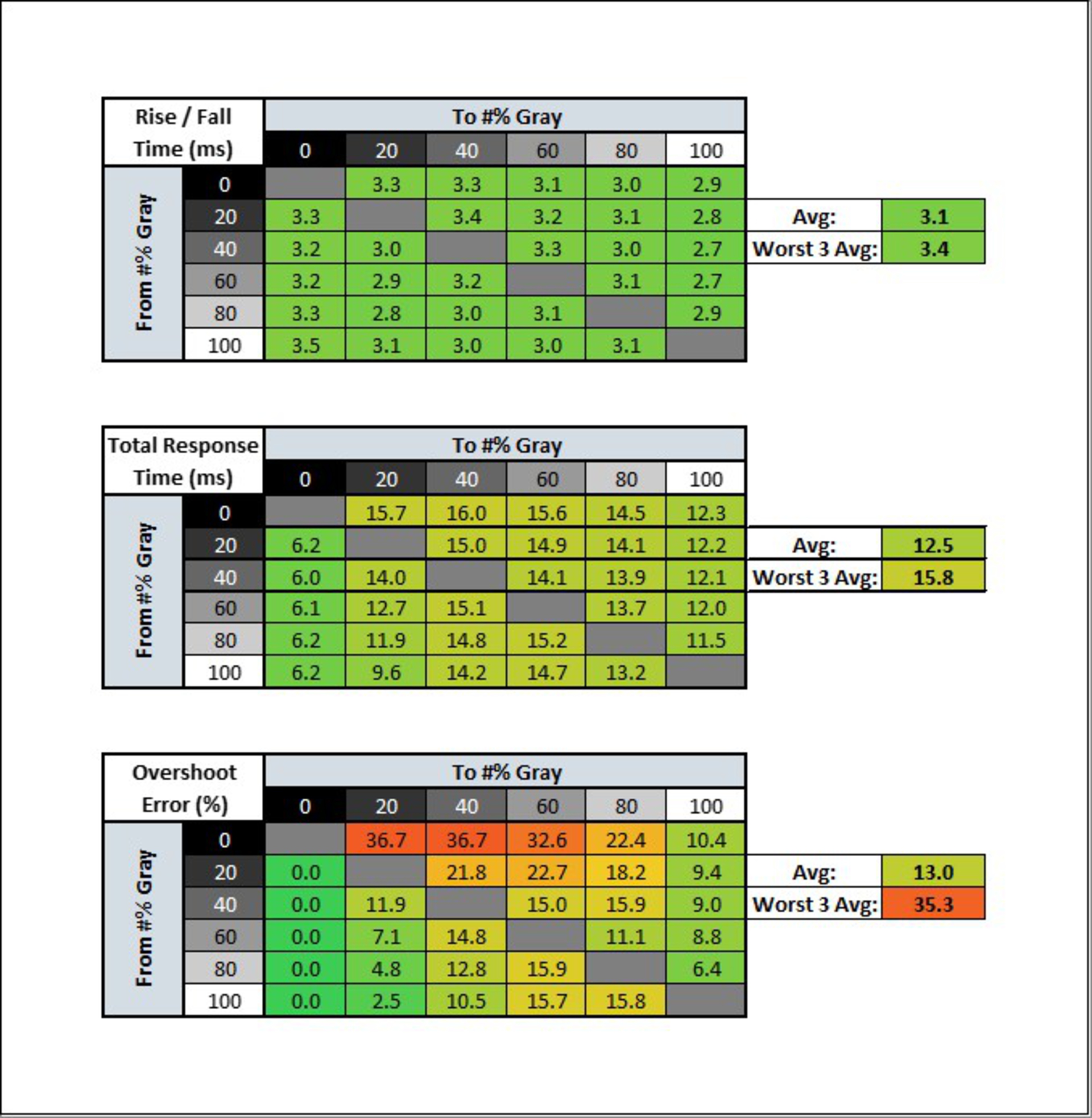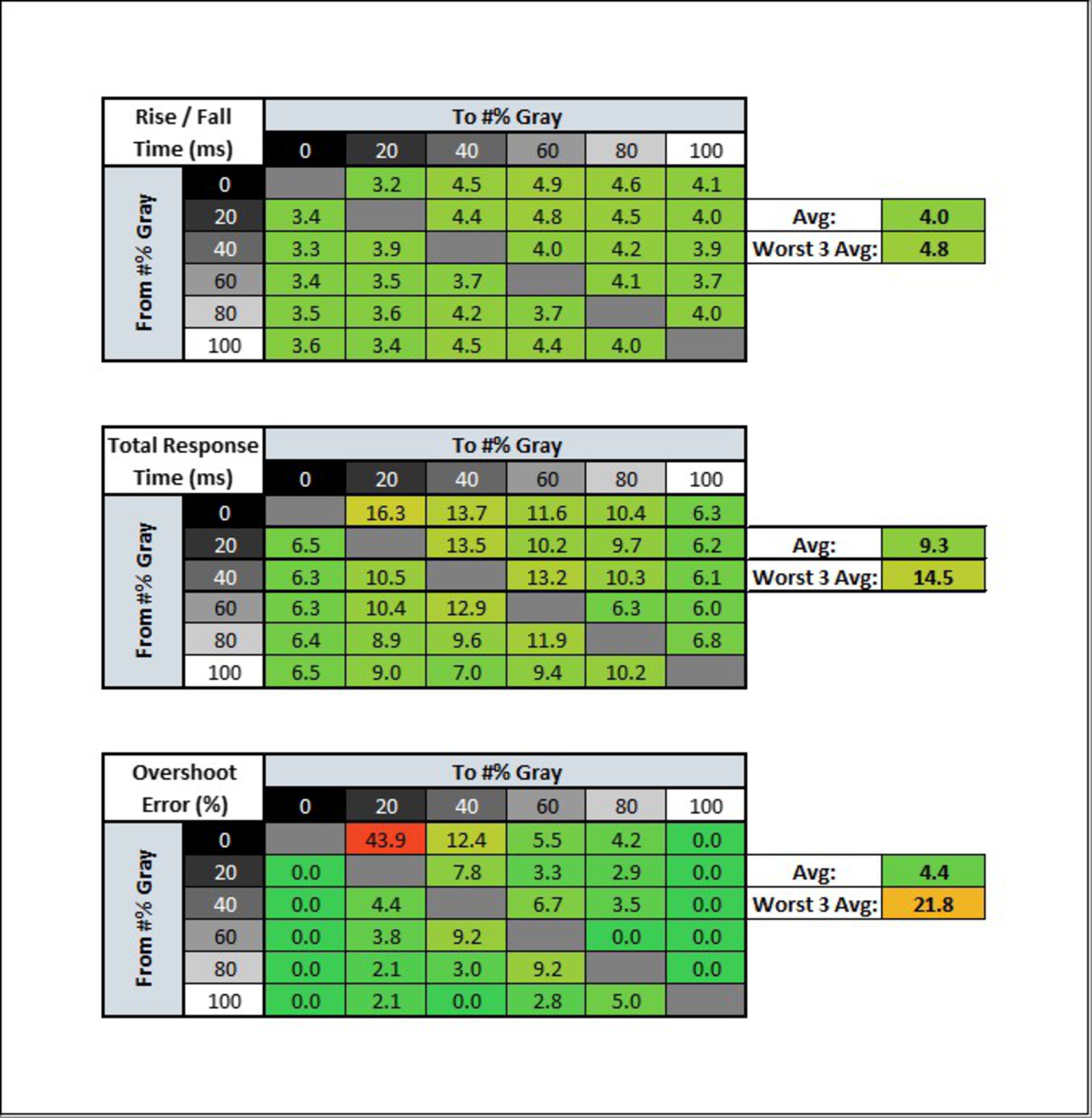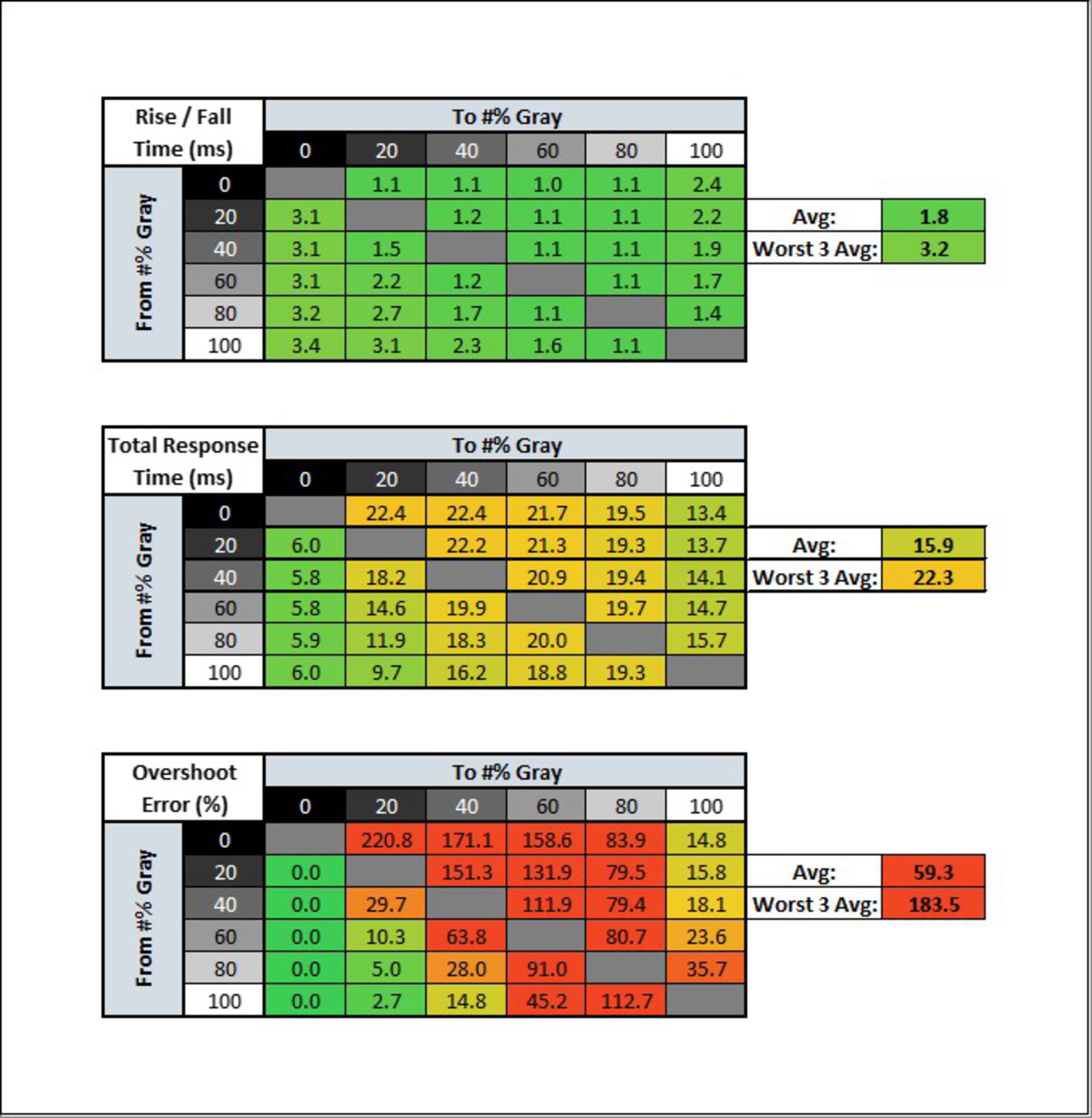 | Overdrive Setting (VRR On) | Response Time Chart | Response Time Tables | Motion Blur Photo |