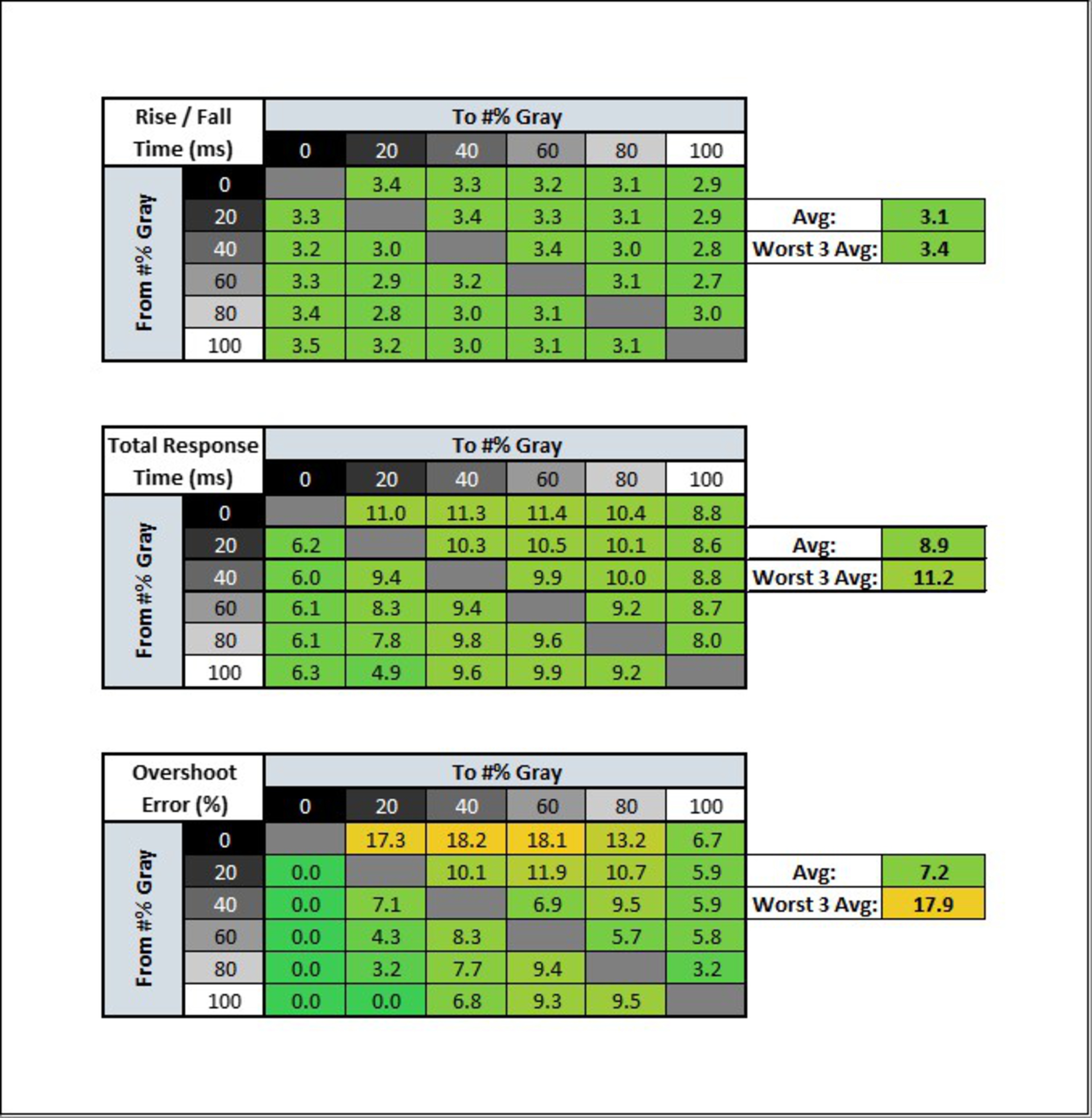 | Overdrive Setting (VRR Off) | Response Time Chart | Response Time Tables | Motion Blur Photo |