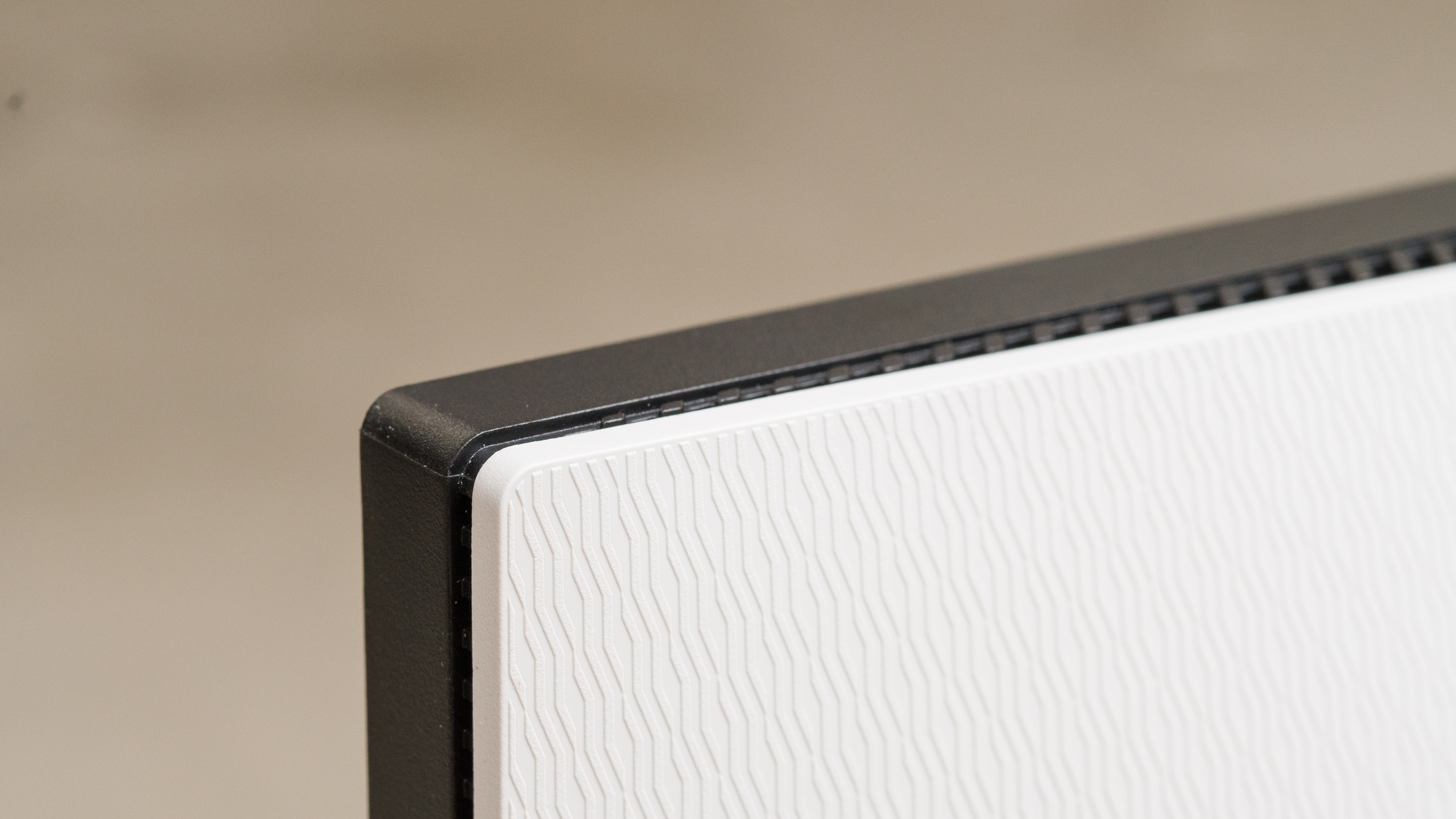 The ergonomics are fantastic, making it easy to adjust the monitor to your preferred position. The back of the monitor features textured white plastic. You can easily remove the stand from the screen if you choose to VESA mount it. The hole in the stand also offers basic cable management.