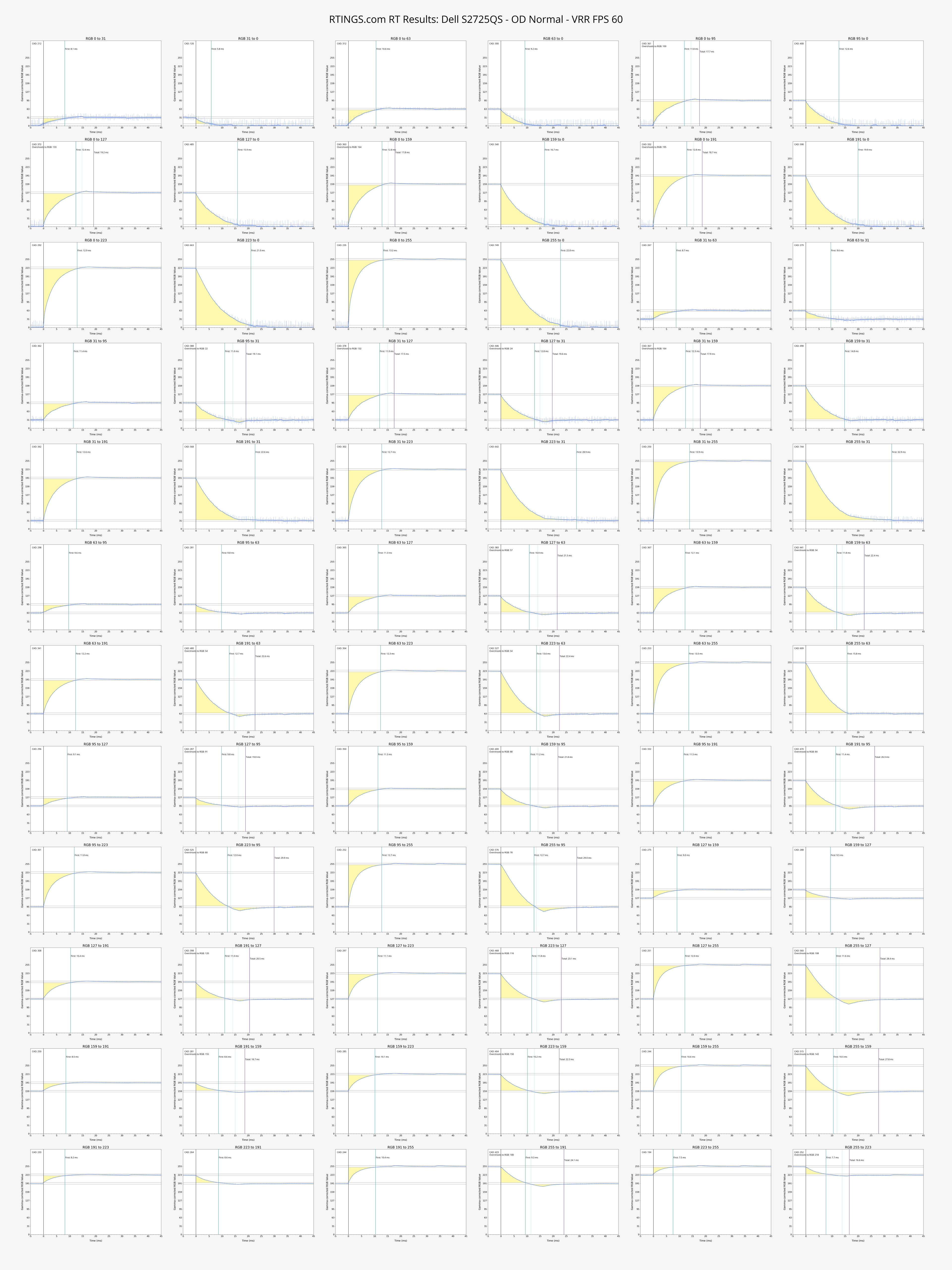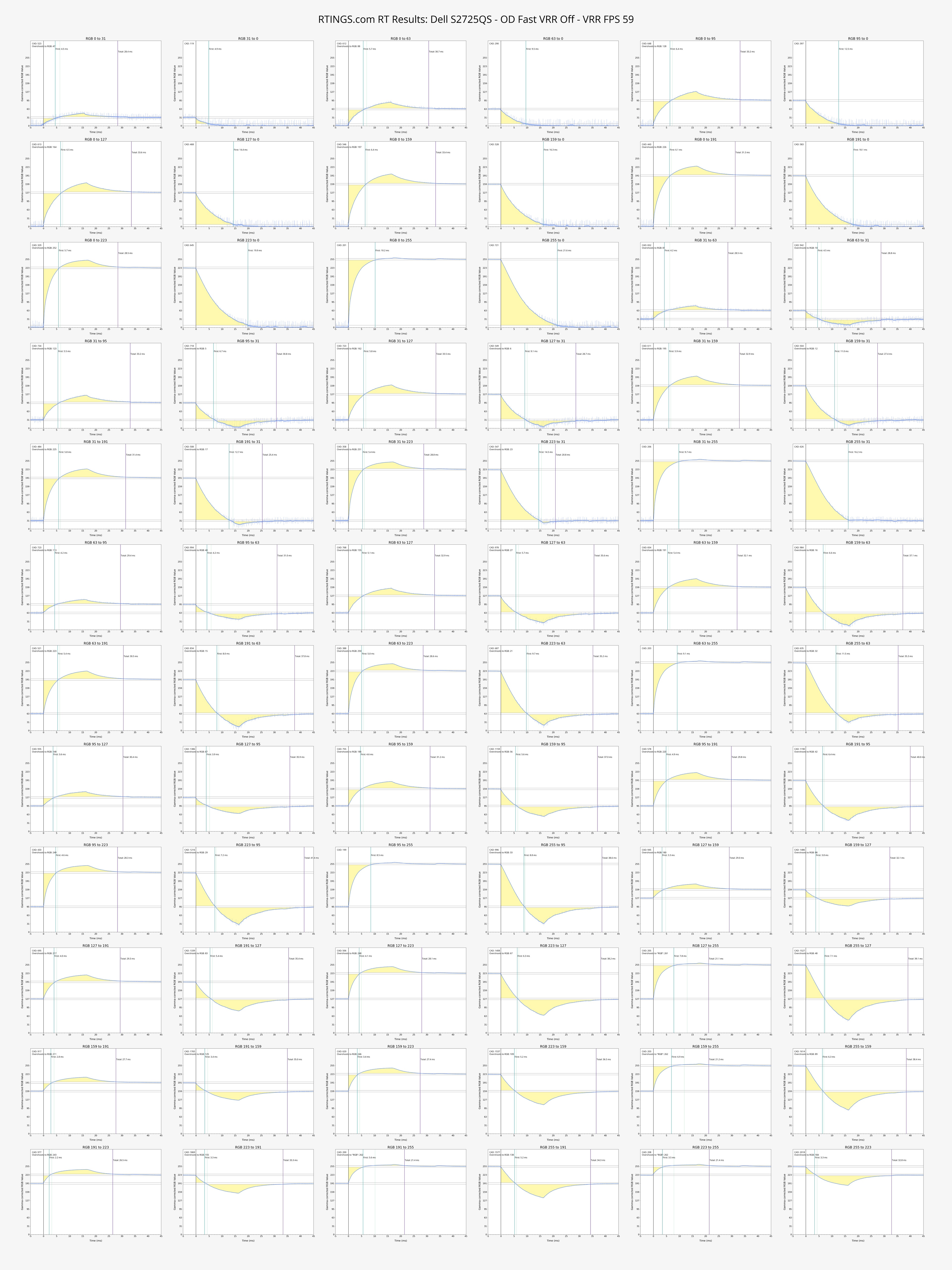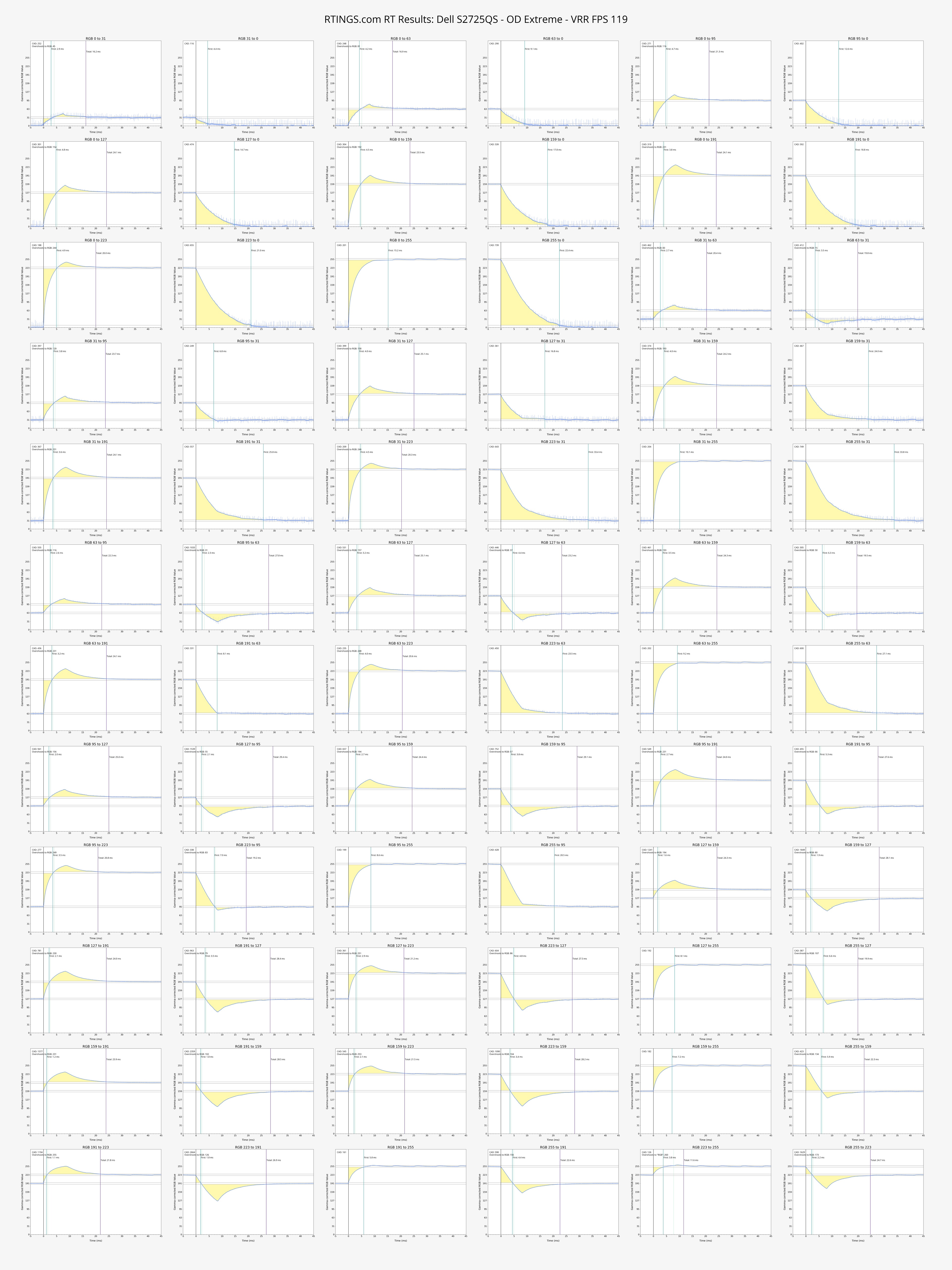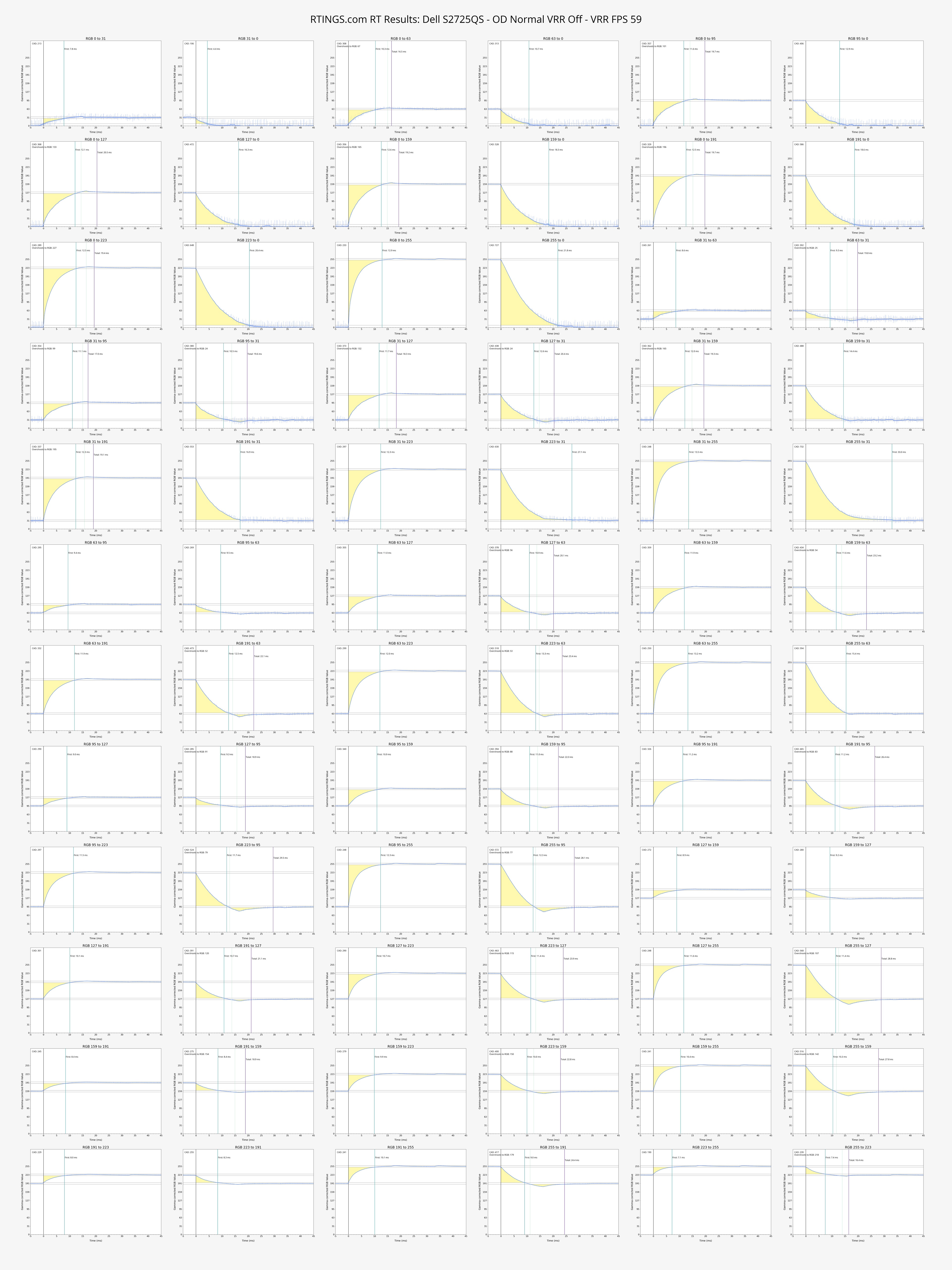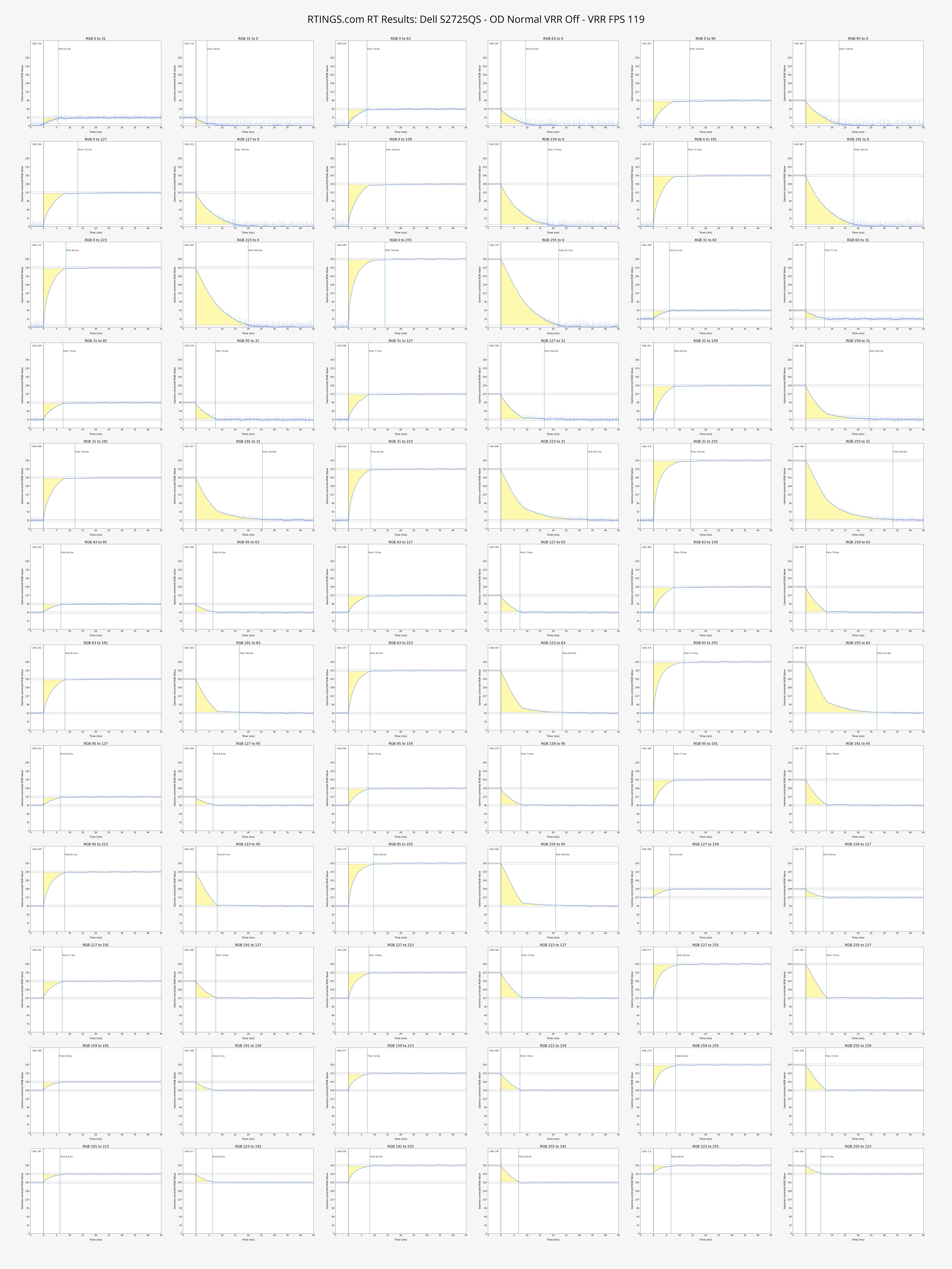 The Dell S2725QS has poor motion handling across its VRR range. There's noticeable and distracting blur with fast-moving objects at any refresh rate. Although the 'Normal' Response Time setting is the most consistent, it still performs poorly, and the other overdrive settings are worse. The 'Fast' and 'Extreme' settings have such high CAD that they pass the limits of the chart, which you can see in an alternative graph.