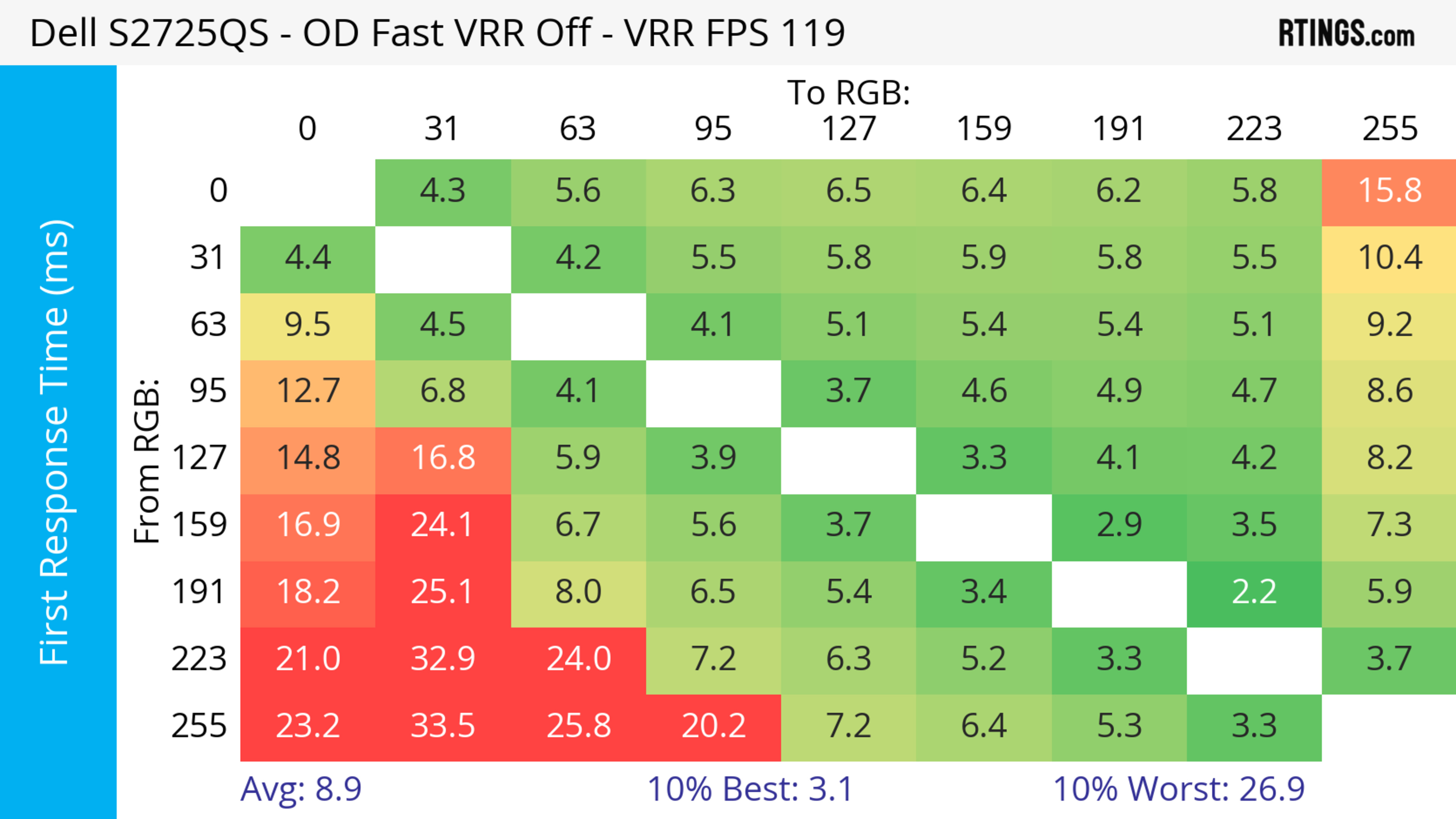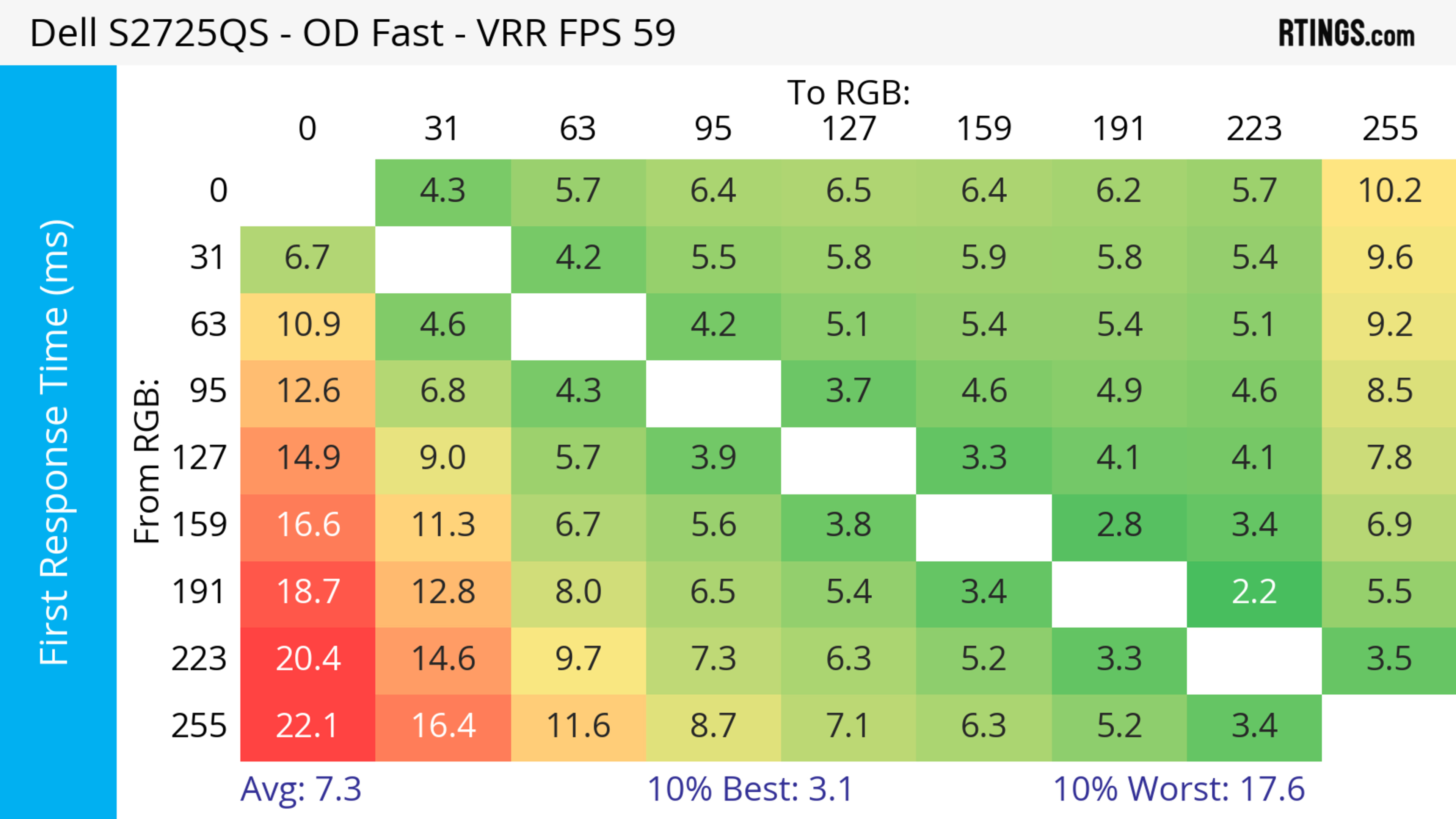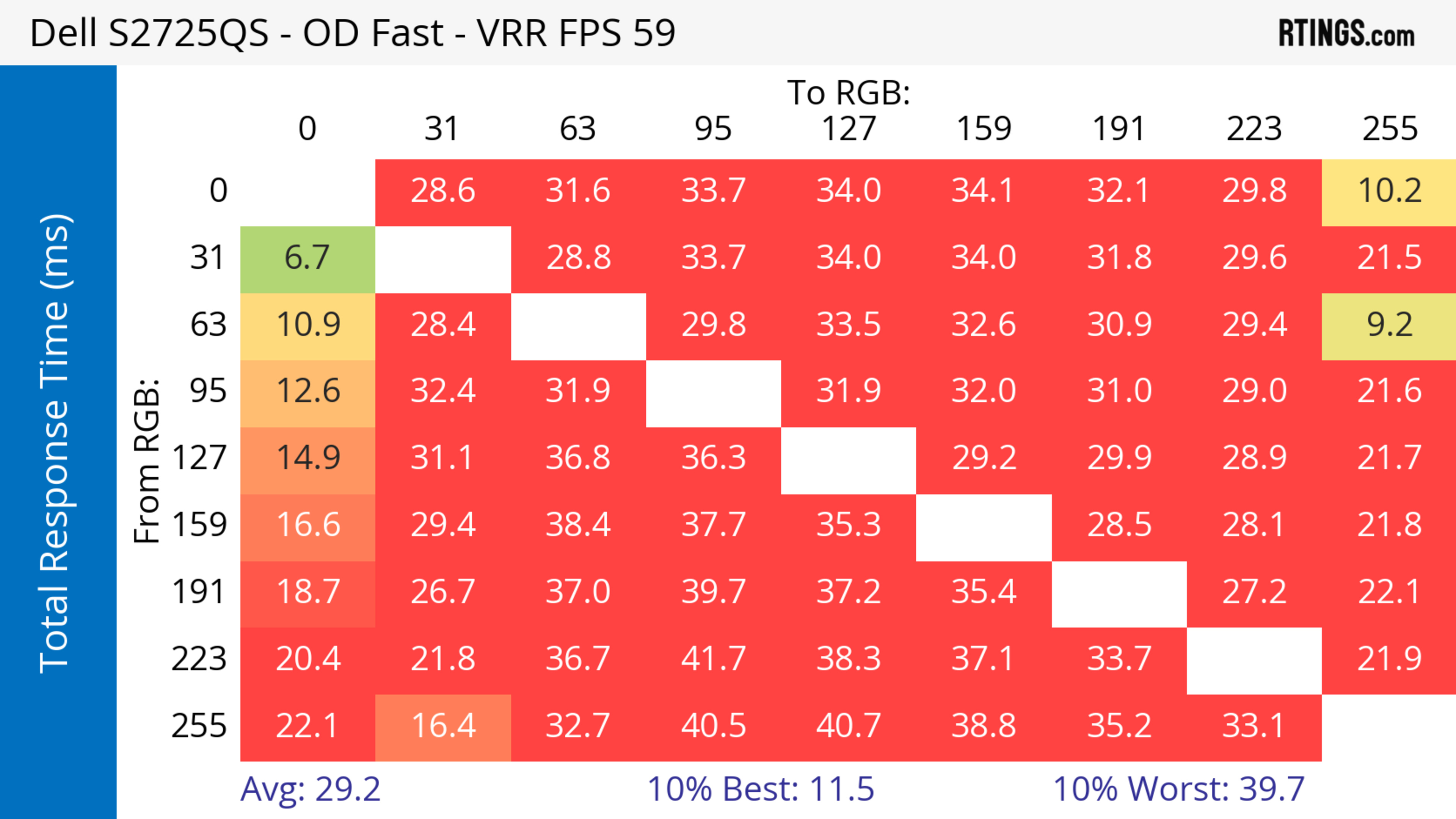 The Dell S2725QS has a poor response time, as motion looks blurry at any refresh rate.