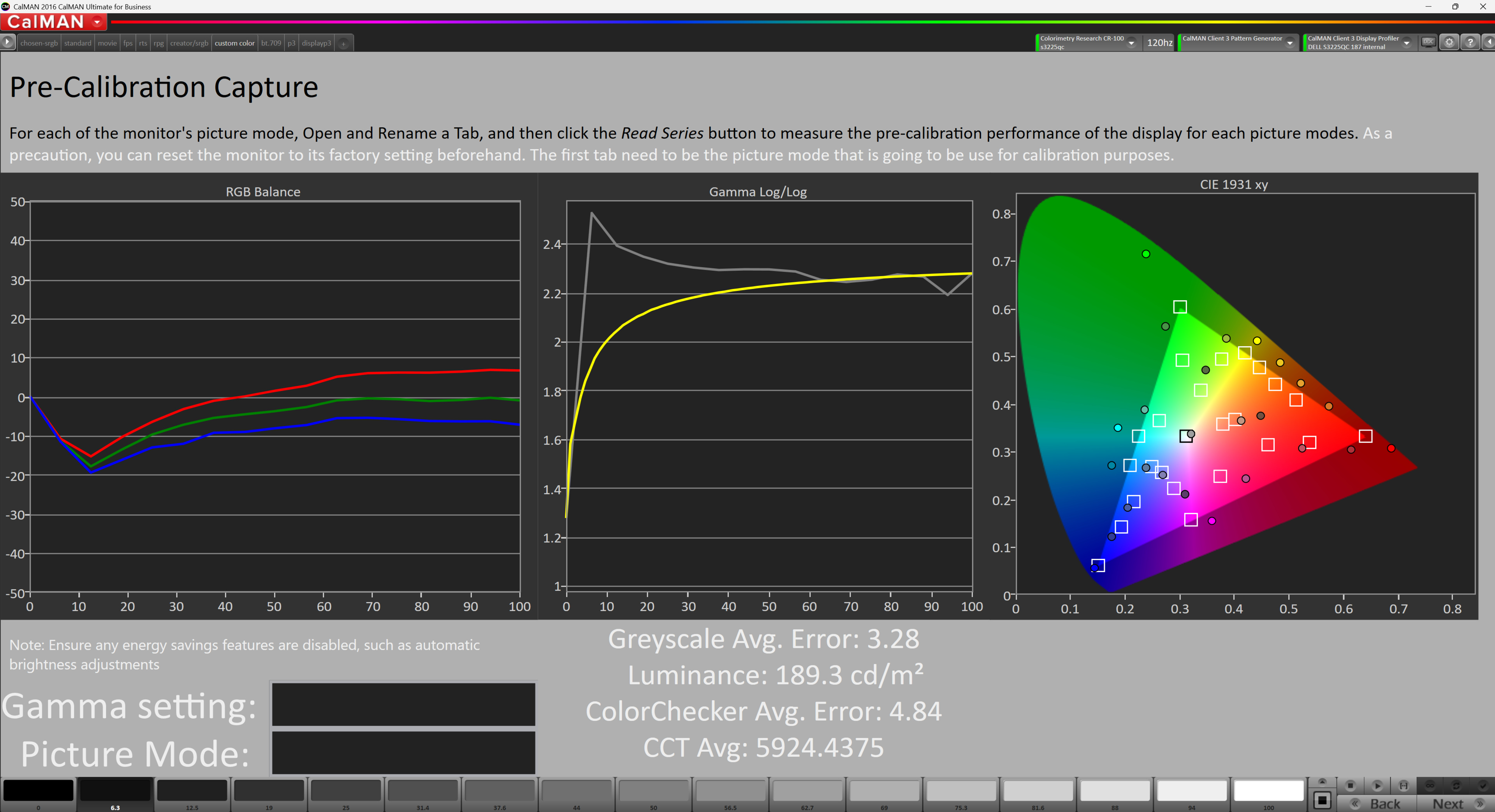 White balance and gamma issues before calibration.