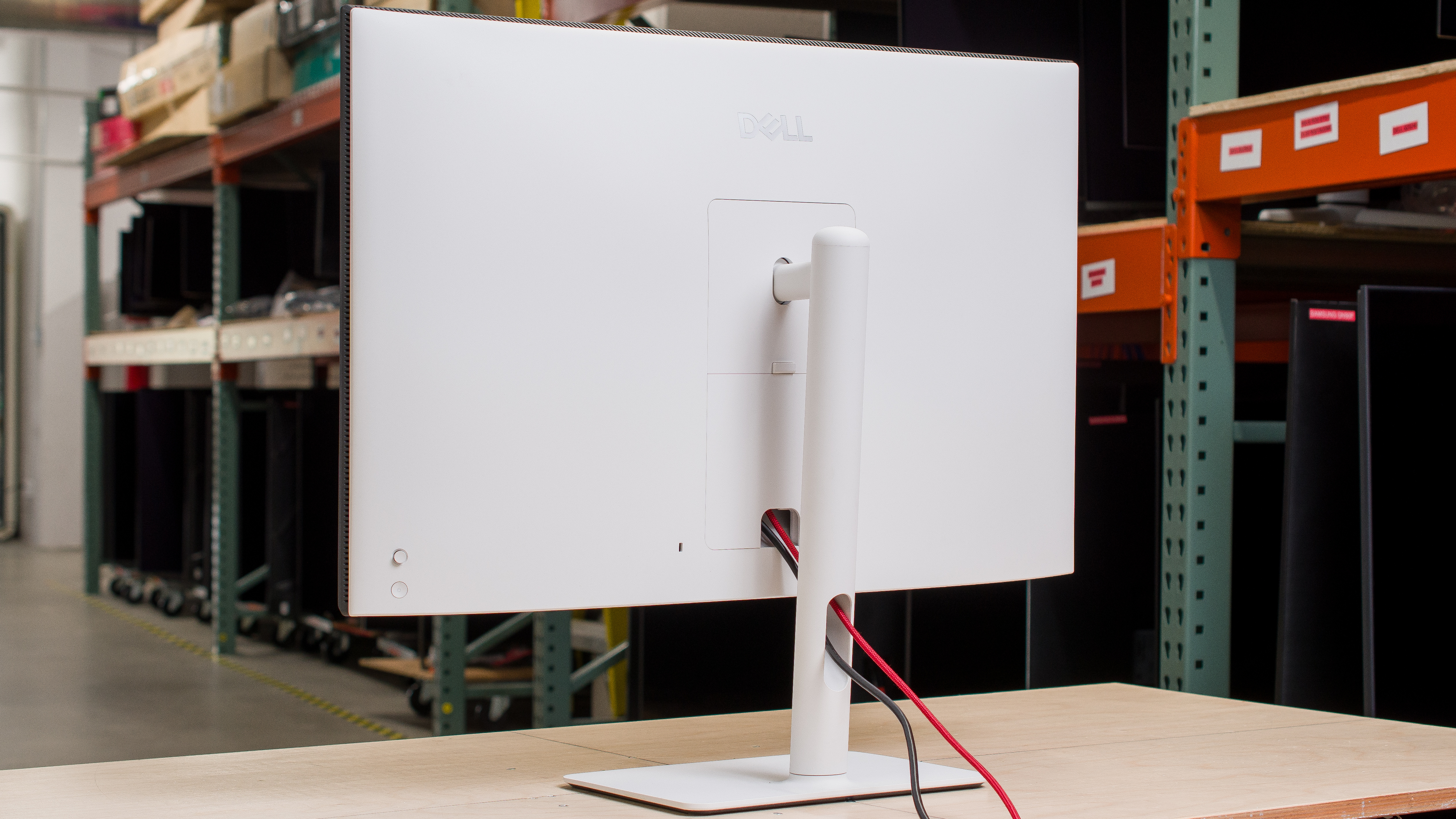 The Dell S3225QC has a remarkable vertical viewing angle. The screen looks the same, even if you're standing up and looking down at it.