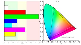 The accuracy before calibration is good in the 'sRGB' Color Space. Color accuracy is decent, with very little oversaturation, and its color temperature is close to the 6500K target. However, it has disappointing white balance. Gamma follows the target curve extremely well, and all parts of scenes have the correct brightness.
