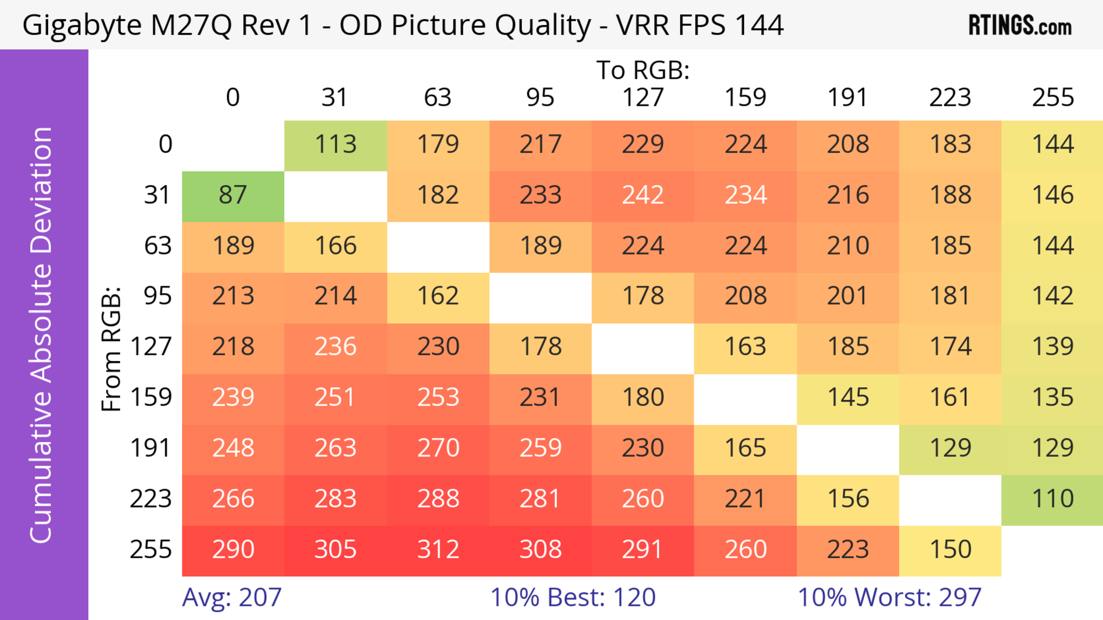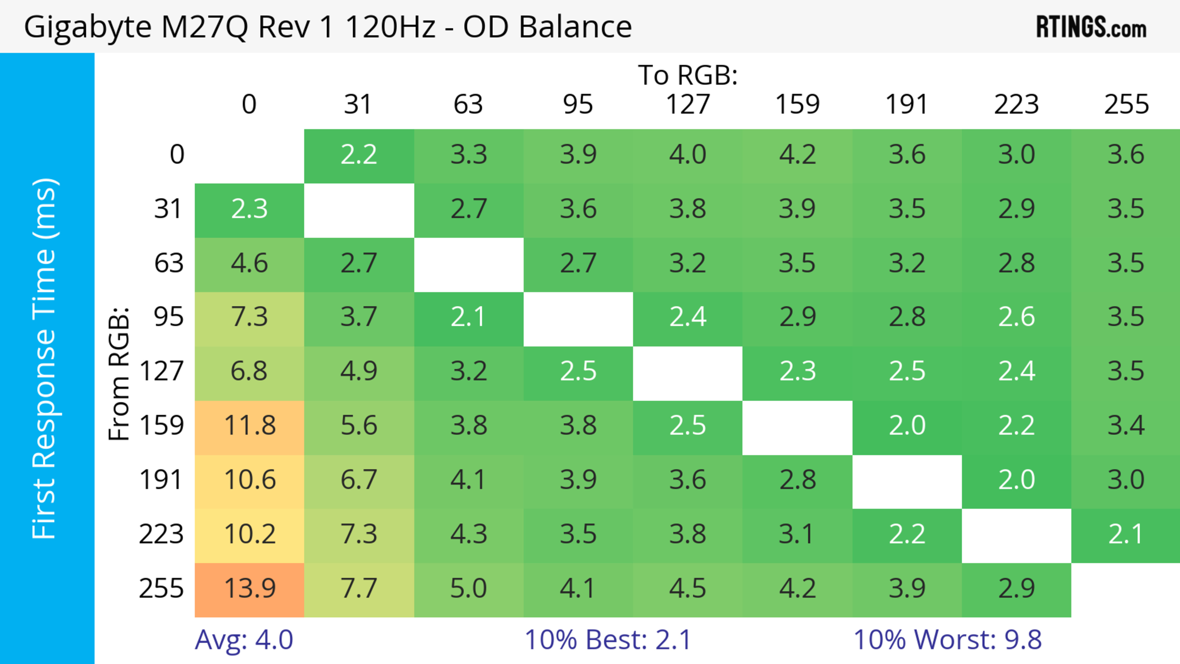 The Gigabyte M27Q has a decent response time. While its response time is fast with most refresh rates, there's still noticeable blur with fast-moving objects.