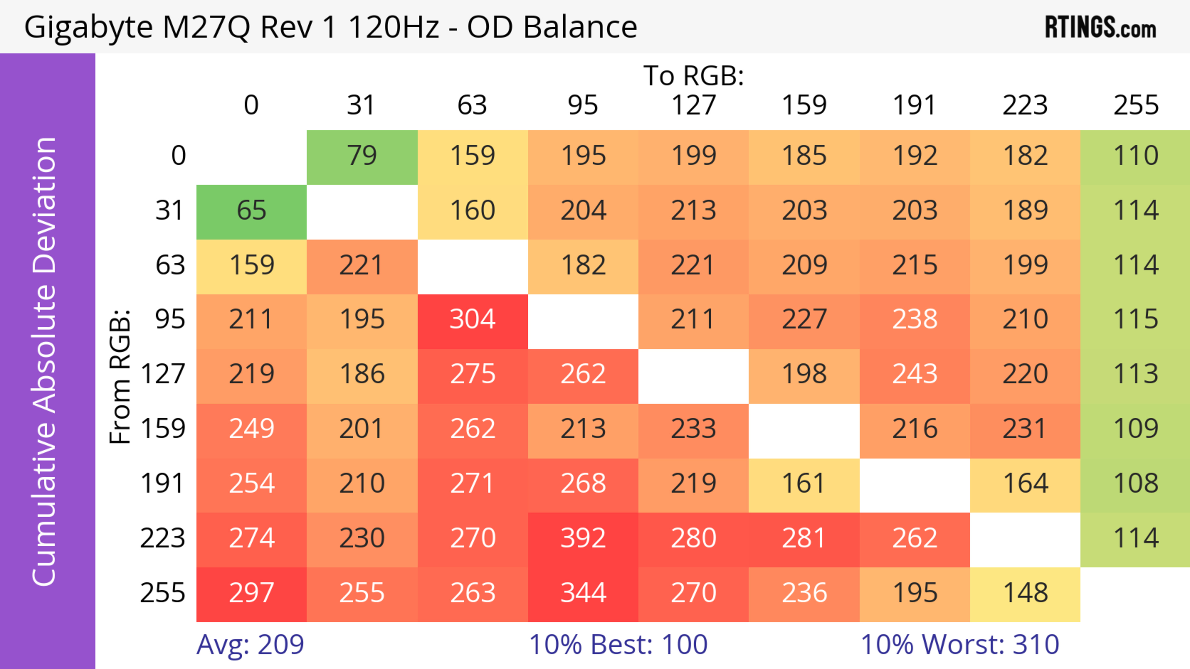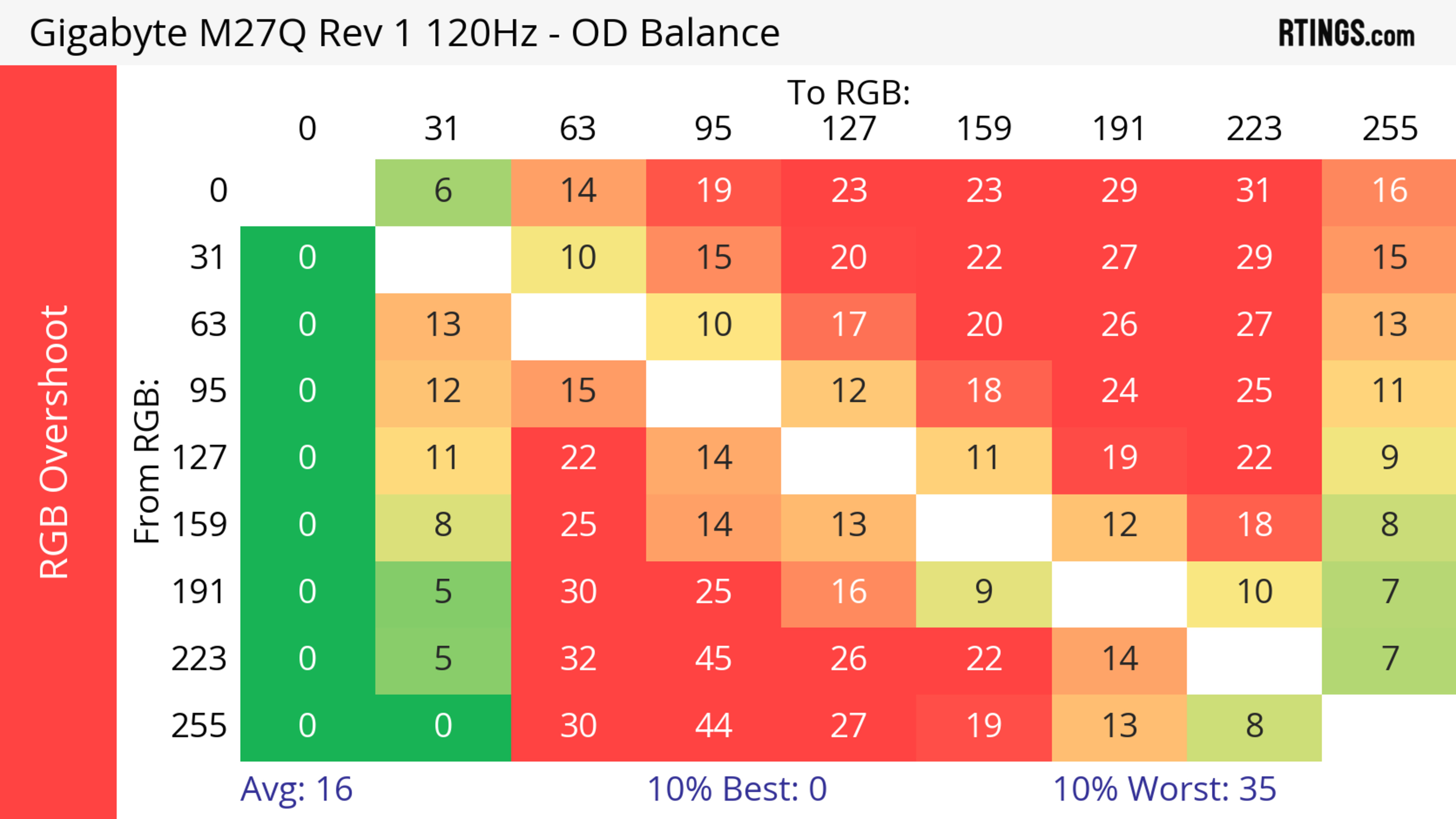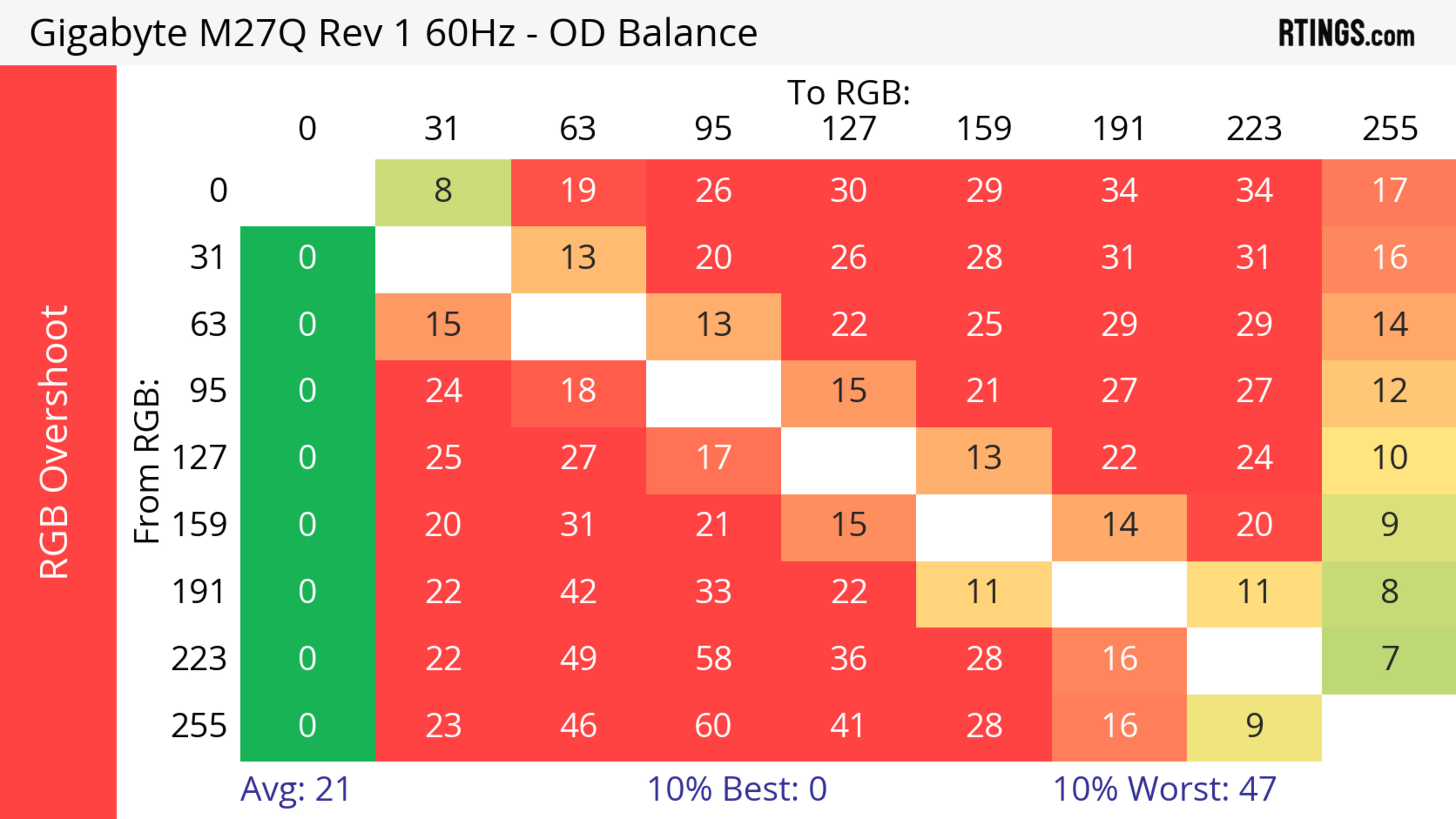 This monitor is the original version of the M27Q, which has a BGR subpixel layout and is different than the newer Gigabyte M27Q (rev. 2.0), which has an RGB subpixel layout. It's unclear which version you'll get when buying from retailers, as they don't specify if it's Rev. 1.0 or Rev. 2.0. The two versions have slightly different designs on the boxes they come with. You can see the box we got with Rev. 1.0 here and the one with Rev. 2.0 here. The biggest difference is that Rev. 1.0 is labeled as '170Hz' on the box, while Rev. 2.0 is labeled as '165Hz,' but each has a max refresh rate of 170Hz. That said, the second version is more available with most retailers.
