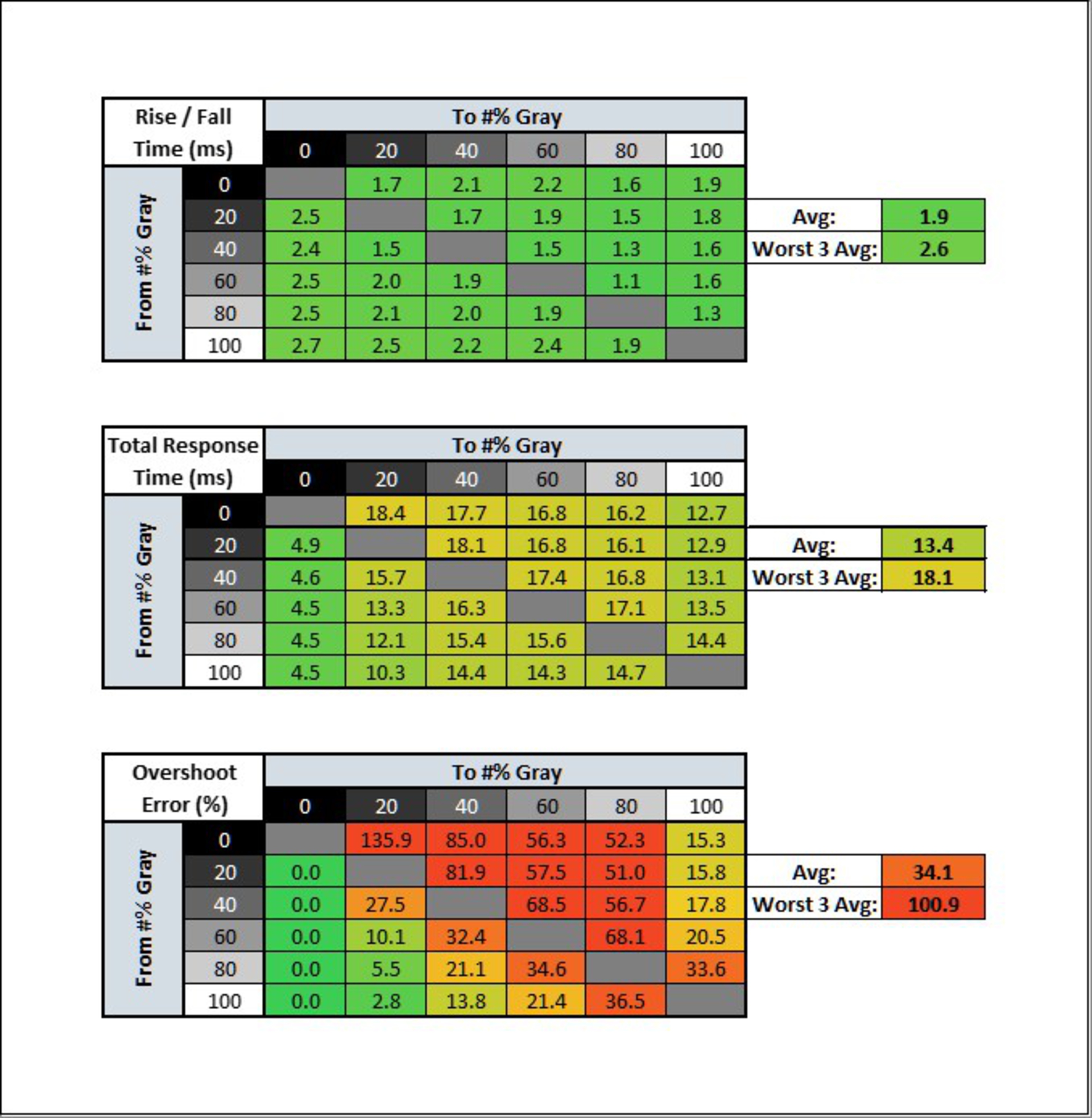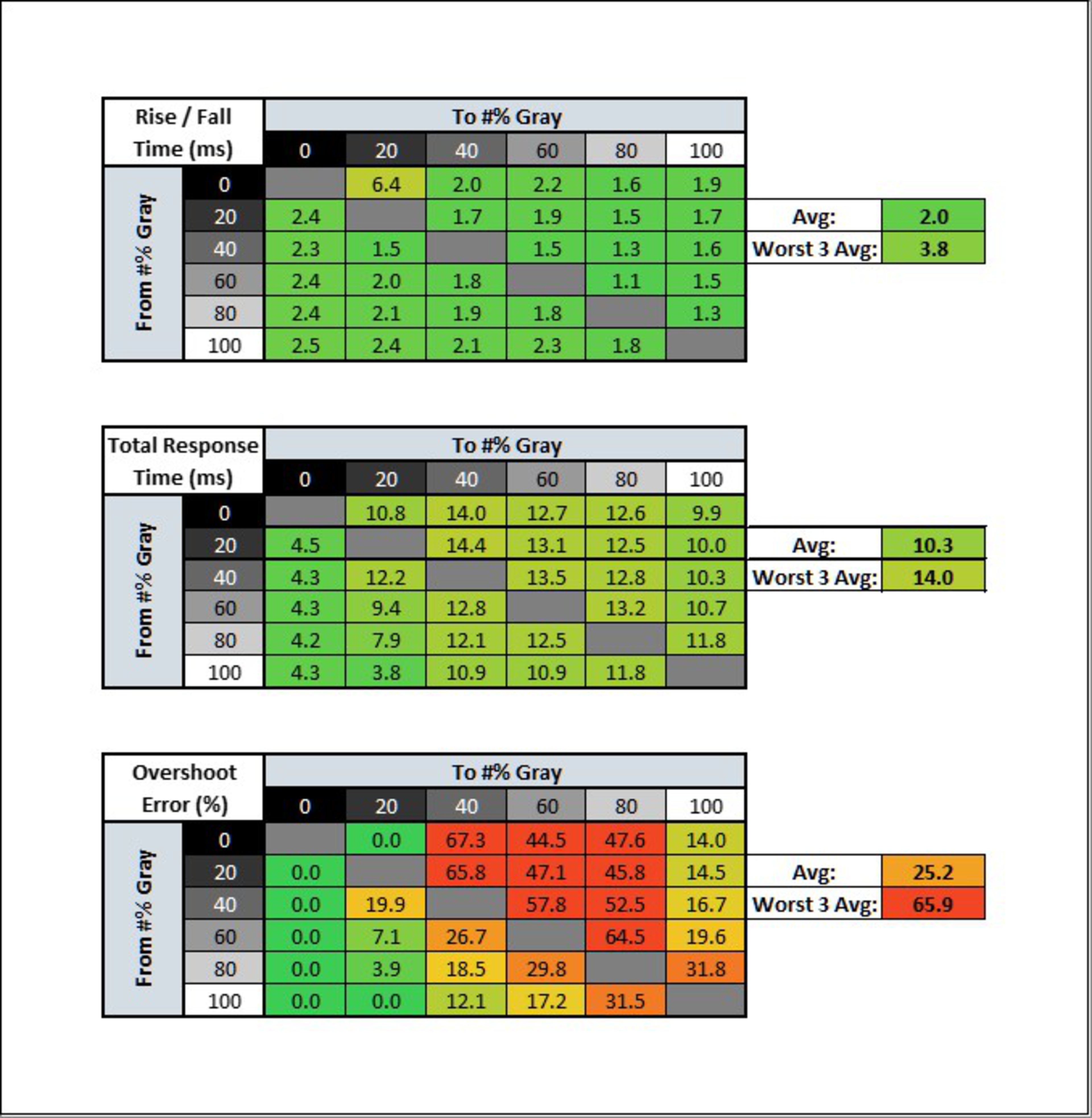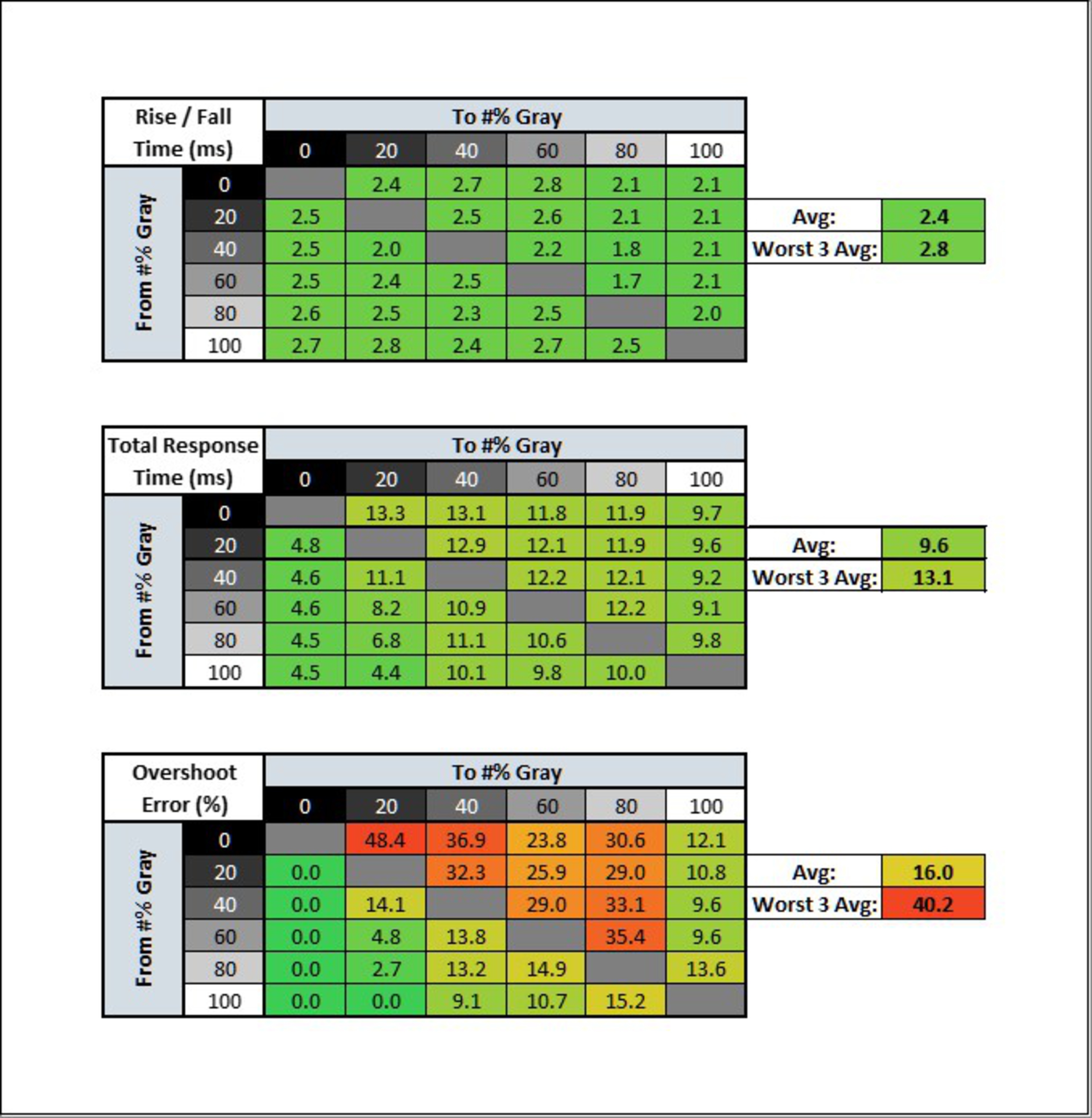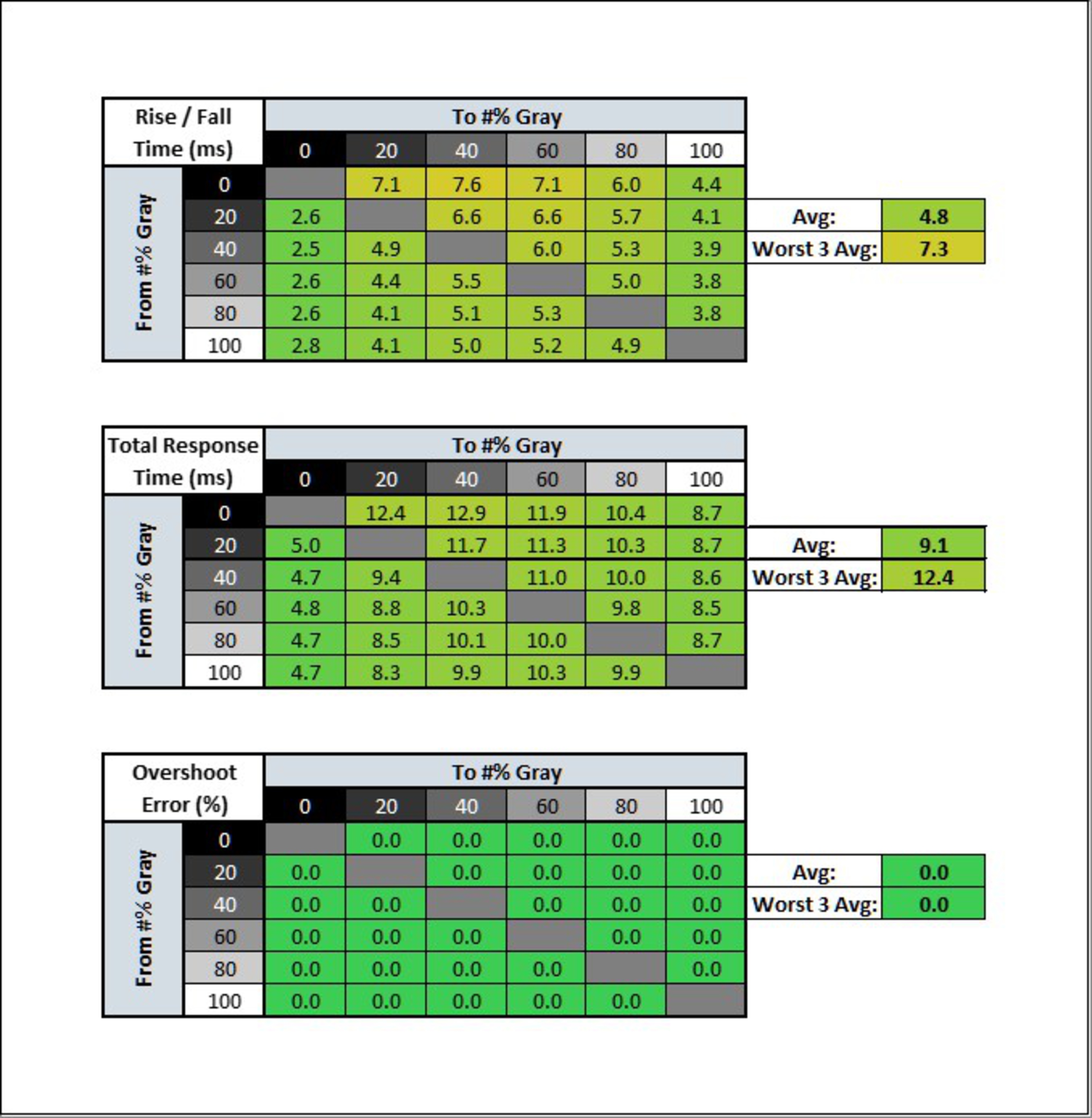 The refresh rate compliance is decent. Its response time isn't fast enough to make full color transitions before the monitor draws the next frame at high refresh rates, but it's better at lower refresh rates.