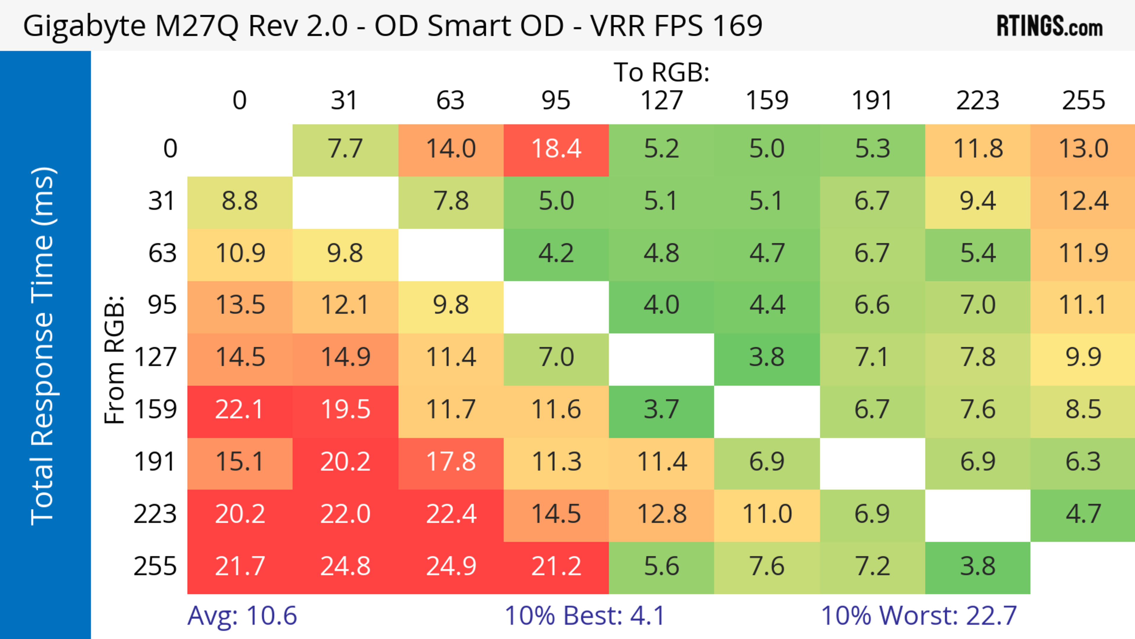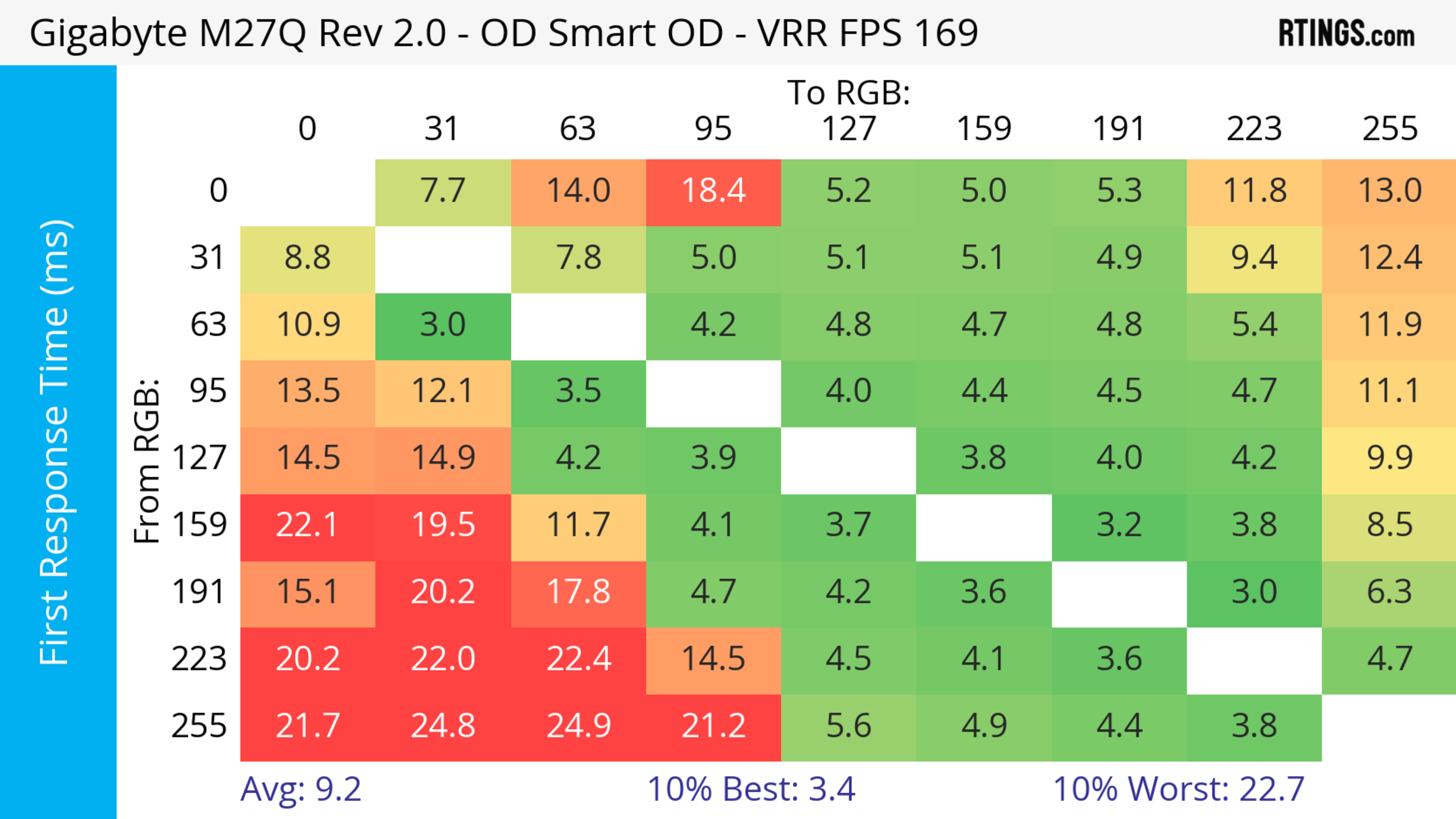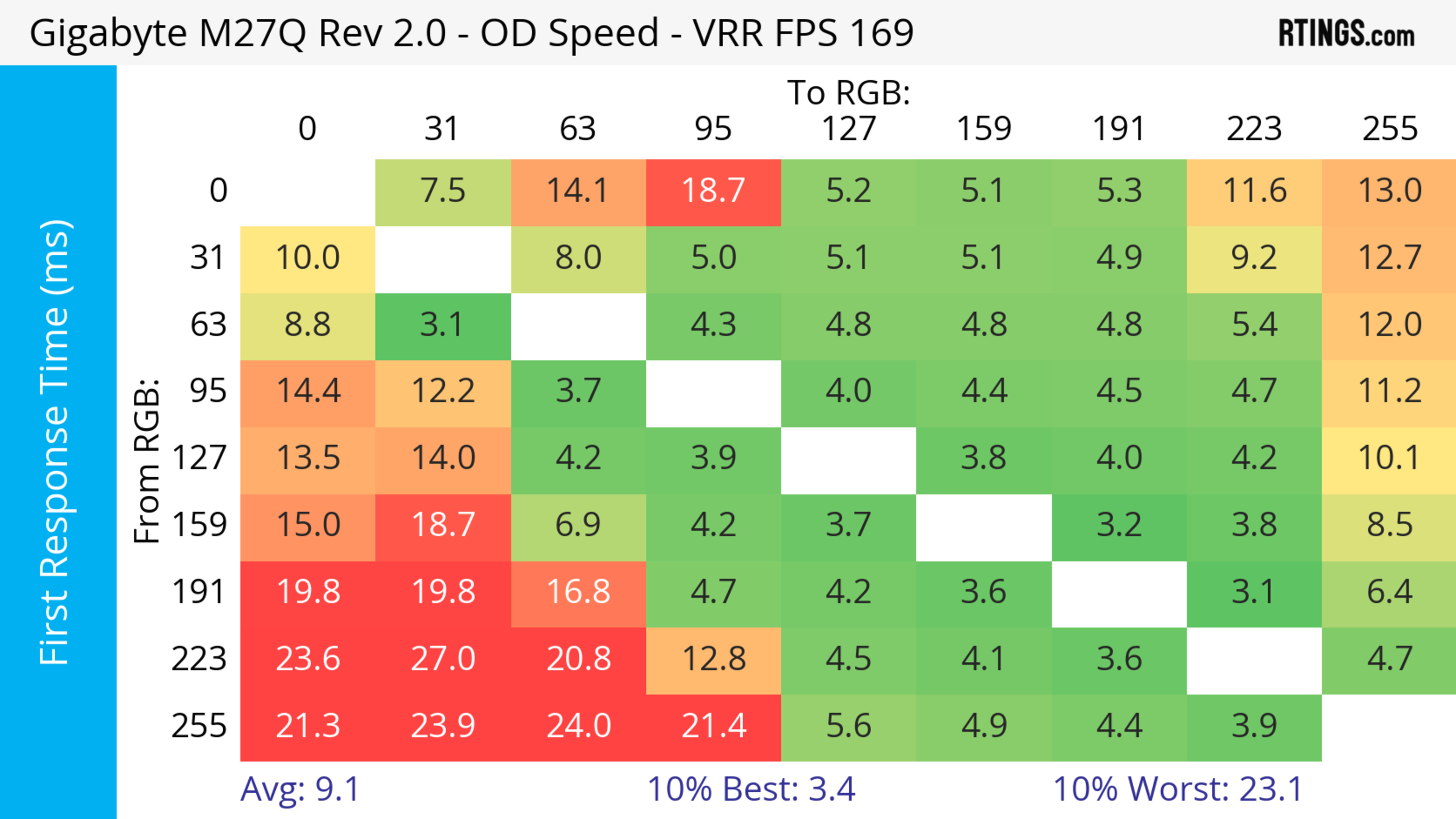 The Gigabyte M27Q Rev. 2 is an okay budget gaming monitor that offers a few productivity features like a KVM switch and USB-C port. However, it's fairly different from the Gigabyte M27Q (rev. 1.0), as it has a slower response time and lower peak brightness. It's closer in performance to the Gigabyte M27Q P, but that monitor has a few extra features like DisplayPort 1.4 bandwidth and built-in speakers. Considering it's unclear which version of the M27Q you'll get when buying it, and because the second version performs worse than the first version, the M27Q P is the most reliable option if you want one of the M27Q monitors. If you don't need the office features of the Gigabyte monitors and want a budget monitor mainly for gaming, you can also consider the Dell G2724D, which has a faster response time.