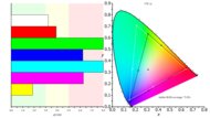 The out of the box white balance dE is well below our threshold of 3, so it is very hard to spot the gray inaccuracies. The Color dE is also below our threshold of 3, but in this case, color inaccuracies will be easier to spot, although most people still won't notice them. The color temperature is very close to our target of 6500 K, and the average gamma is spot on our 2.2 target, although the curve does not quite follow our target curve. Dark shades look slightly darker whereas brighter colors are a little over saturated.