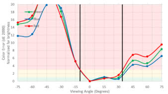 The situation is slightly better with the vertical viewing angles. When you look from above the monitor keeps its image quality for slightly higher off-center angles. However, when you look from below the image loses accuracy at very small angles. This causes the top edge of the screen to look darker when you sit close to the screen.