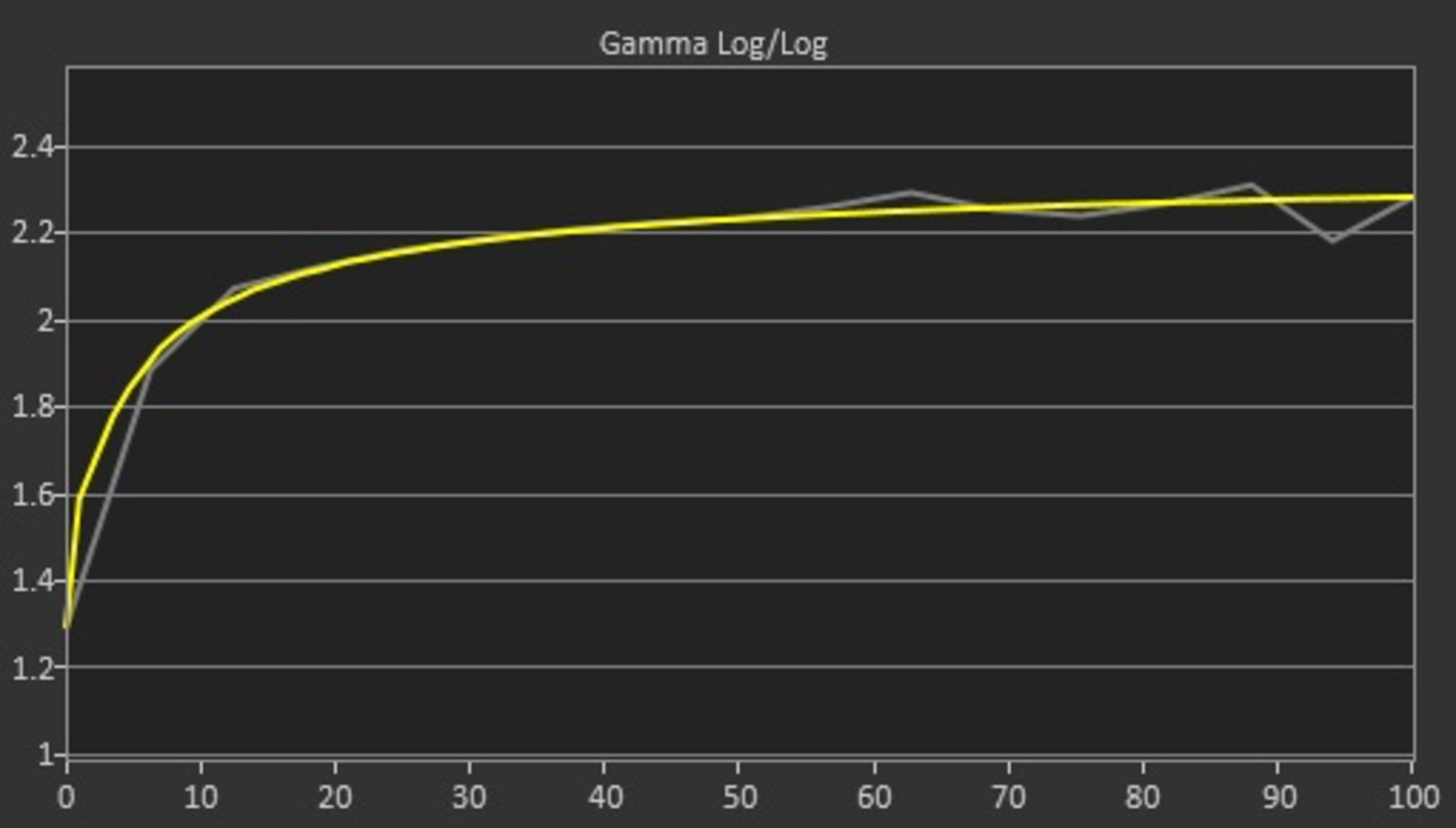 After calibration, the accuracy of the V320 is excellent. The white balance dE was brought down to a negligible 0.58 and the color dE to 0.81. In both cases here, this level of inaccuracy is almost unperceivable. The gamma was corrected to track our 2.4 target, and the curve now is almost perfectly tracking again the target curve.