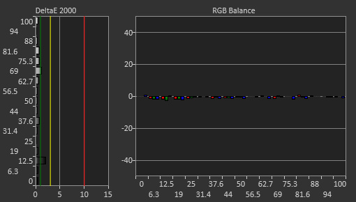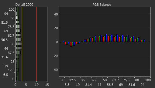 The accuracy before calibration is okay. It doesn't have a dedicated sRGB mode, so colors are oversaturated. The gamma tracking is off, as most scenes are too bright. On the plus side, its color temperature is close to the 6500K target, and the white balance only has some minor inaccuracies.