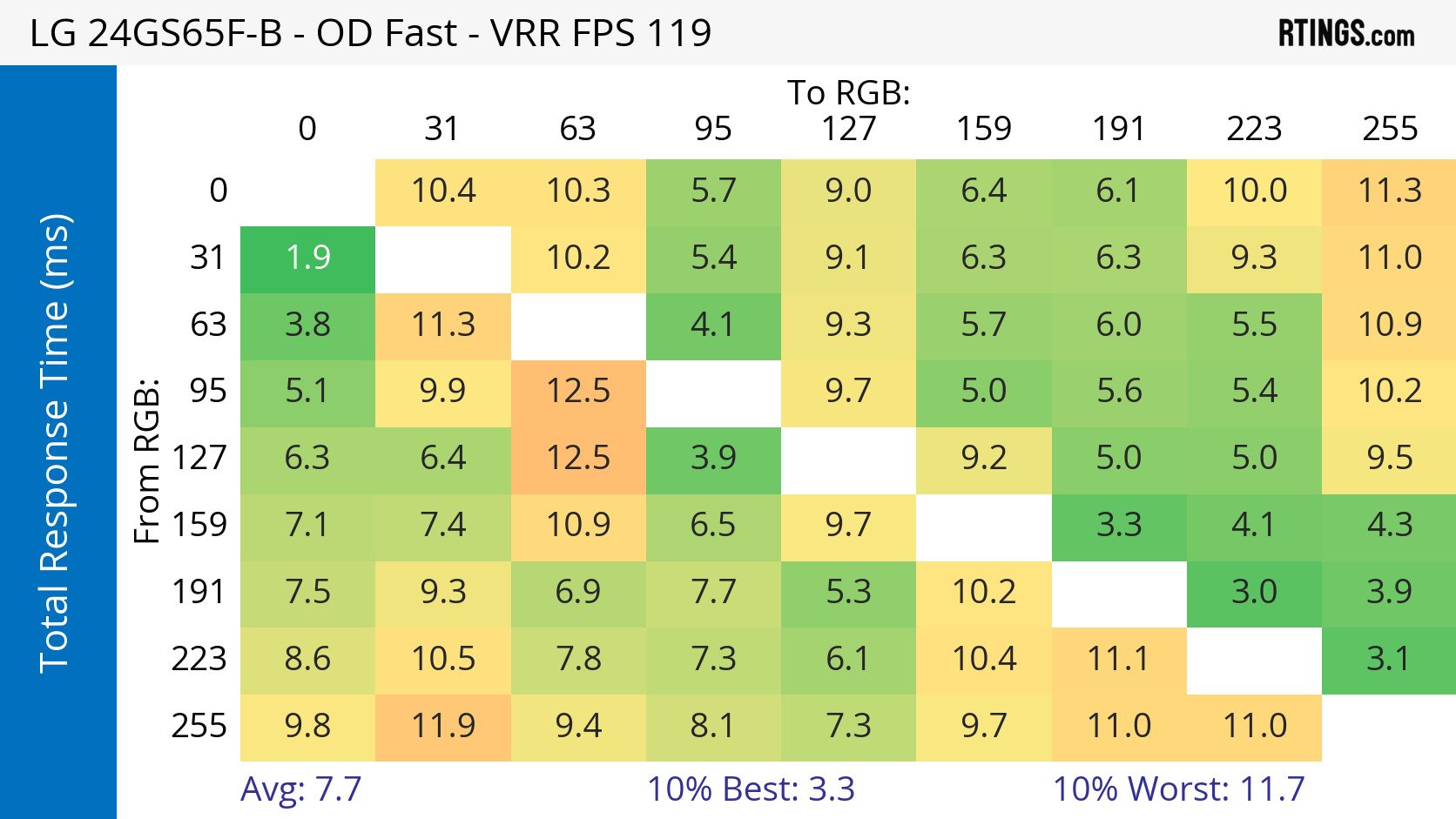 The LG 24GS65F-B has very low input lag for a responsive feel at any refresh rate.