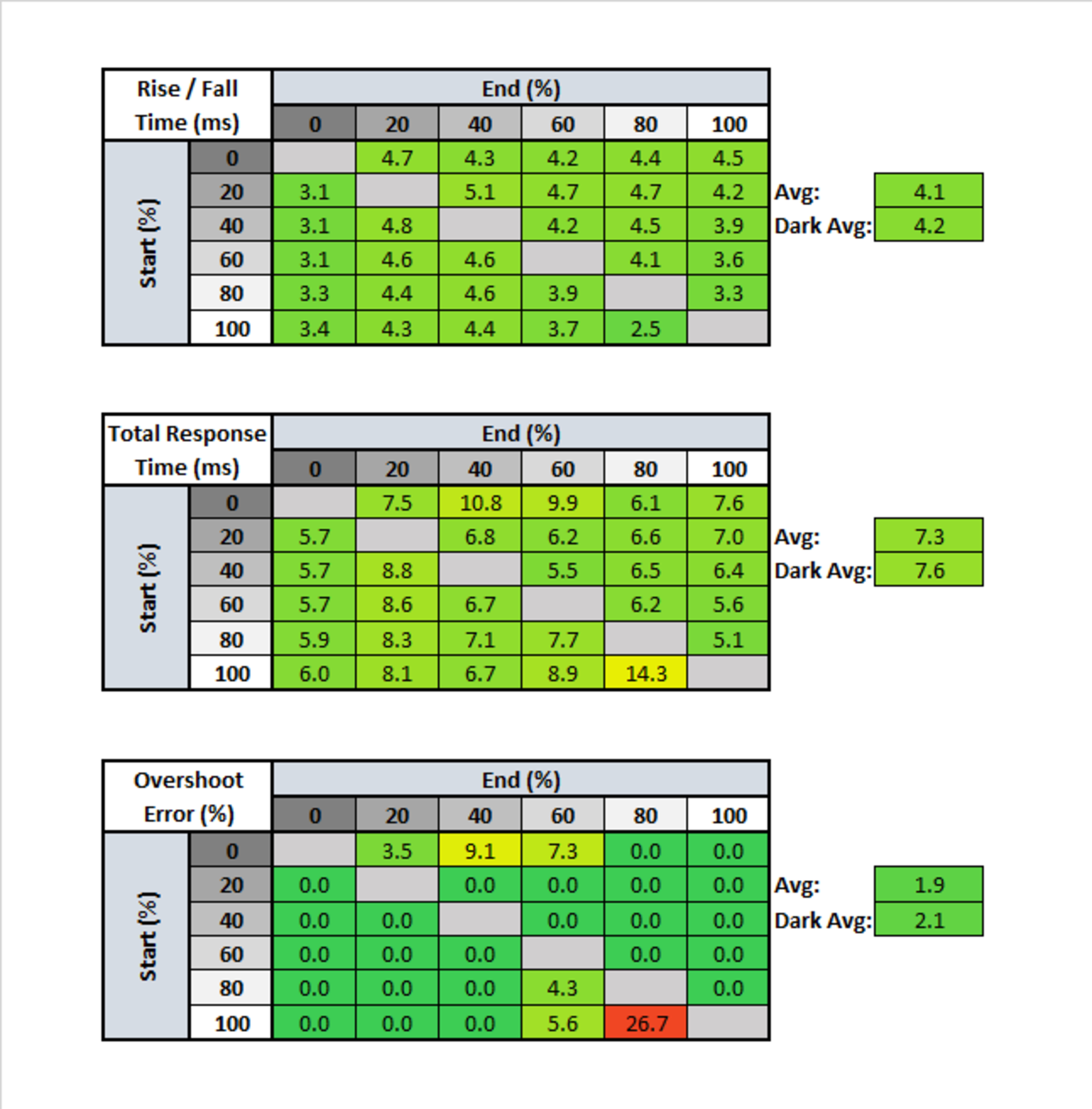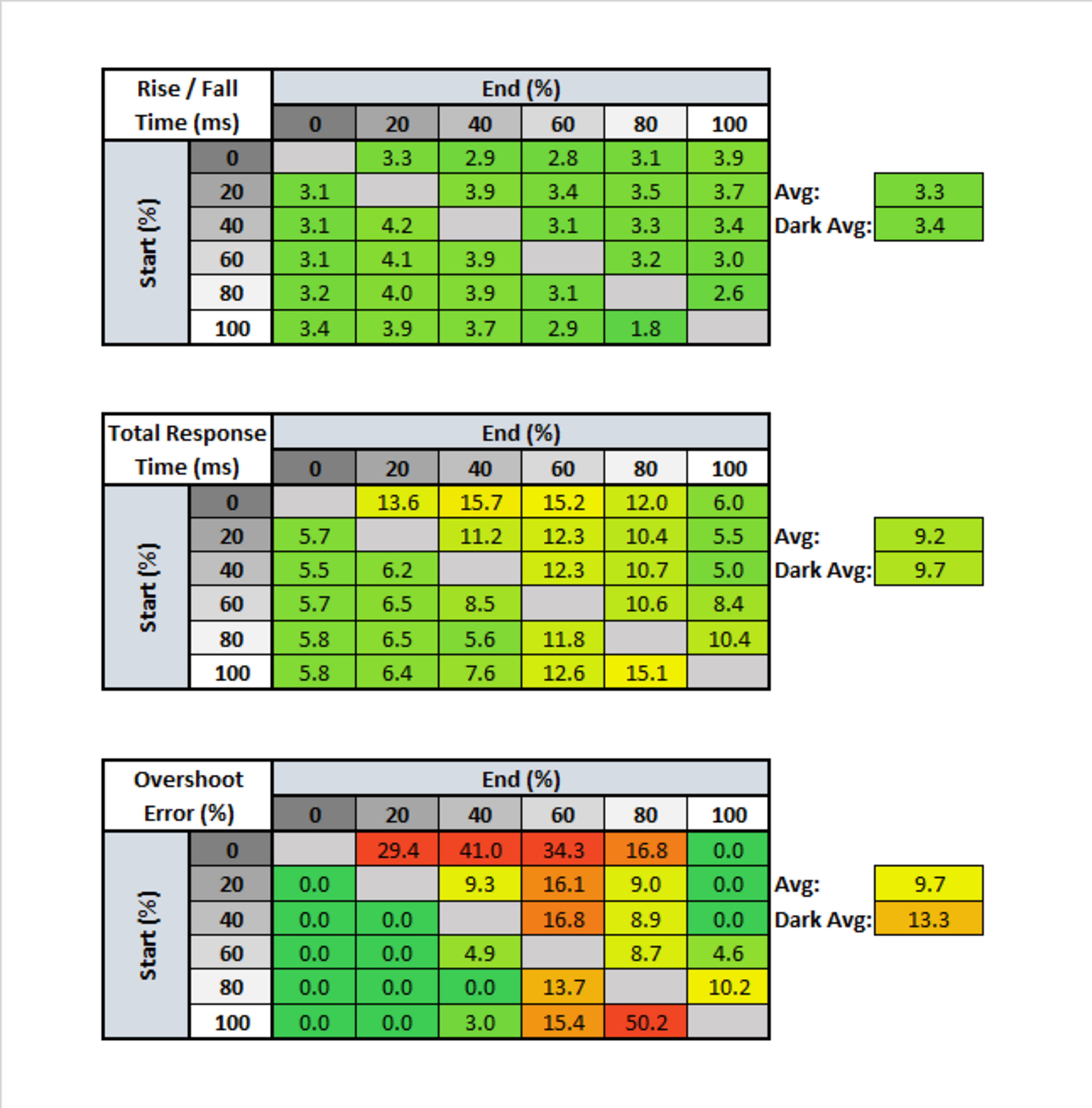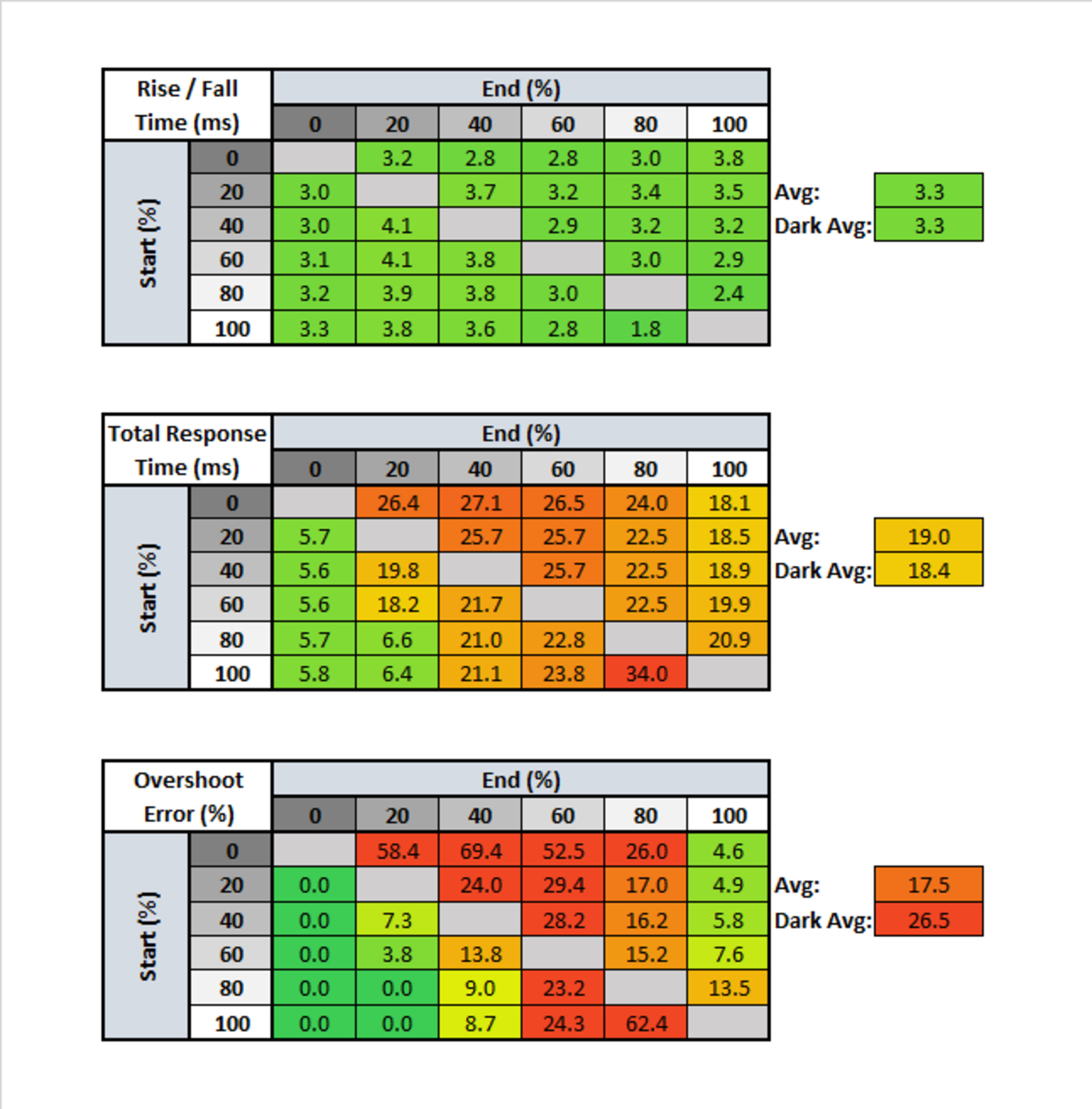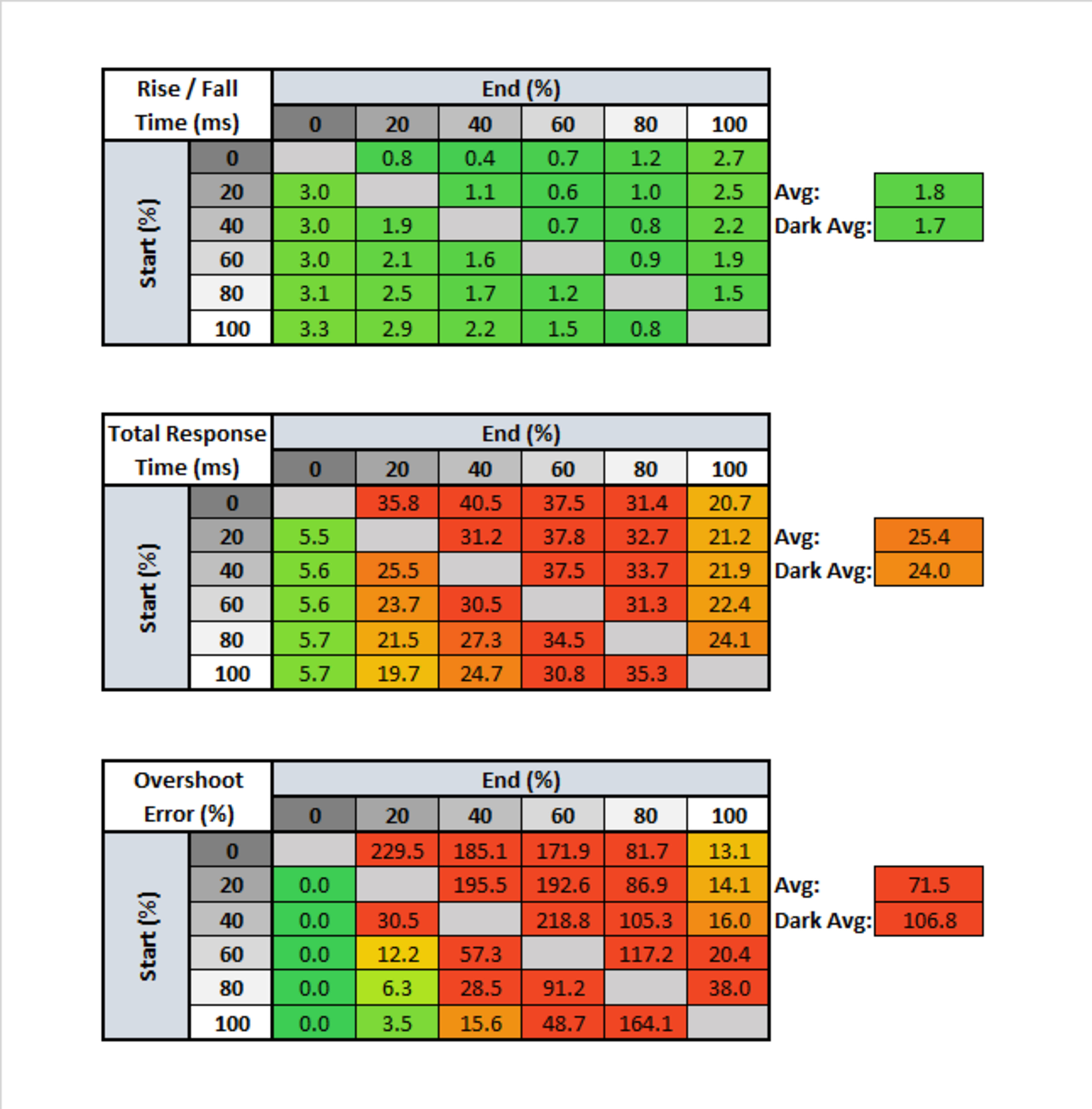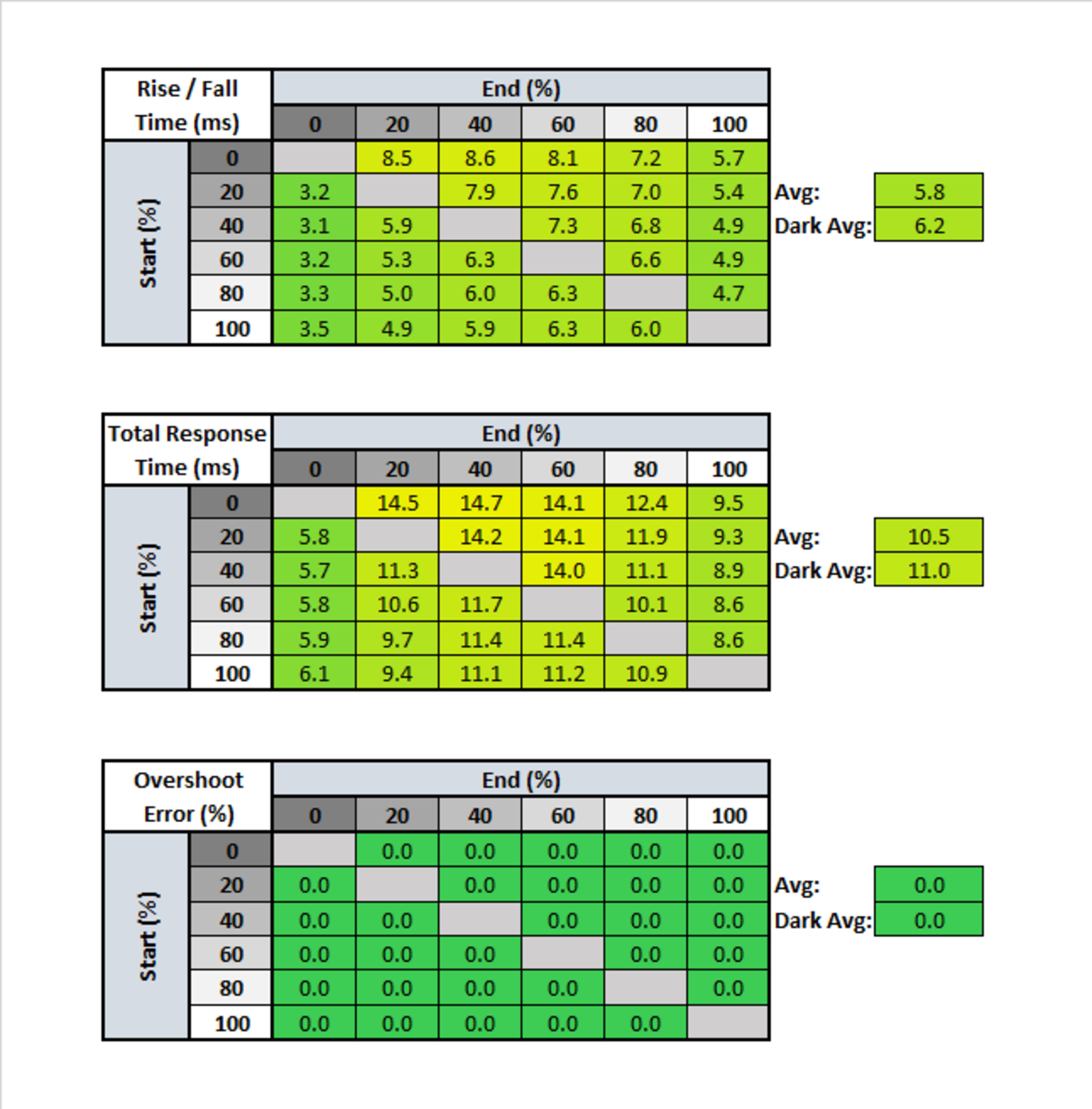 | Overdrive Setting | Response Time Chart | Response Time Tables | Motion Blur Photo |