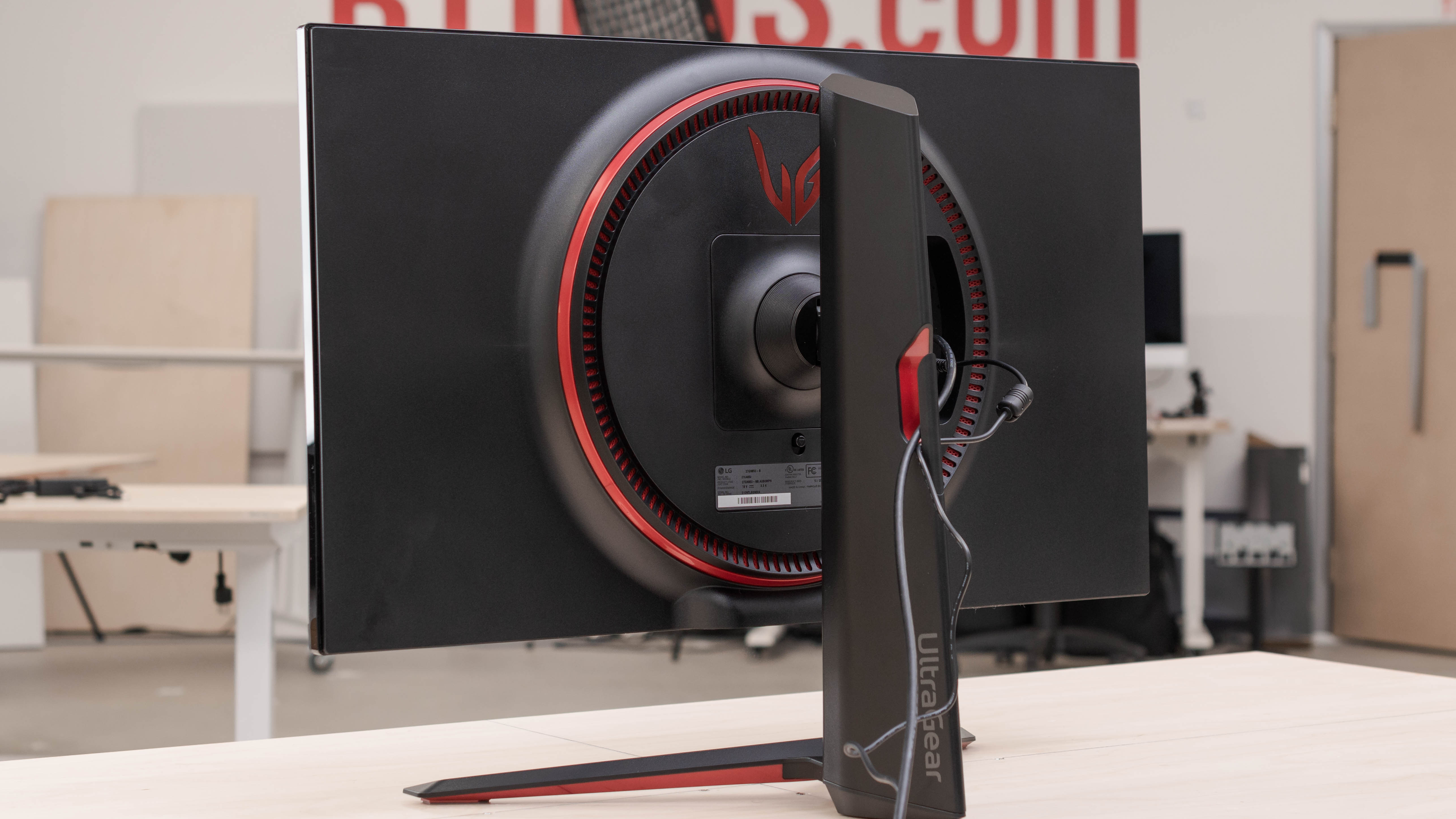 The back of the monitor has the same red ring found on most UltraGear monitors, but it doesn't light up. There's cable management through the hook in the stand.