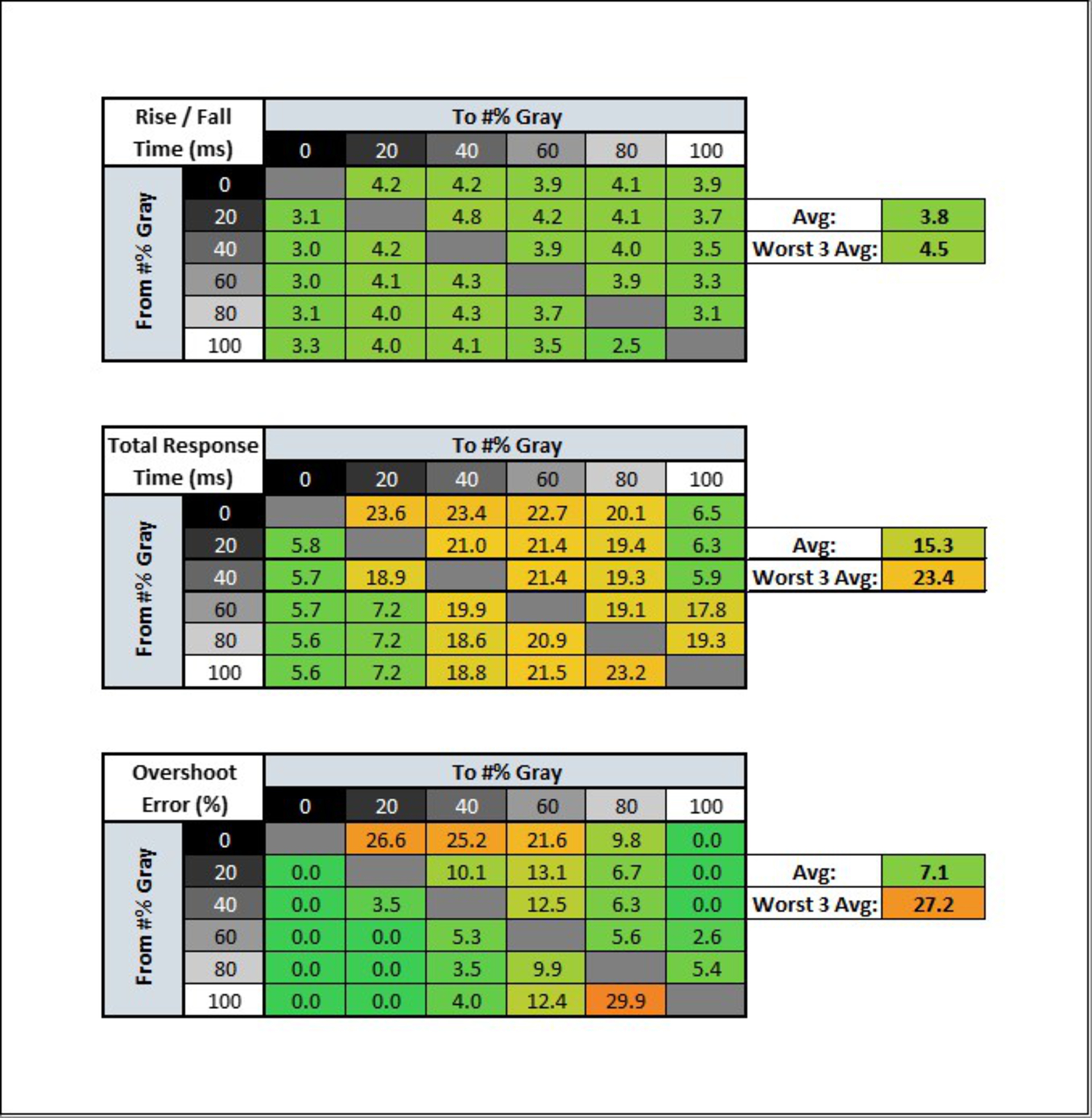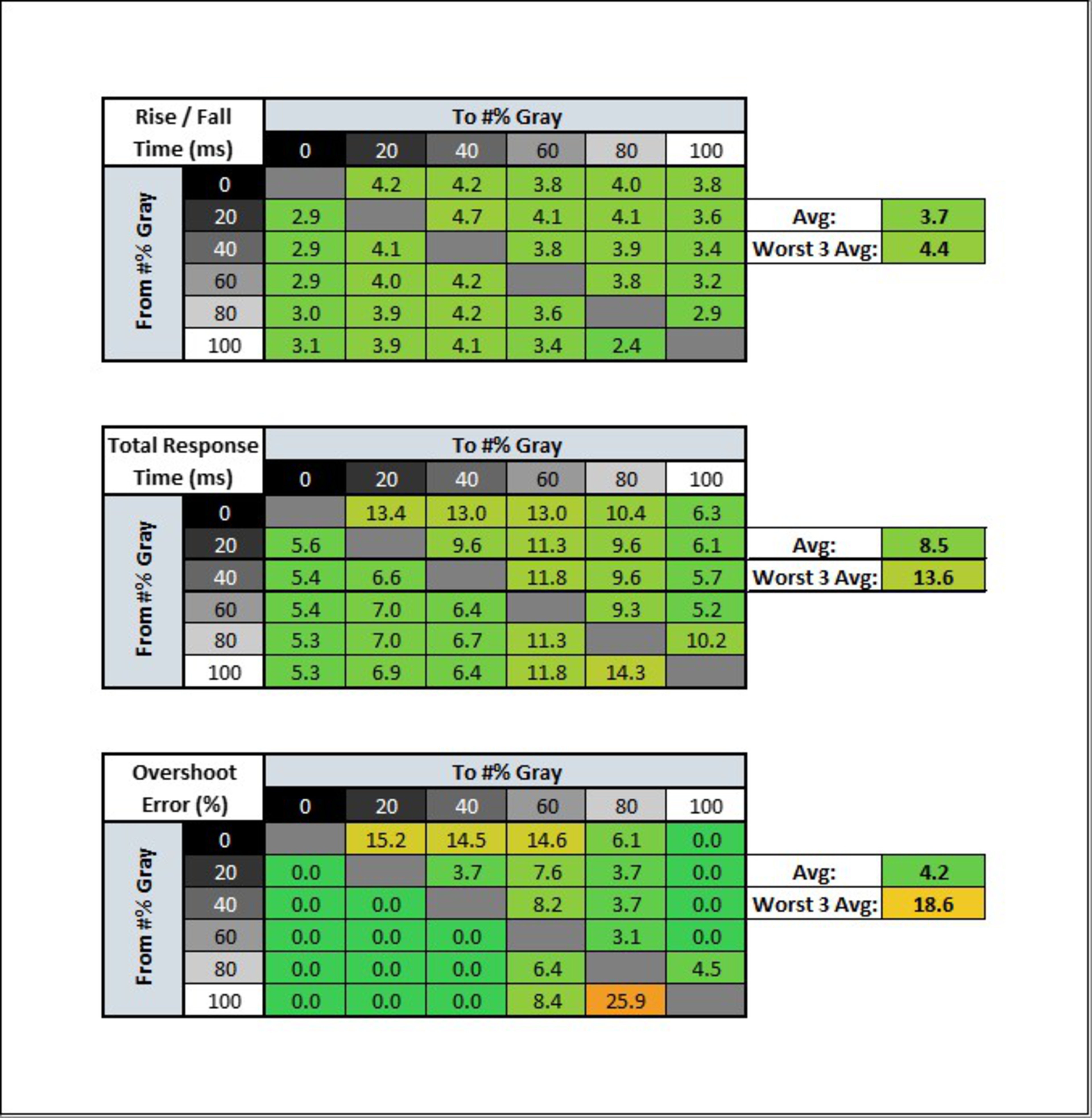 | Overdrive Setting | Response Time Chart | Response Time Tables | Motion Blur Photo |