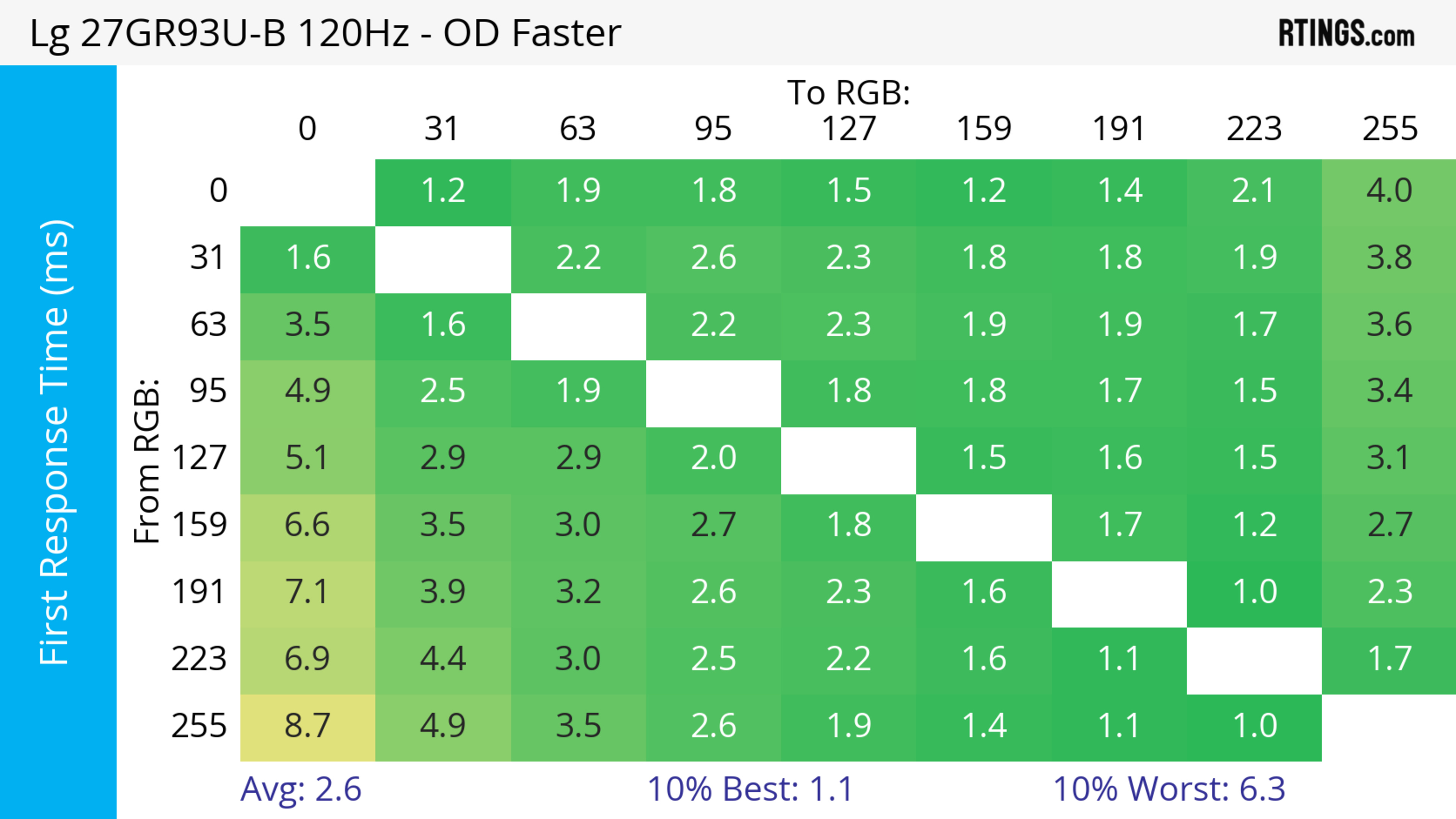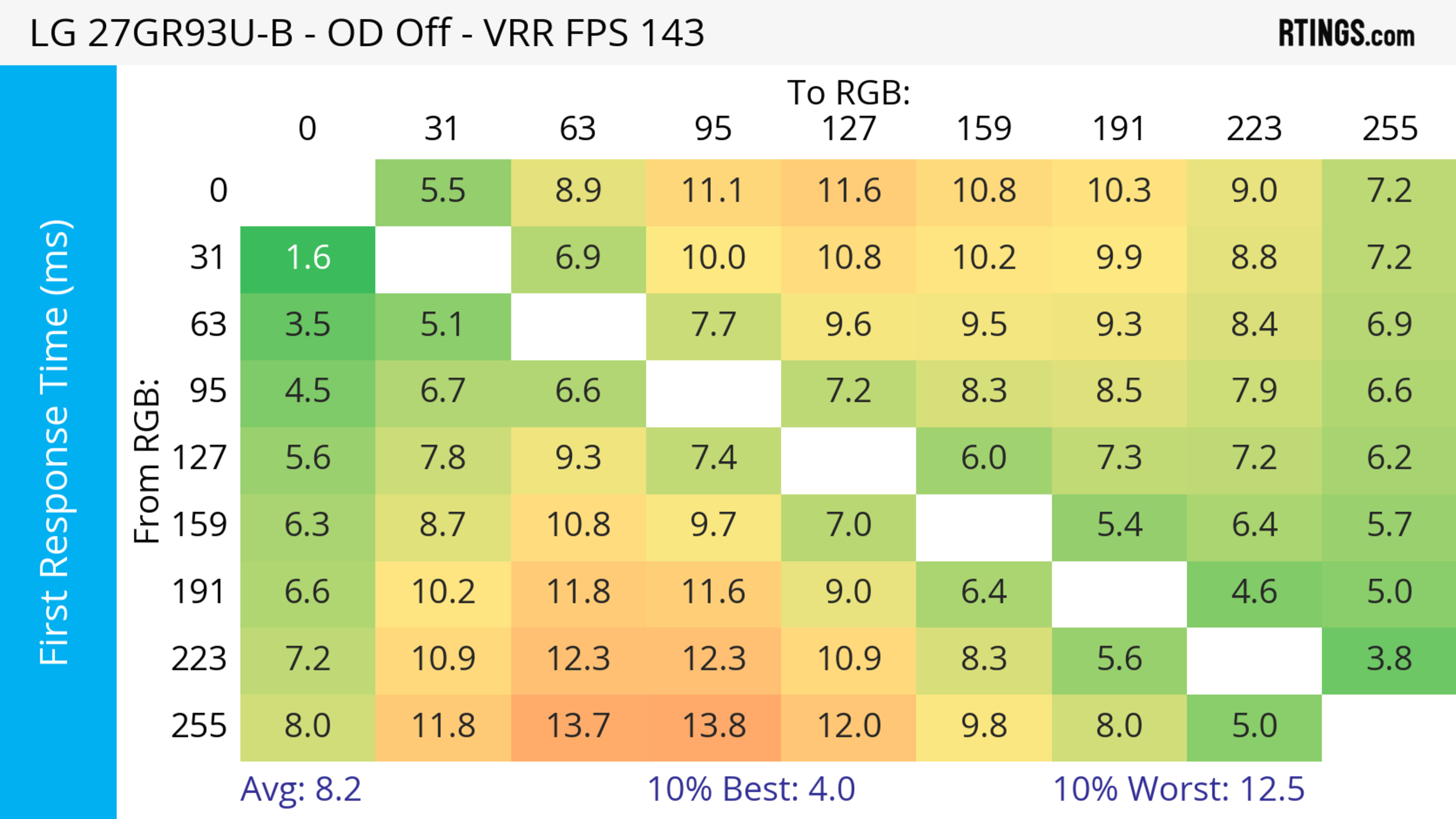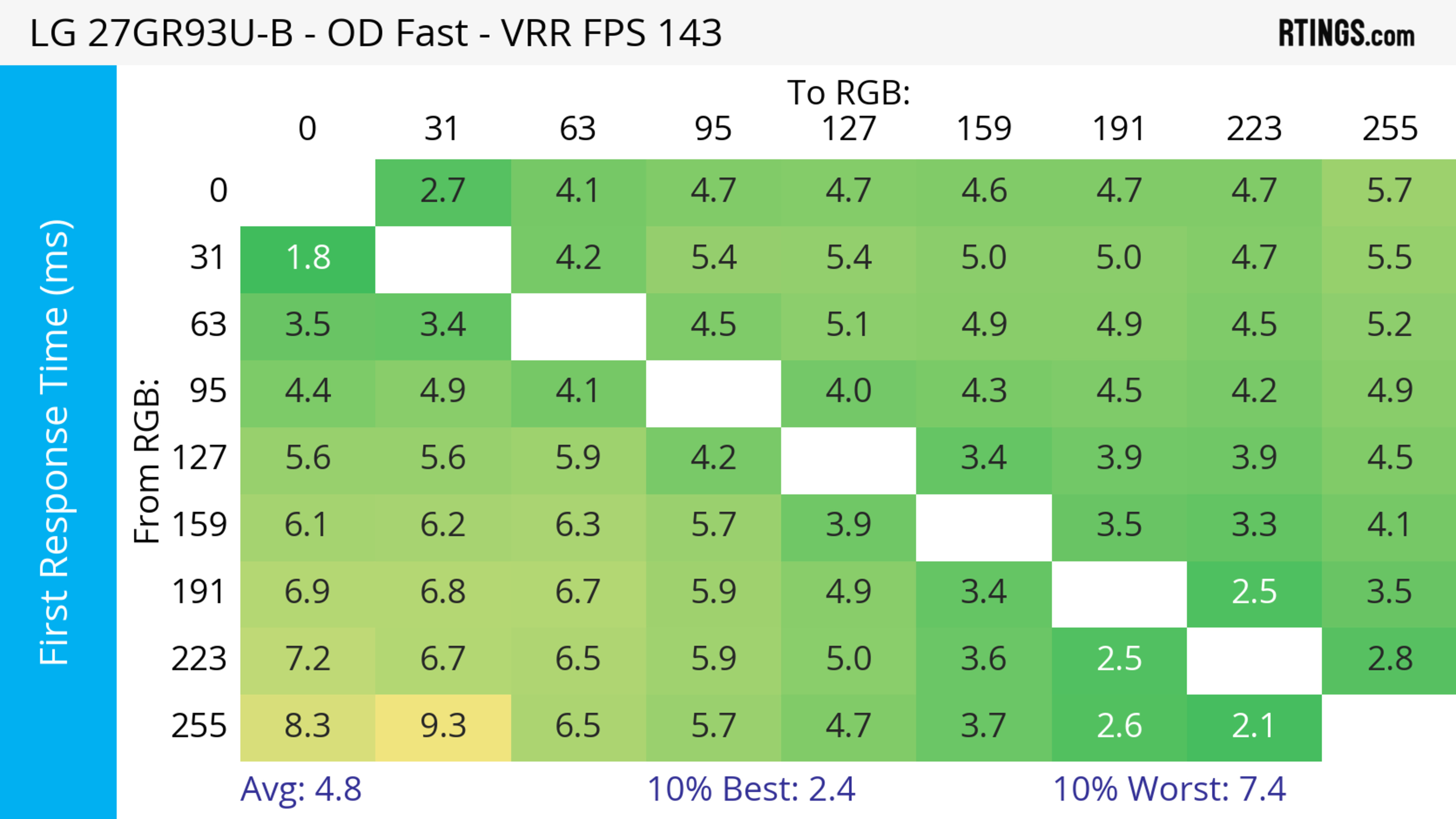 The refresh rate compliance is good. Although its response time struggles to keep up with its max refresh rate, this is typical of most LCD monitors, and it gets better with lower frame rates.