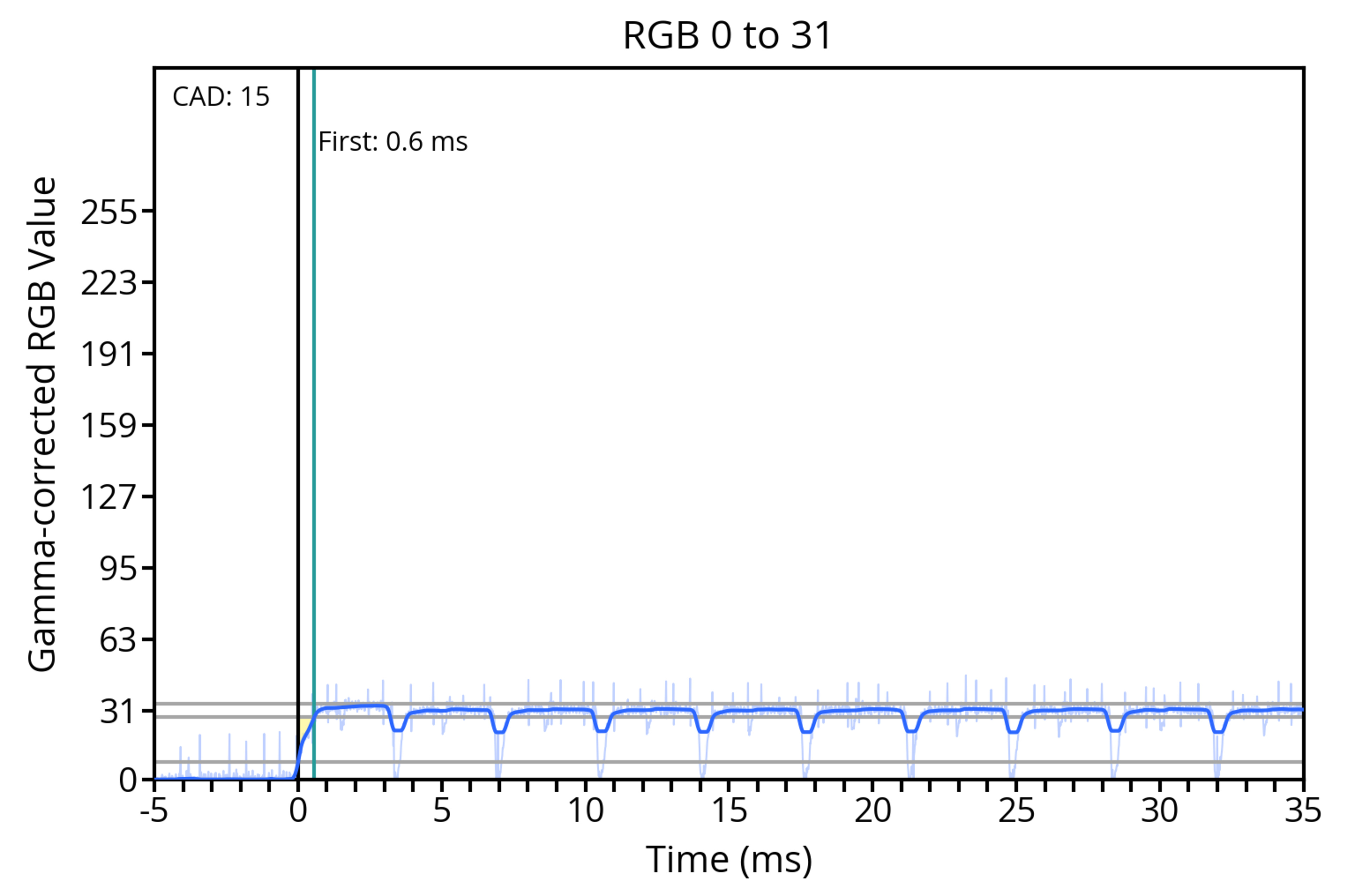 Like other WOLEDs, the black levels change depending on the refresh rate. The gamma rises at low refresh rates, worsening the black levels, and in turn the contrast ratio, as you can see at 280Hz, 120Hz, and 60Hz.