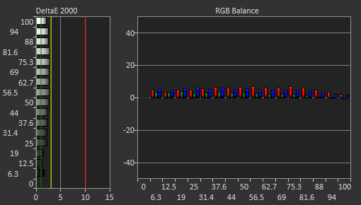 The accuracy before calibration is fantastic. It has a dedicated 'sRGB' Game Mode that locks colors well to the sRGB color space, so they aren't oversaturated. It also has minimal white balance and color inaccuracies, and the color temperature is almost spot-on with the 6500K target.