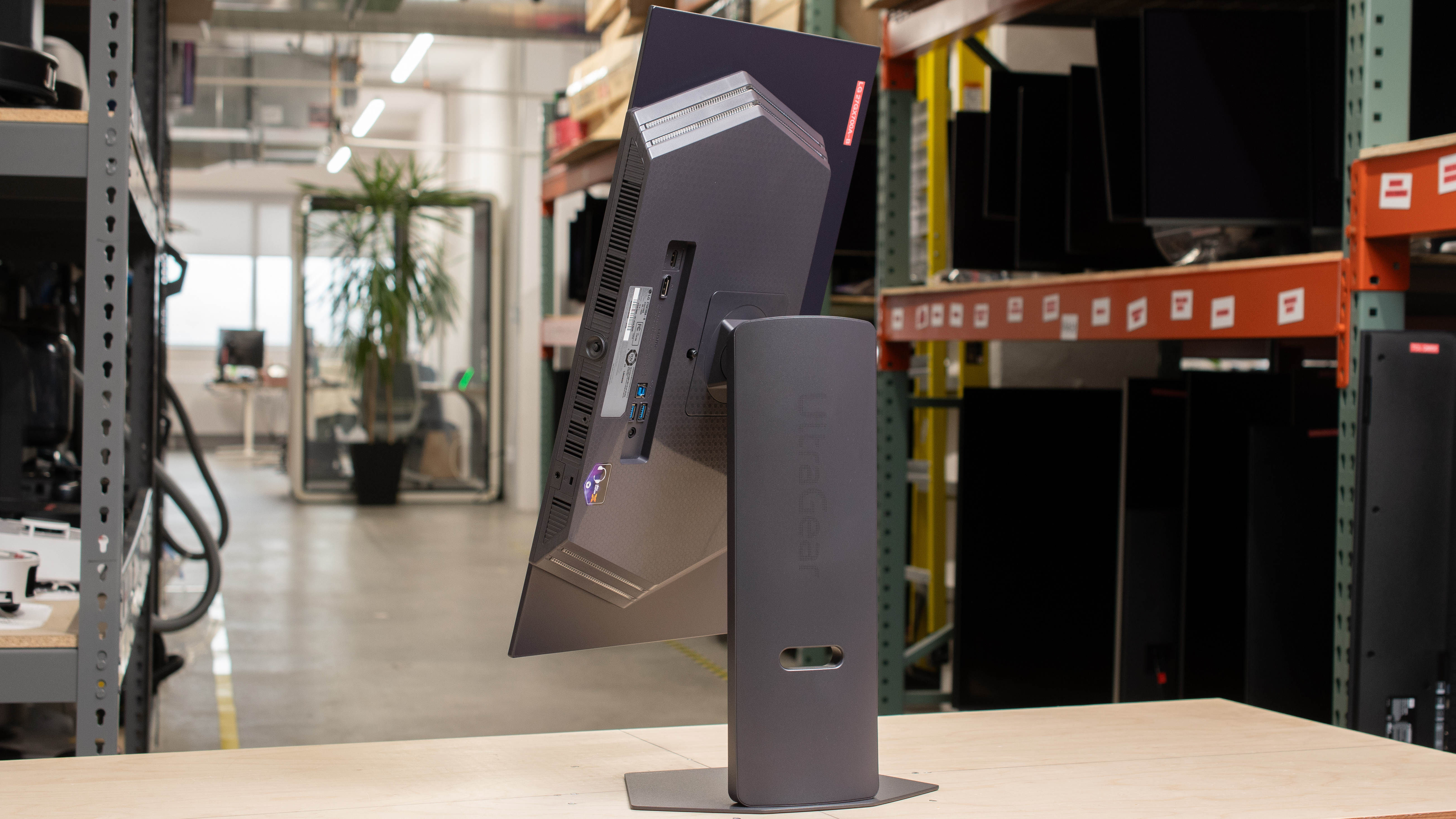 The ergonomics are great. You can adjust it how you like, and the adjustments feel smooth on the stand. The stand also features a cutout for cable management.