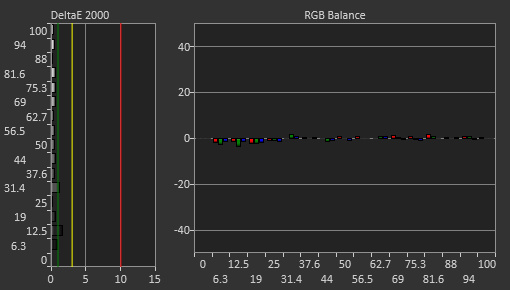 The HDR color gamut is remarkable. It covers most of the DCI-P3 color space, and while it's more limited in the Rec. 2020 color space, it has minimal inaccuracies in either.