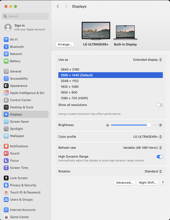 If you're using a MacBook, the 'Gamer 2' Game Mode looks the most accurate compared to the laptop's screen in HDR, but HDR appears dim compared to SDR.