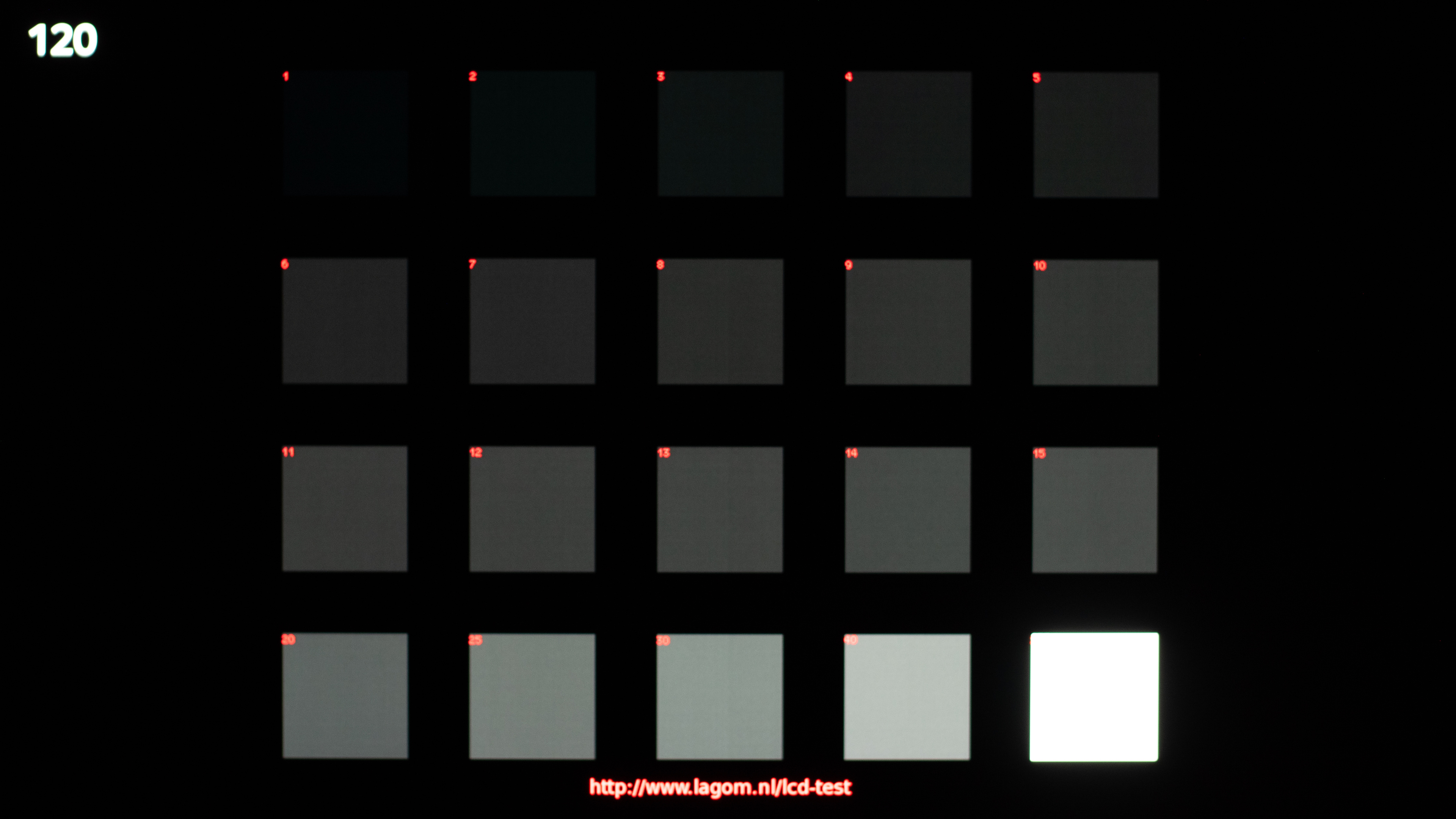 The gray uniformity with mid and bright grays is excellent. The screen is uniform throughout, but the uniformity is worse with dark grays, as others have reported online. There's visible vertical banding that you'll notice even with regular content that has dark areas. Running OLED Image Cleaning cycles reduces the banding, but doesn't improve it, as you can see with 15% gray: