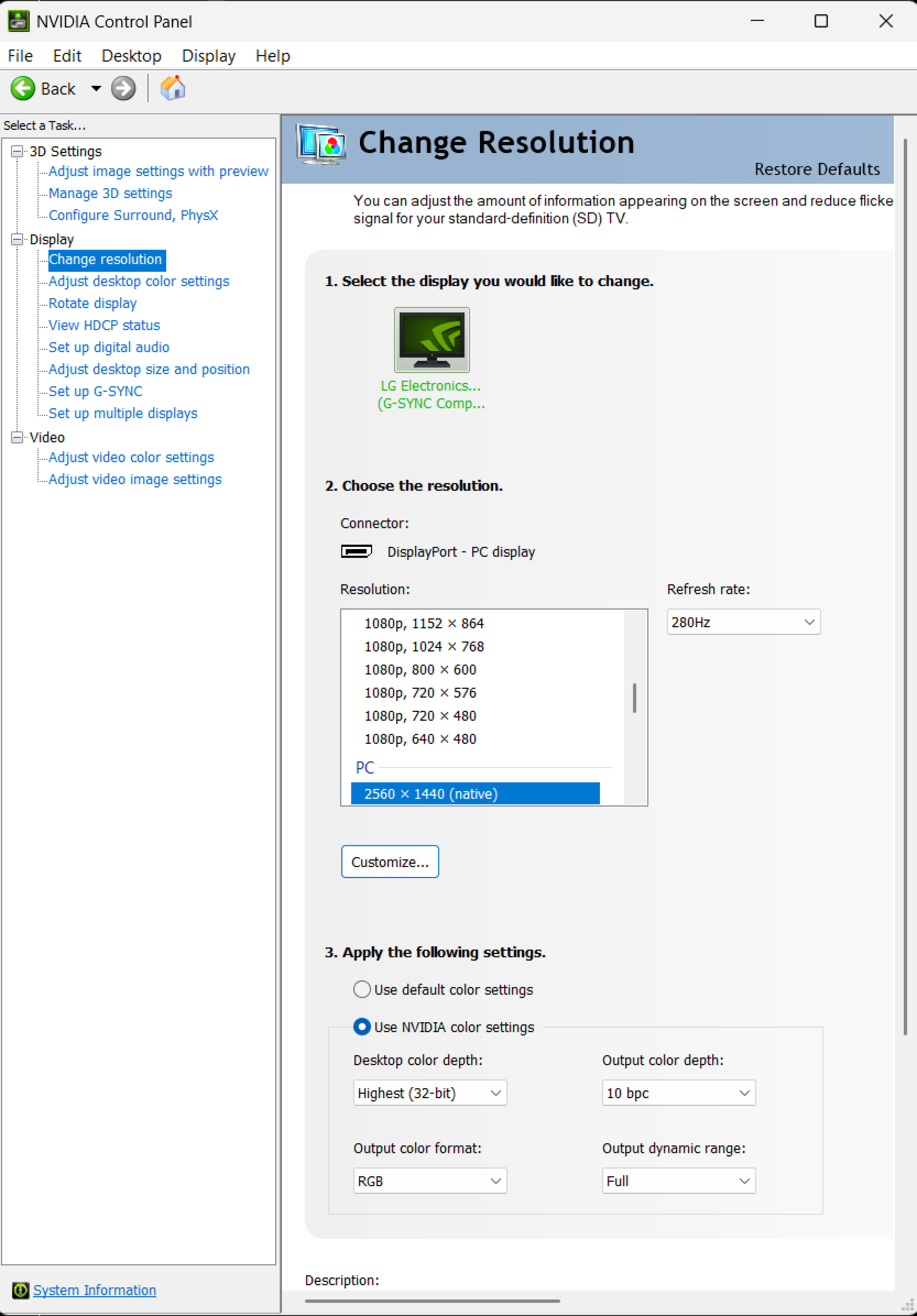 When connecting over DisplayPort, your graphics card needs to use DSC with 8 and 10-bit signals. There's a setting to turn off DSC if you prefer, but strangely, we were still able to get the max refresh rate with the setting disabled and by using a custom resolution, so we're not sure if DSC is actively working.